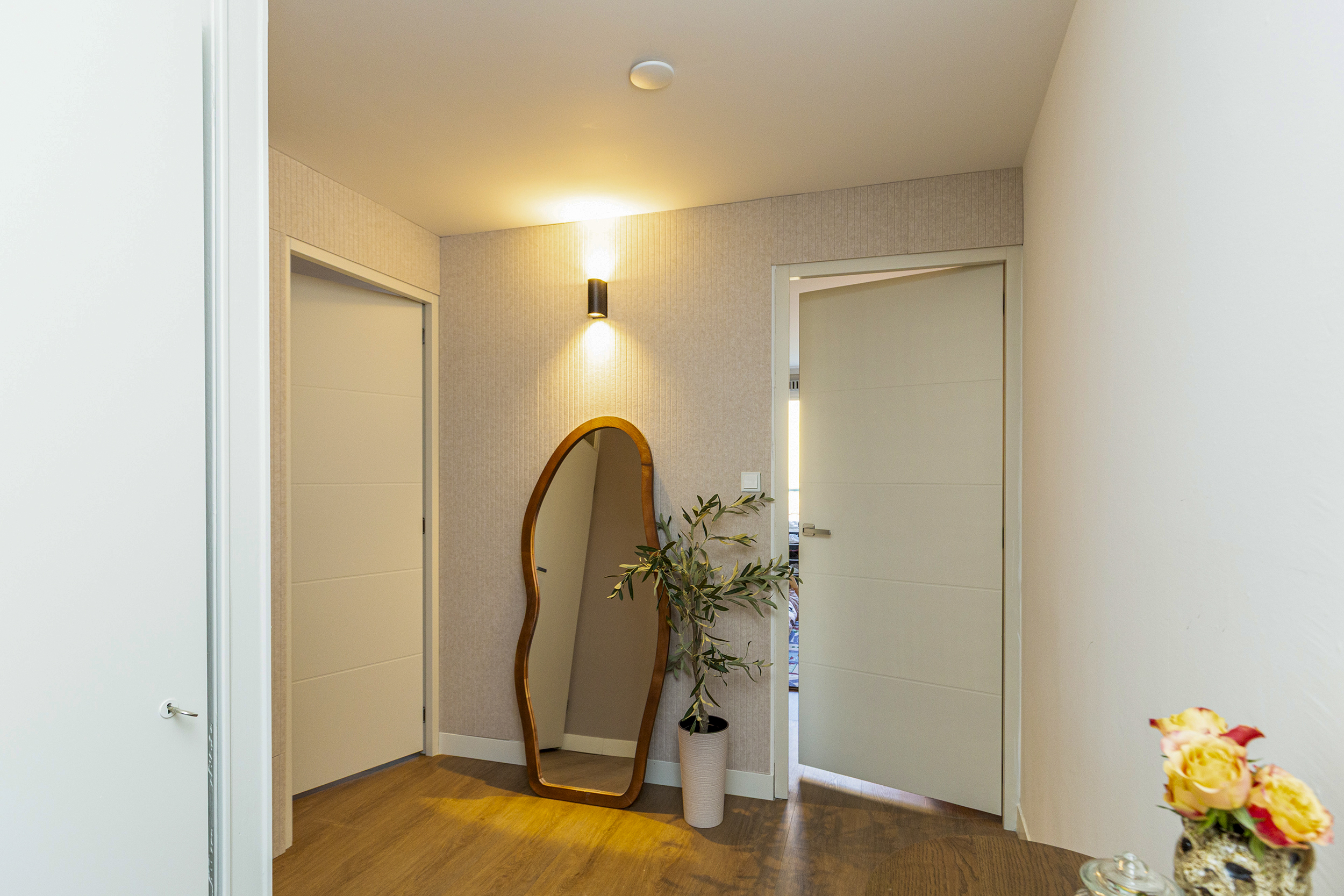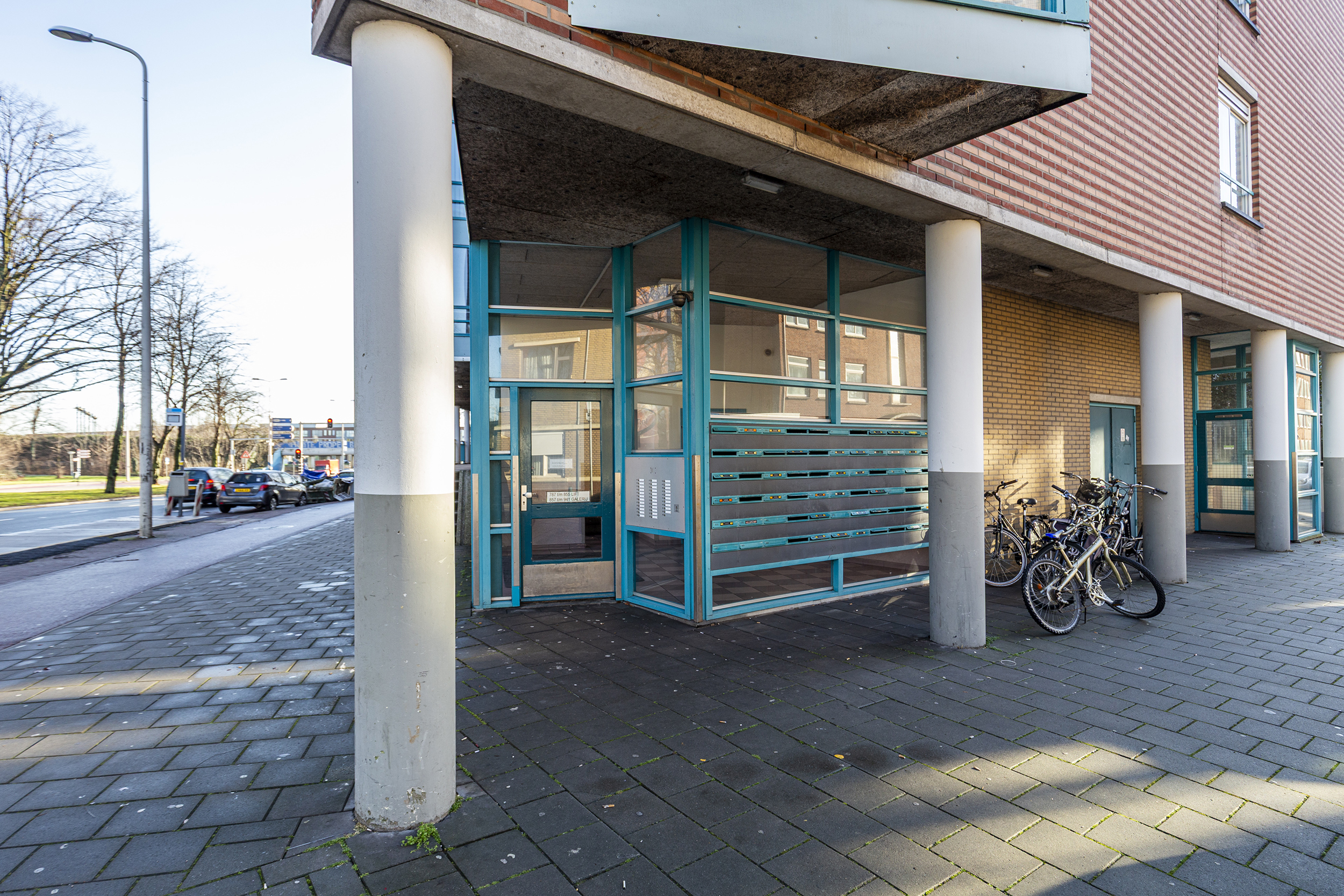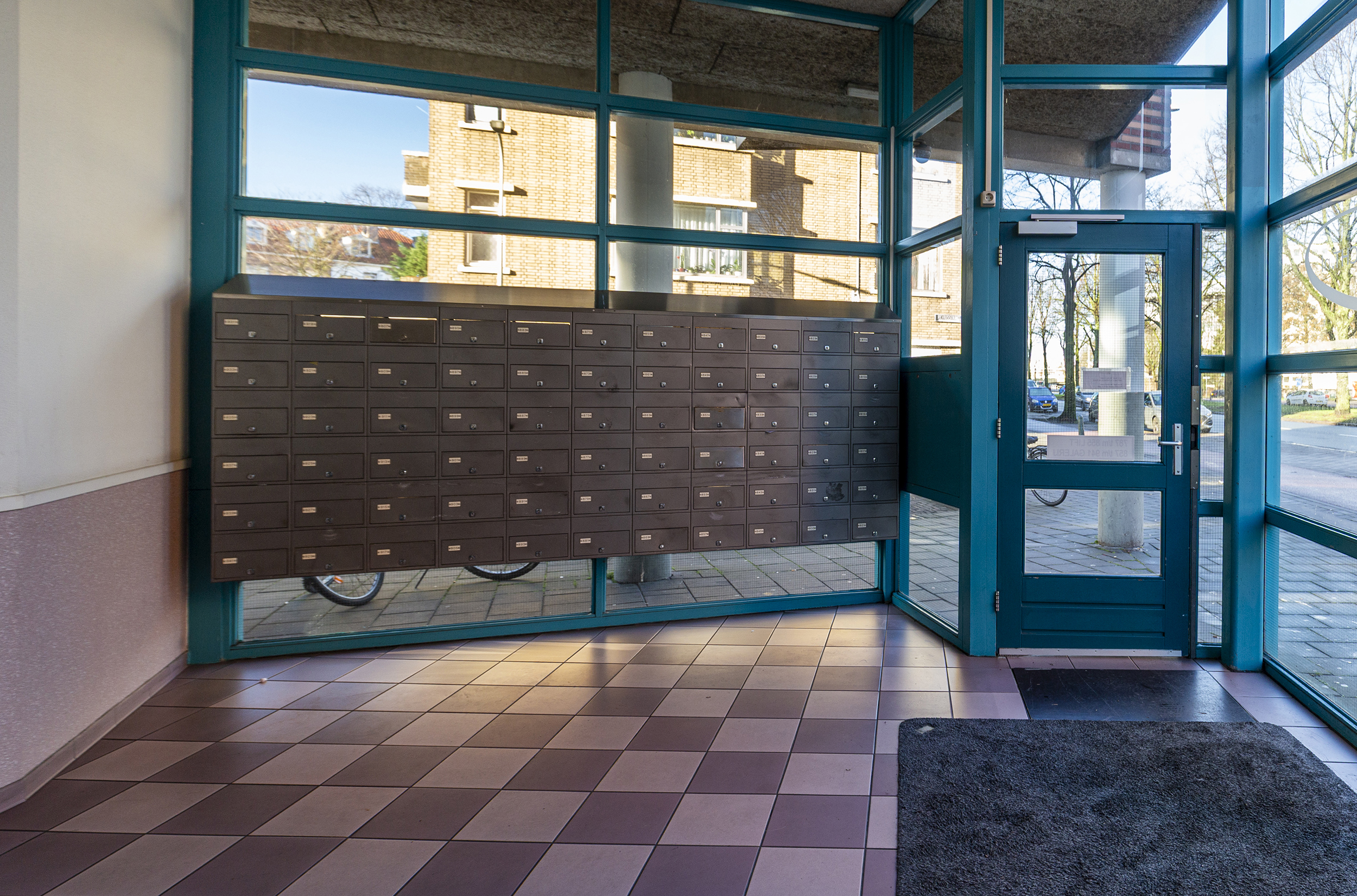 Entree via gesloten portiek. Lift of trap naar de woonverdieping, entree woning.