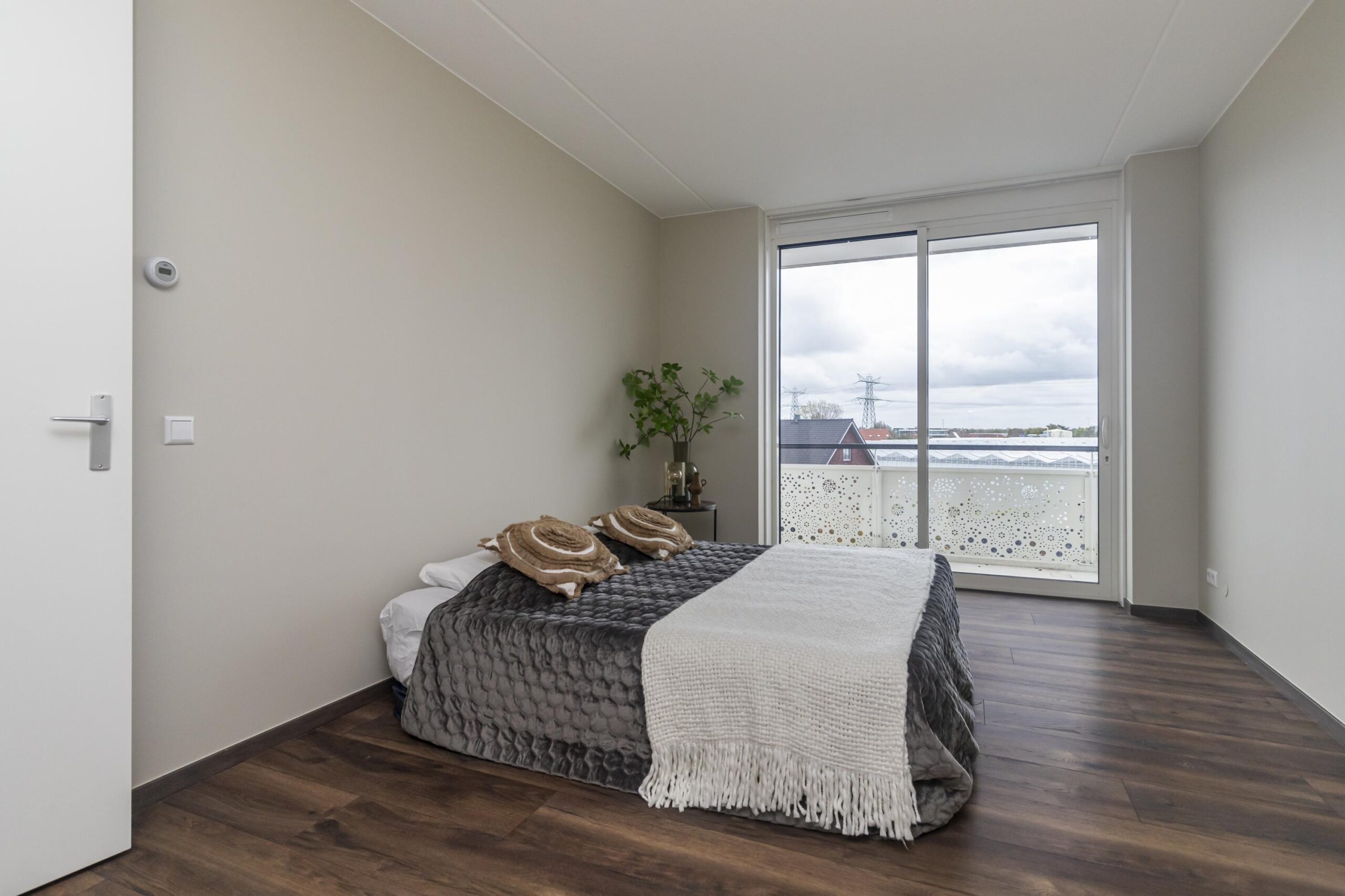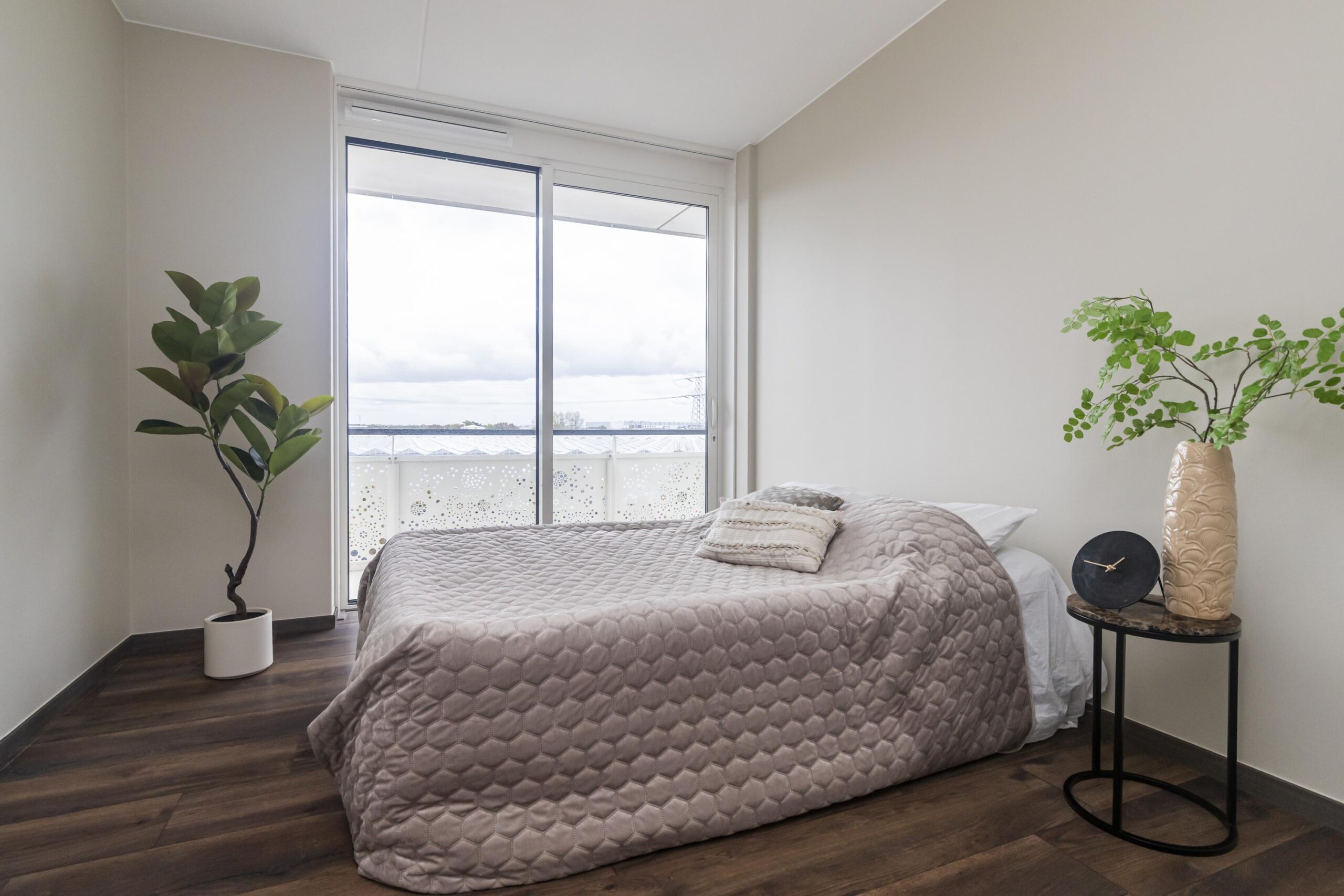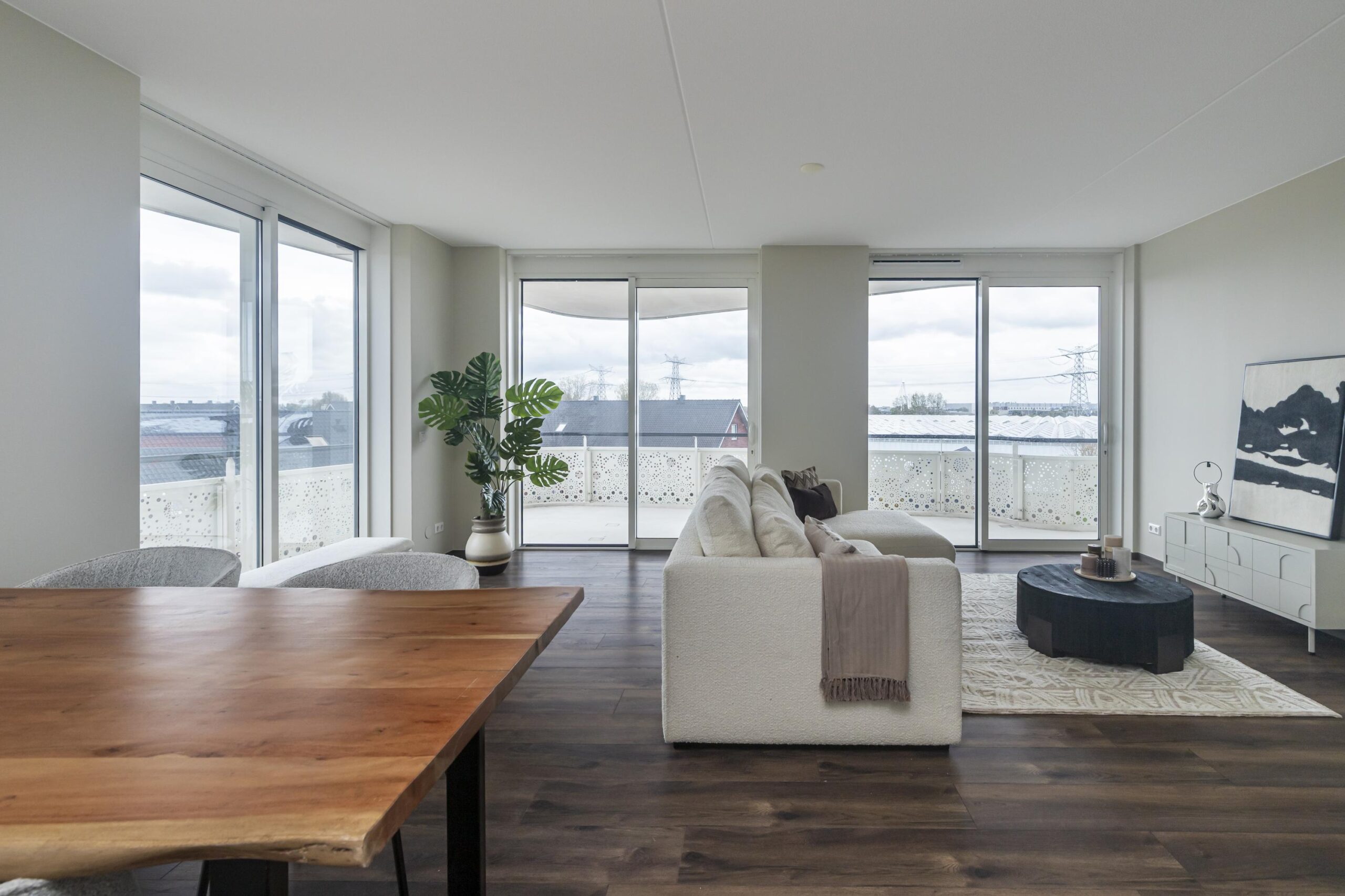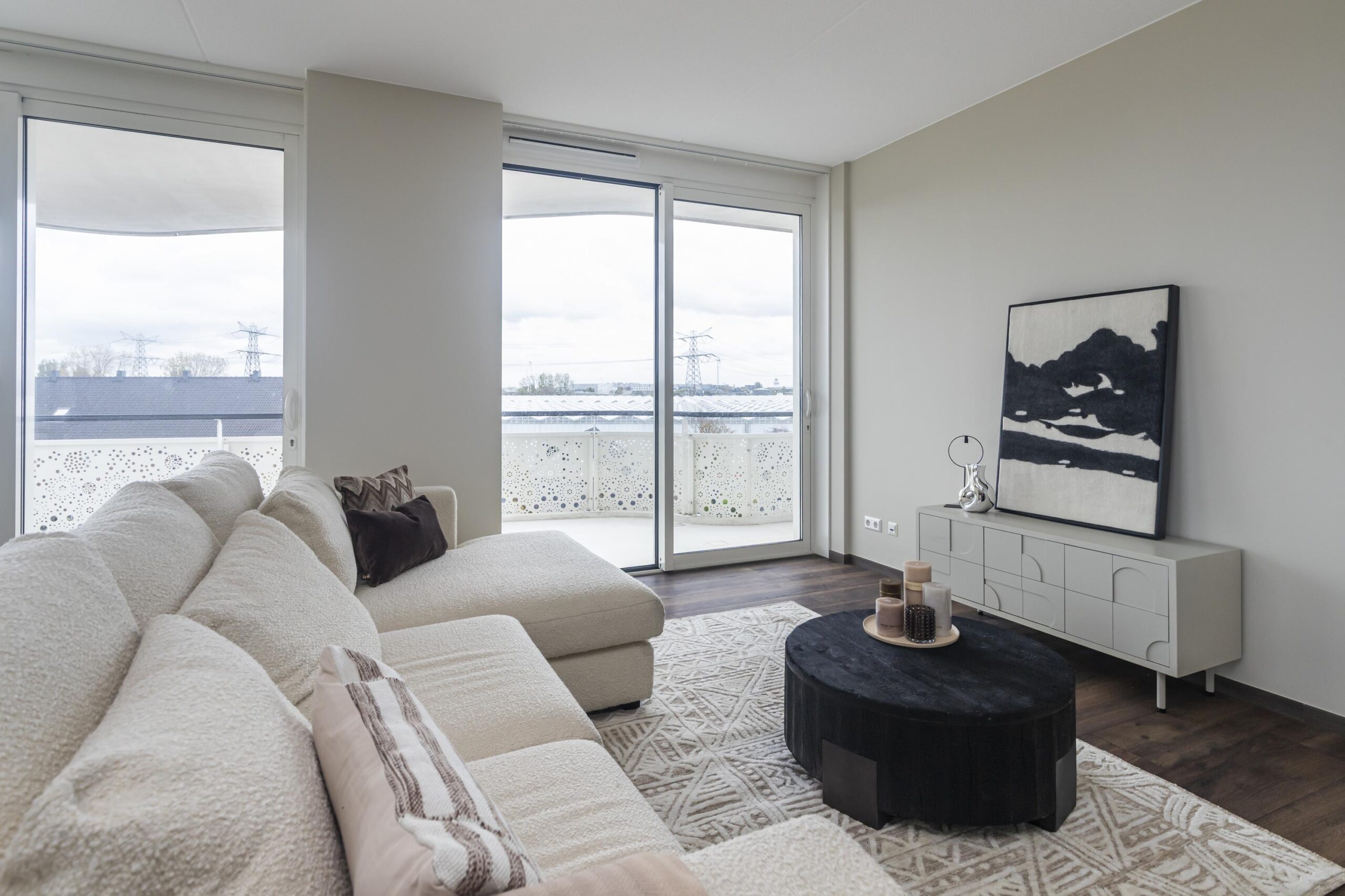 De woonkamer is opvallend licht door de grote raampartijen en staat in open verbinding met de keuken, die is voorzien van moderne inbouwapparatuur. Vanuit de woonkamer stap je het balkon op – een fijne buitenruimte met een prettige combinatie van zon en beschutting. Ideaal voor een ontspannen kop koffie in de ochtend of een borrel aan het eind van de dag.