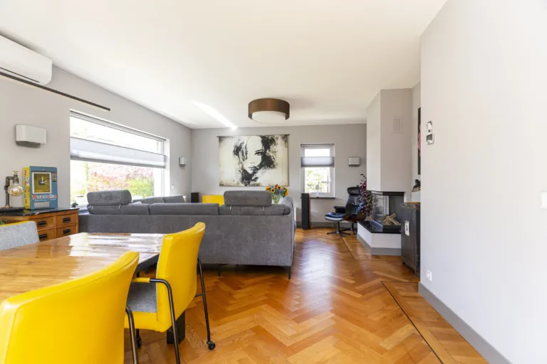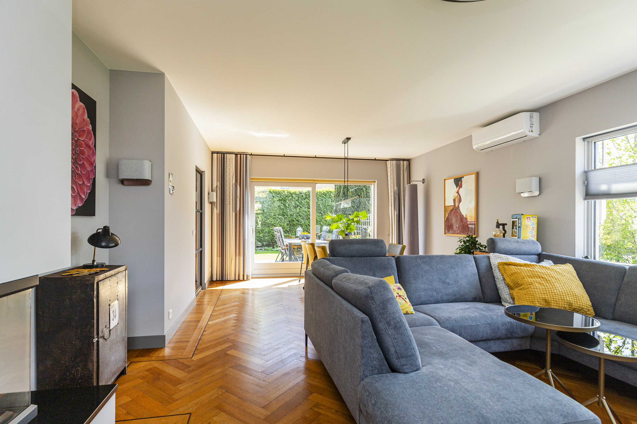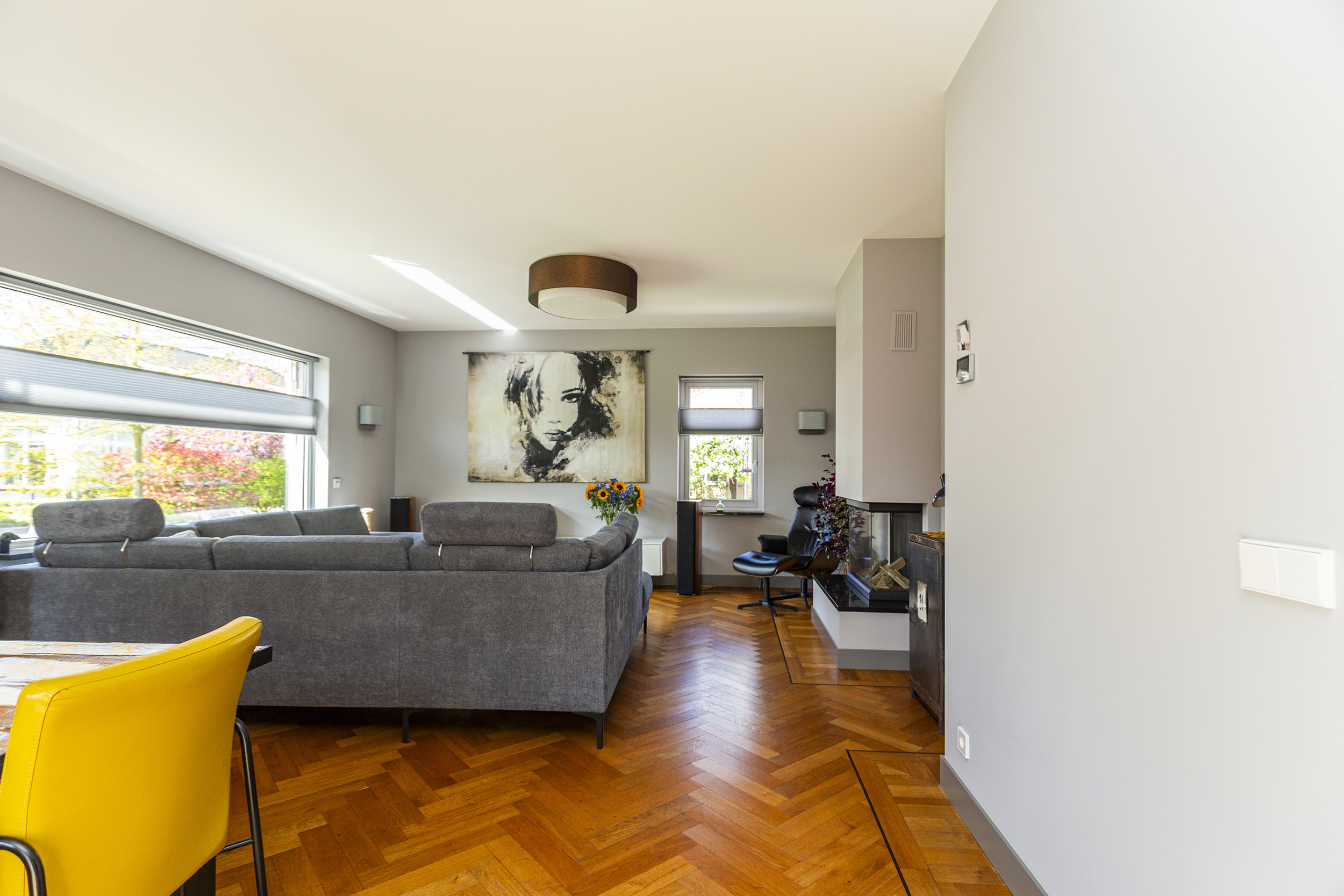 Via de taatsdeur komt u in de living. Ook hier valt direct op hoe licht en ruim deze ruimte aanvoelt. De (gas)haard zorgt voor sfeer en de massief houten vloer met vloerverwarming geeft het geheel een warme uitstraling. Dit is een woonkamer waar u met gemak samen bent, maar waar ook alle ruimte is om rustig te ontspannen.