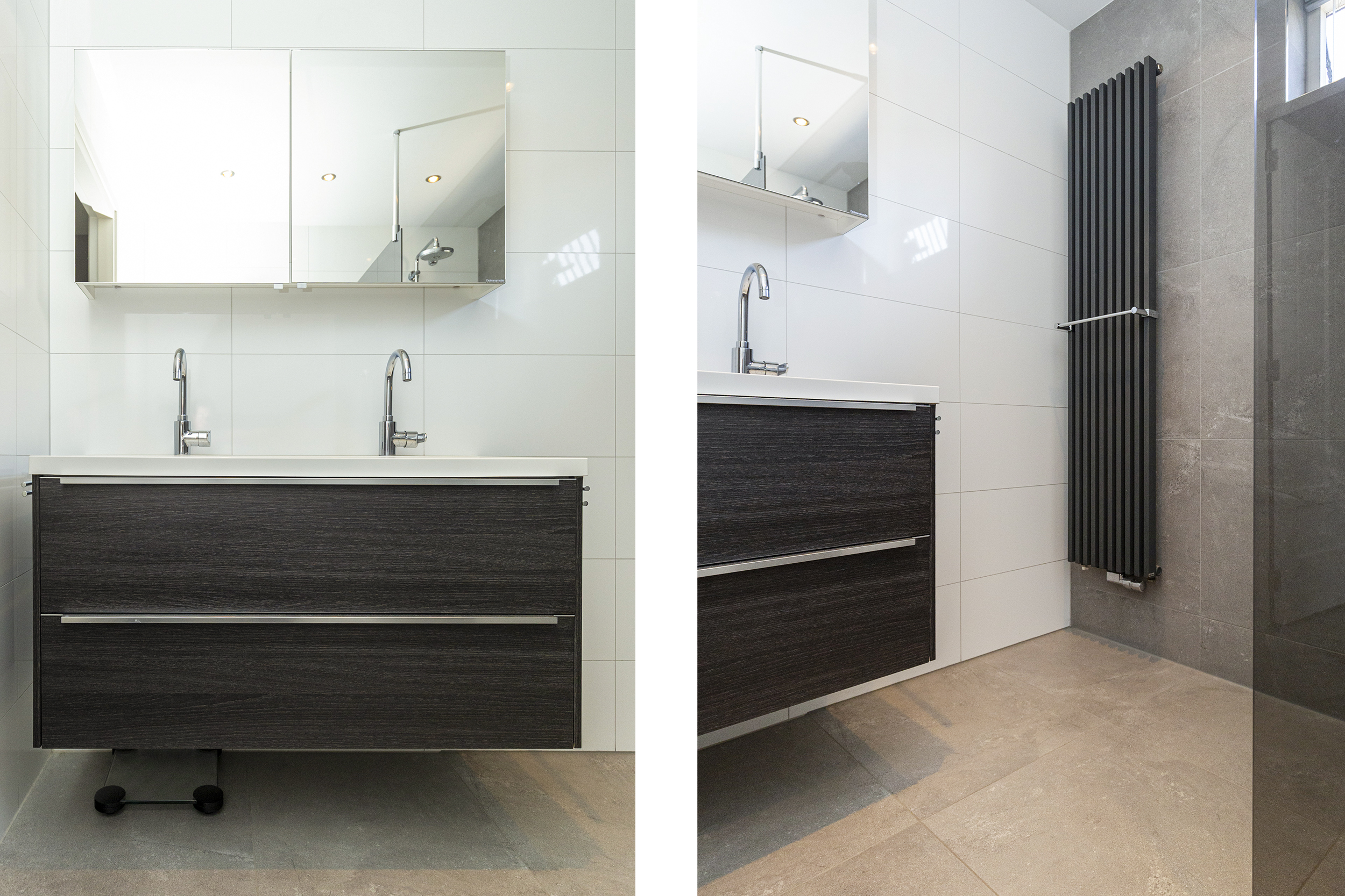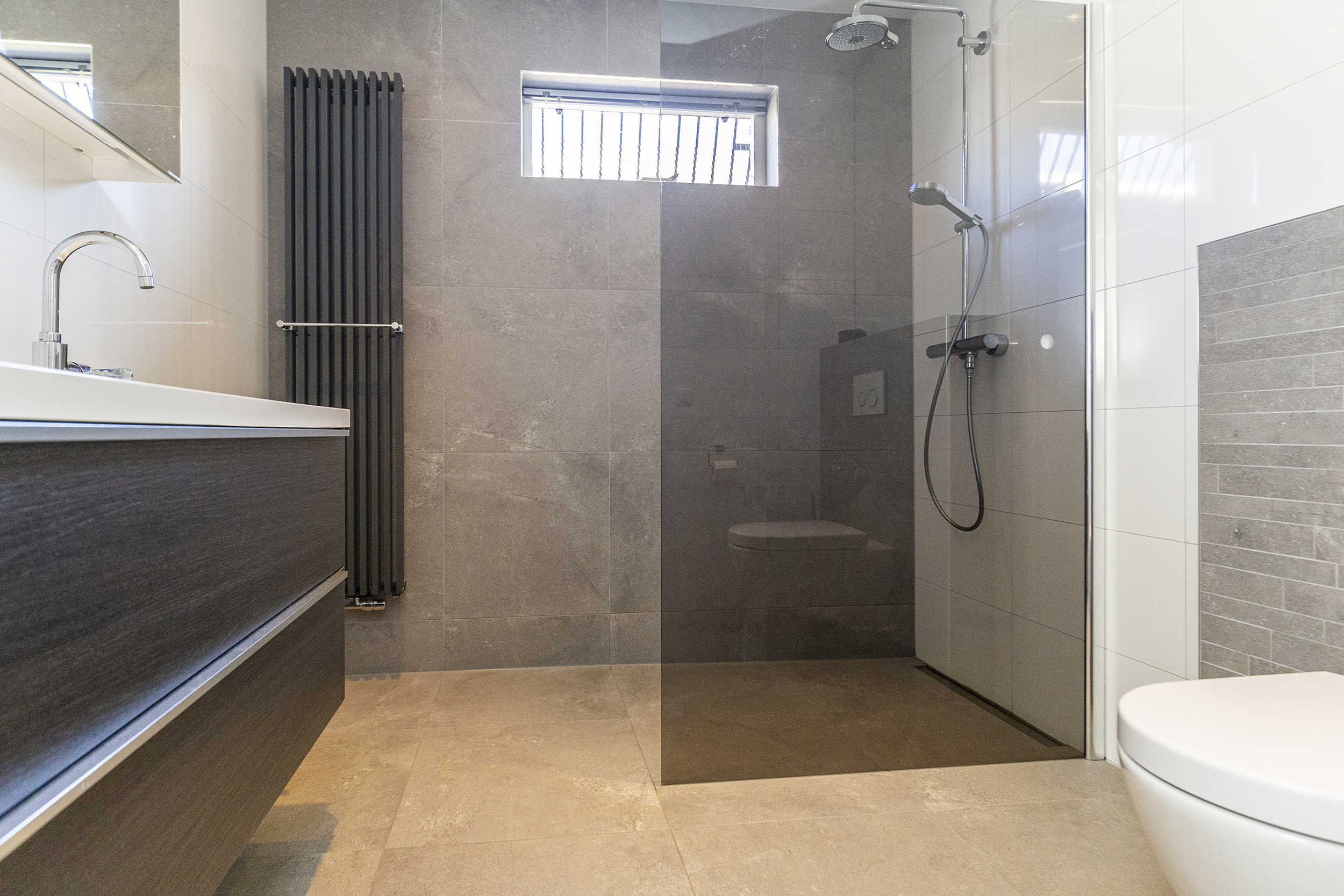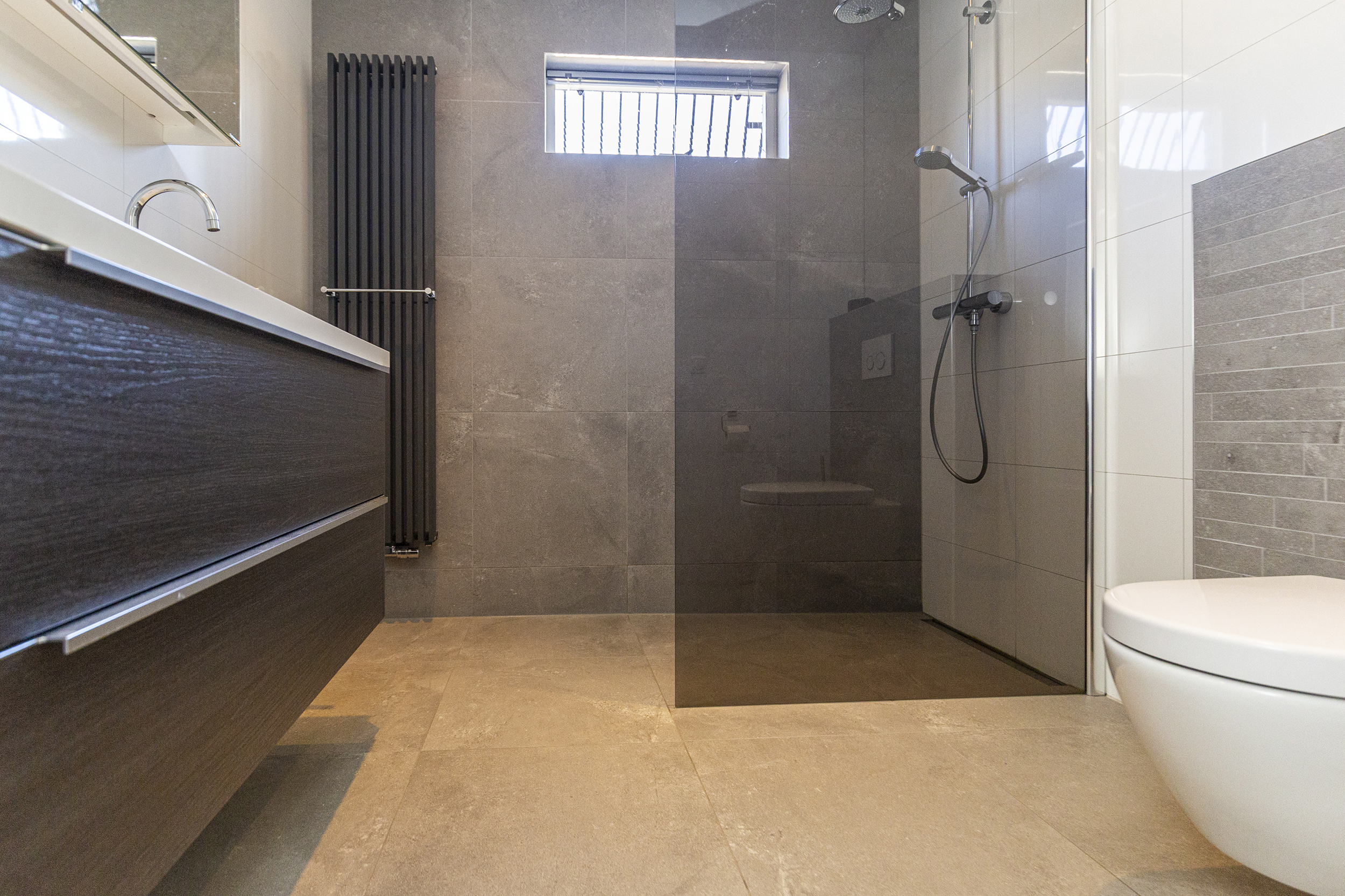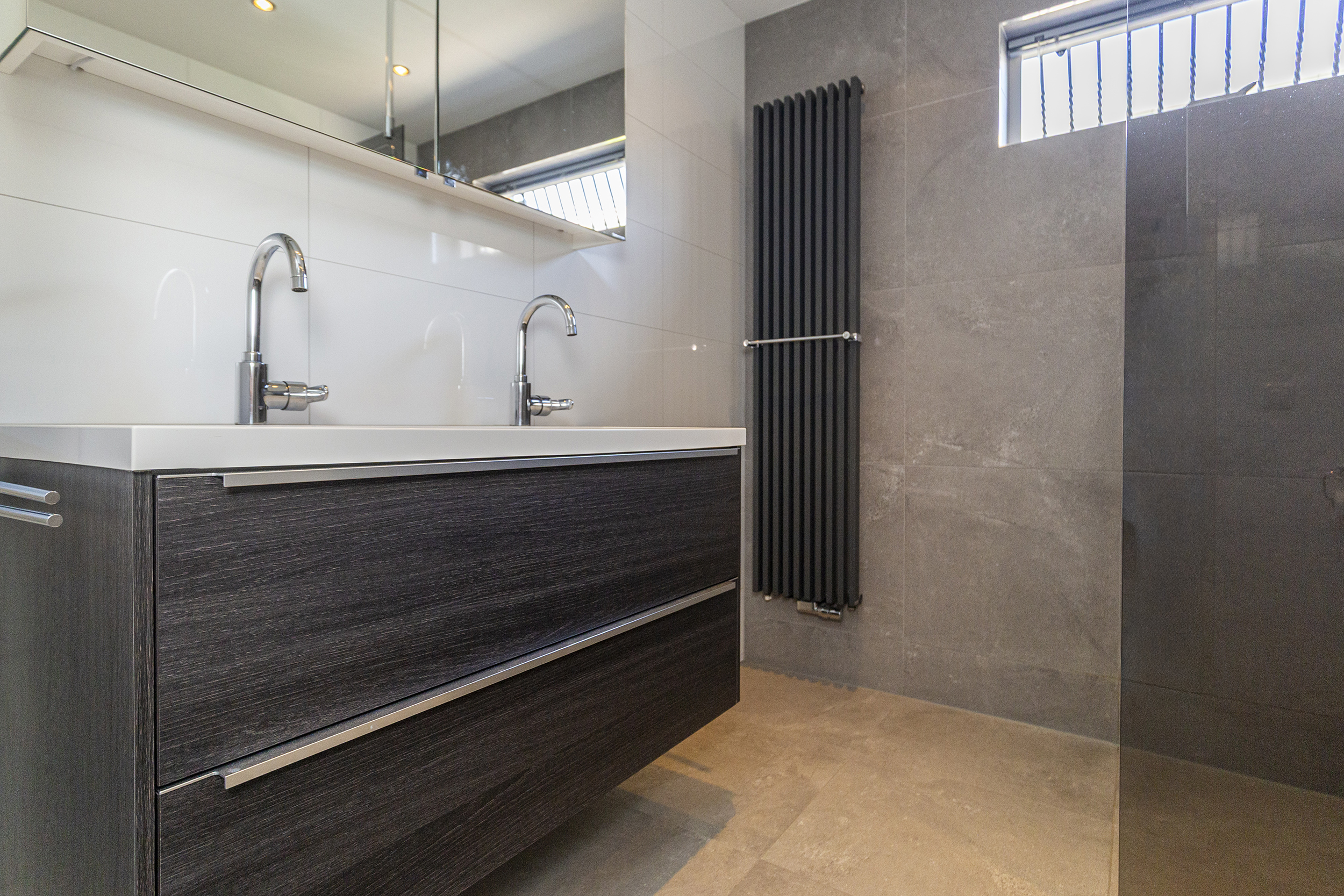 - Badkamervoorzieningen Toilet, dubbele wastafel, inloopdouche, vloerverwarming