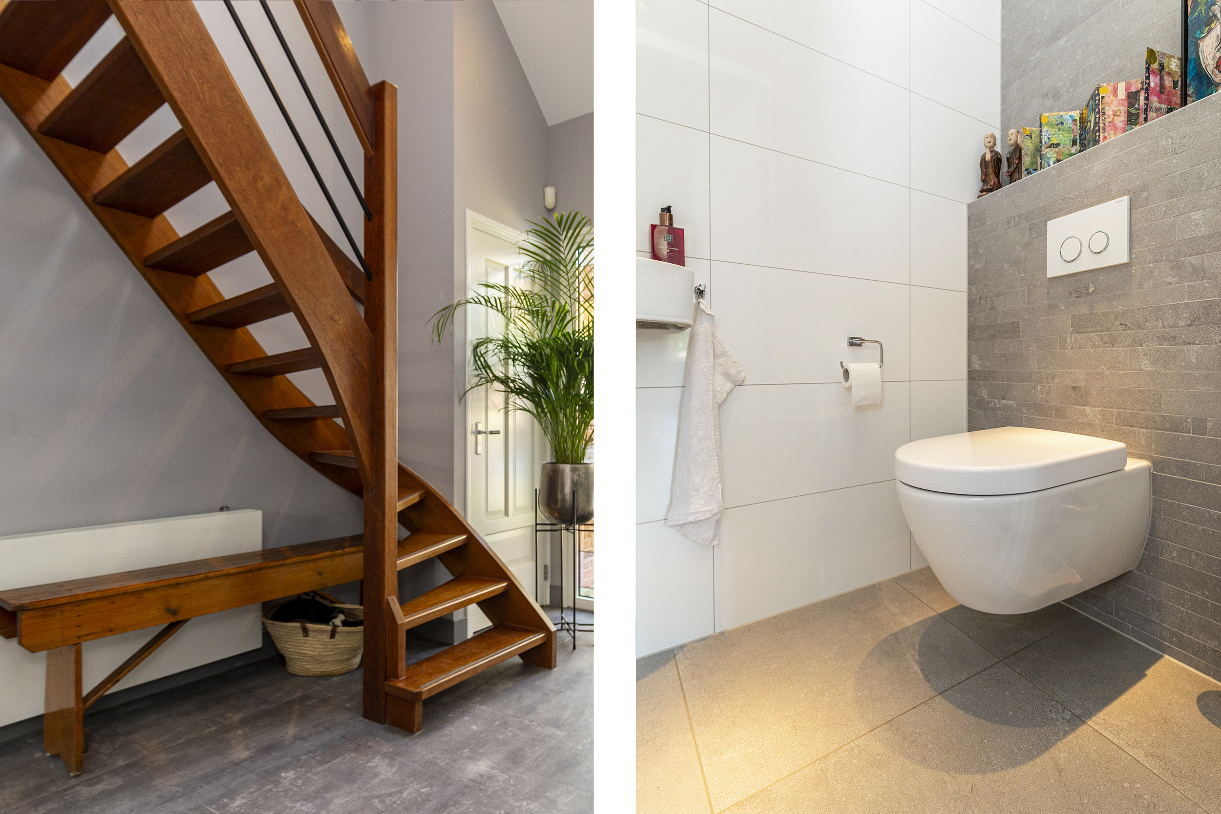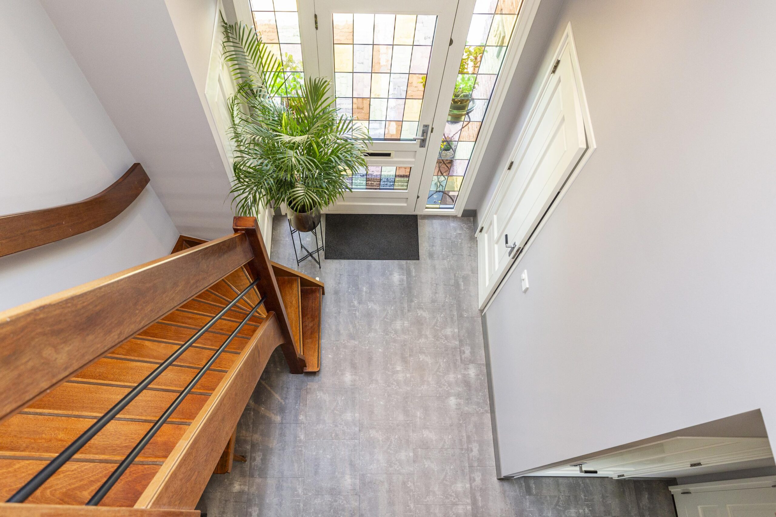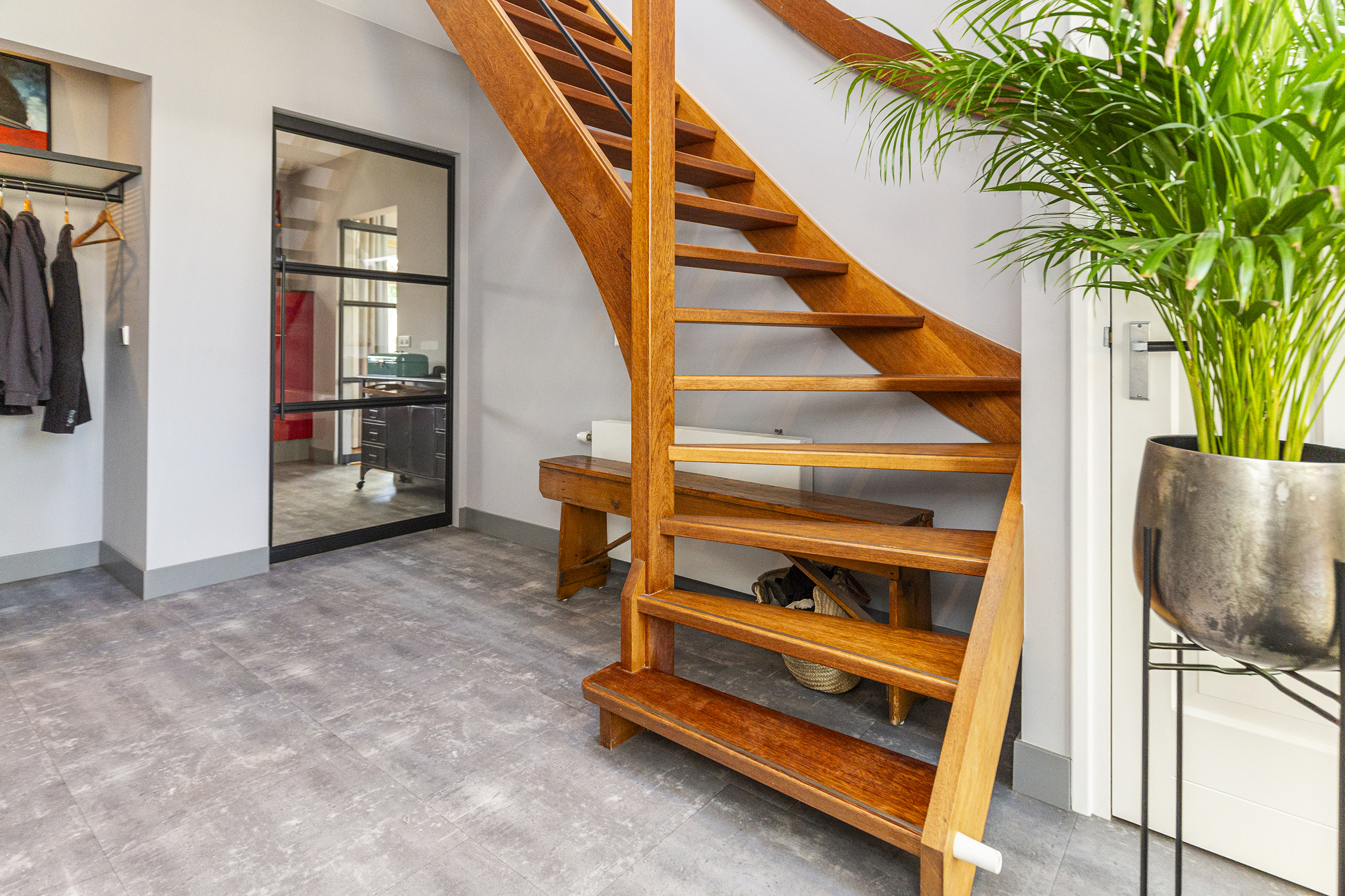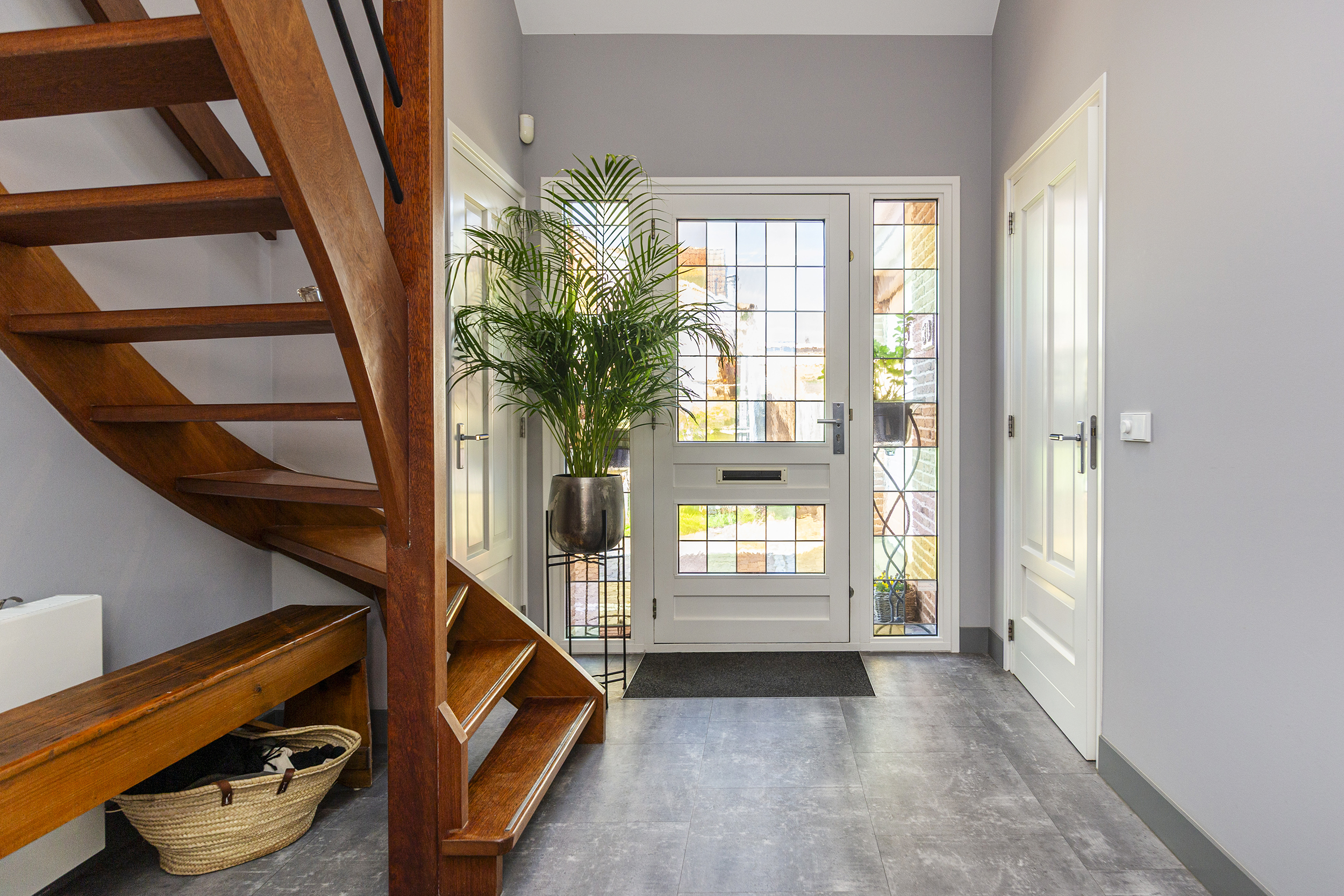 Via de brede oprit bereikt u de woning. De entree maakt direct indruk met de hoogte, de fraaie trapopgang en de verzorgde afwerking. U voelt hier meteen dat dit een huis is waar met aandacht is gewoond.