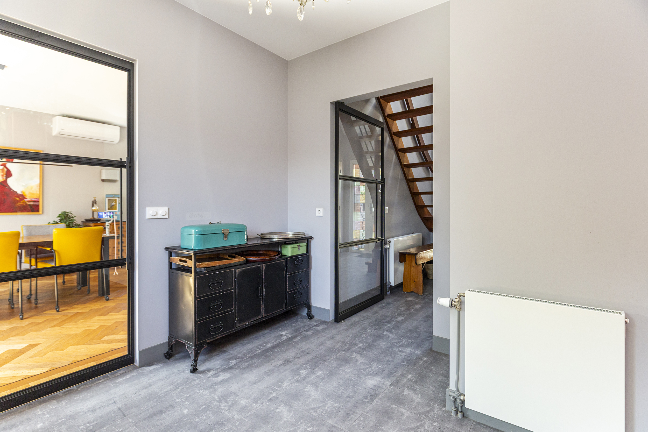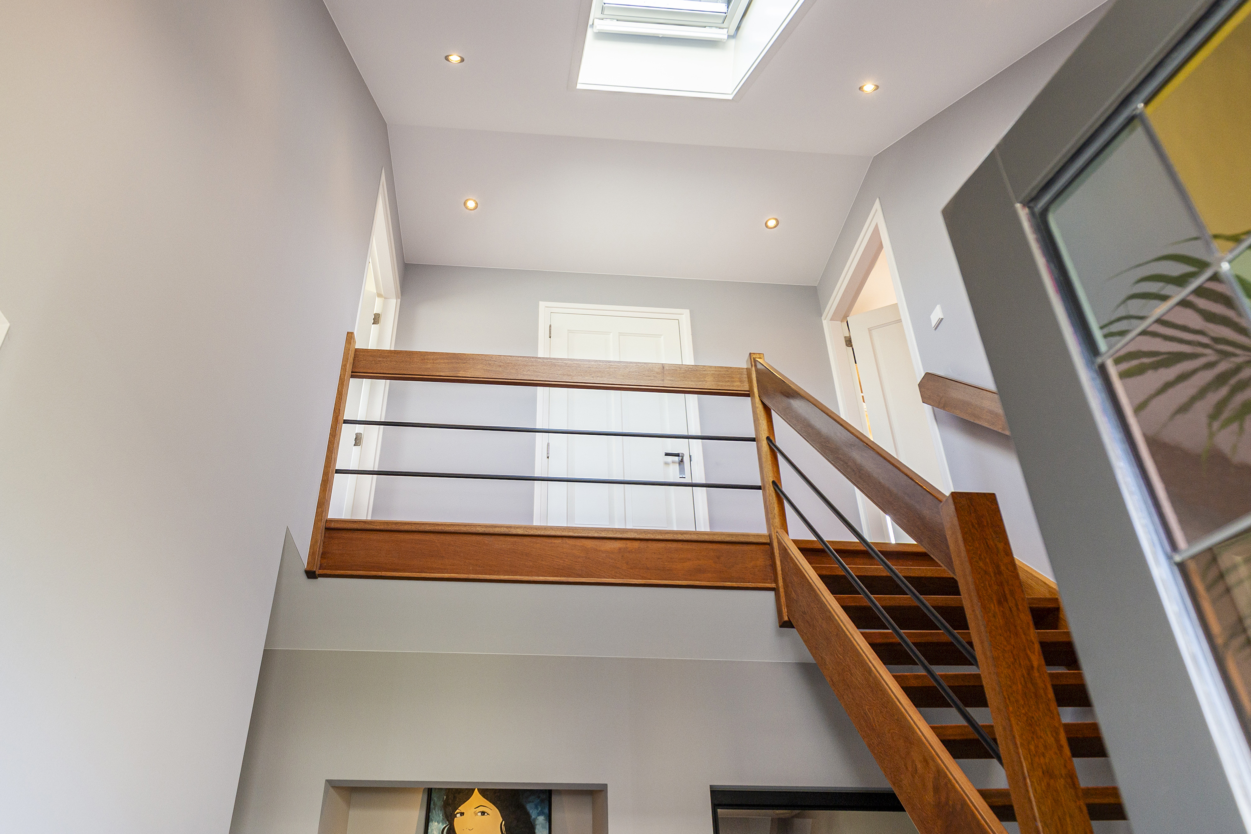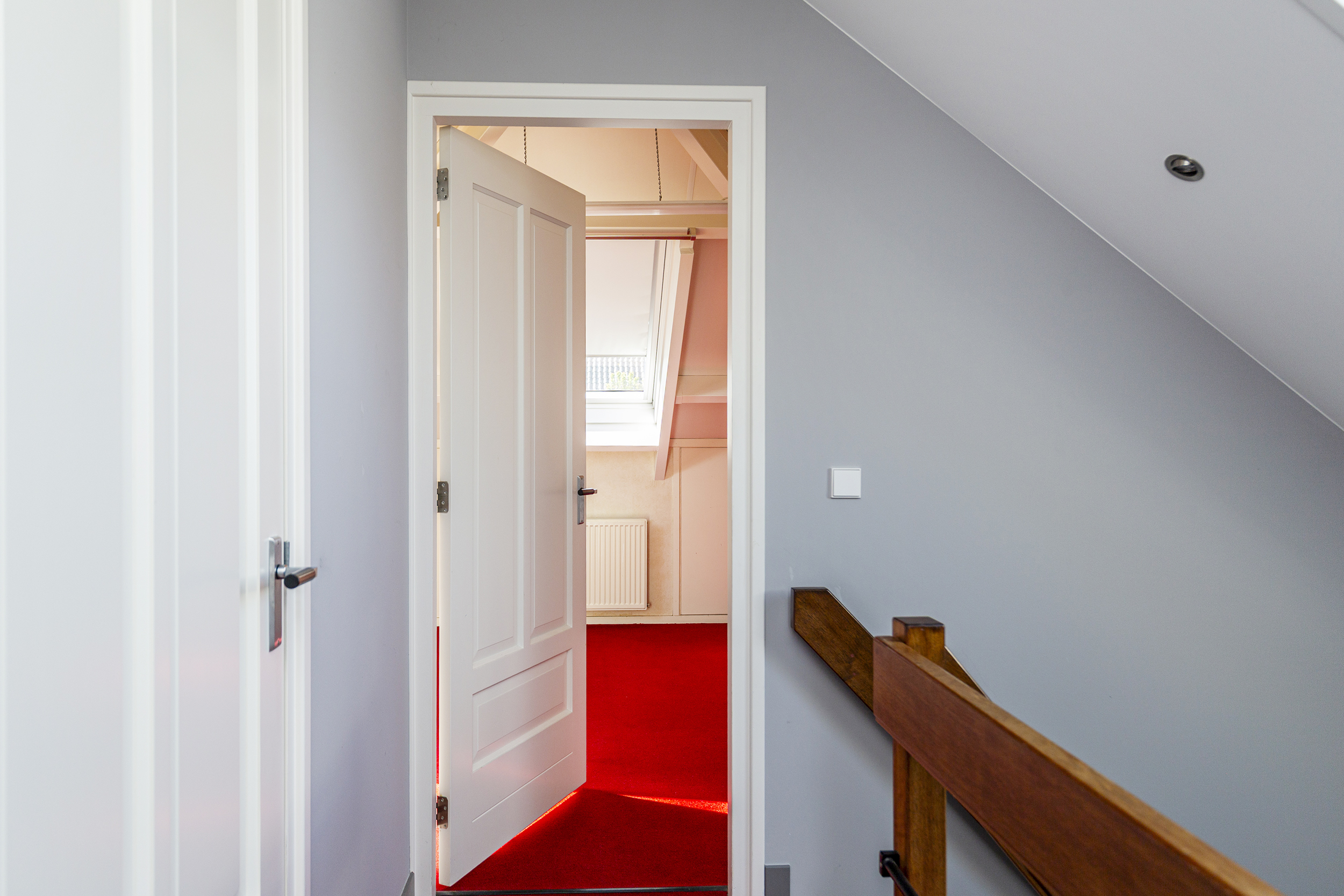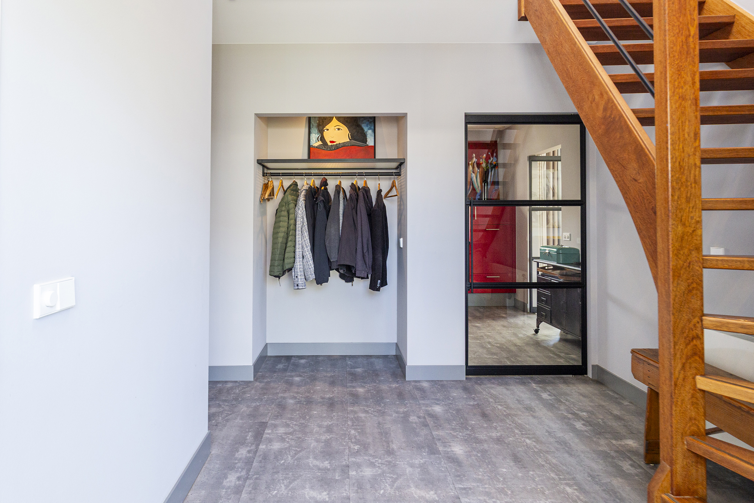 Via de brede oprit bereikt u de woning. De entree maakt direct indruk met de hoogte, de fraaie trapopgang en de verzorgde afwerking. U voelt hier meteen dat dit een huis is waar met aandacht is gewoond.