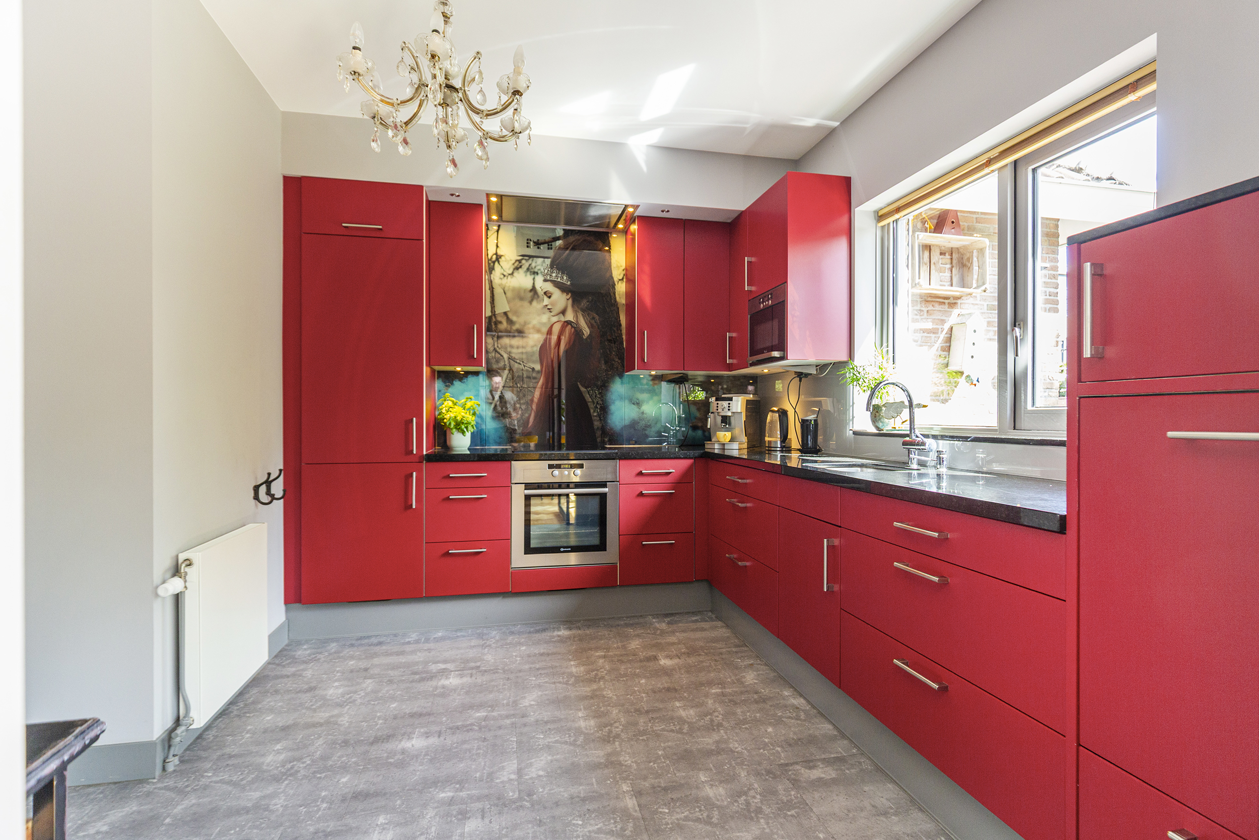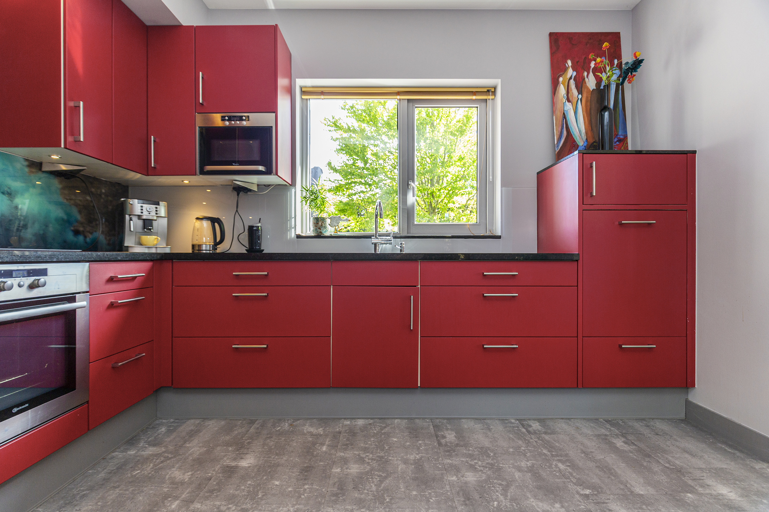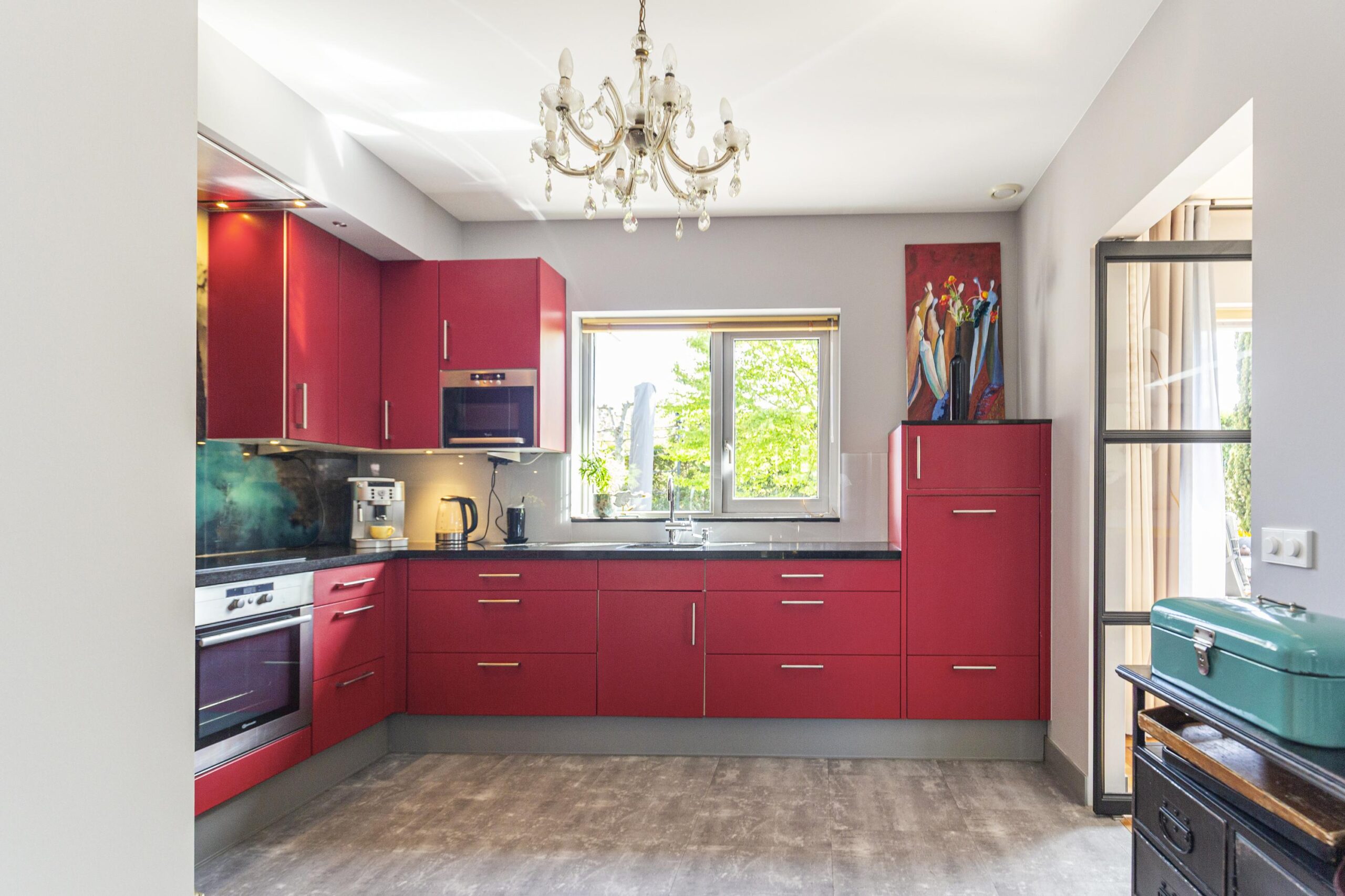 Rechtdoor ligt de woonkeuken, een fijne plek in huis waar u samenkomt voor ontbijt, koffie, huiswerk of een lange avond aan tafel. Door de ramen aan verschillende zijden valt het daglicht mooi naar binnen. De keuken is compleet ingericht en praktisch opgezet, waardoor koken hier echt prettig is.