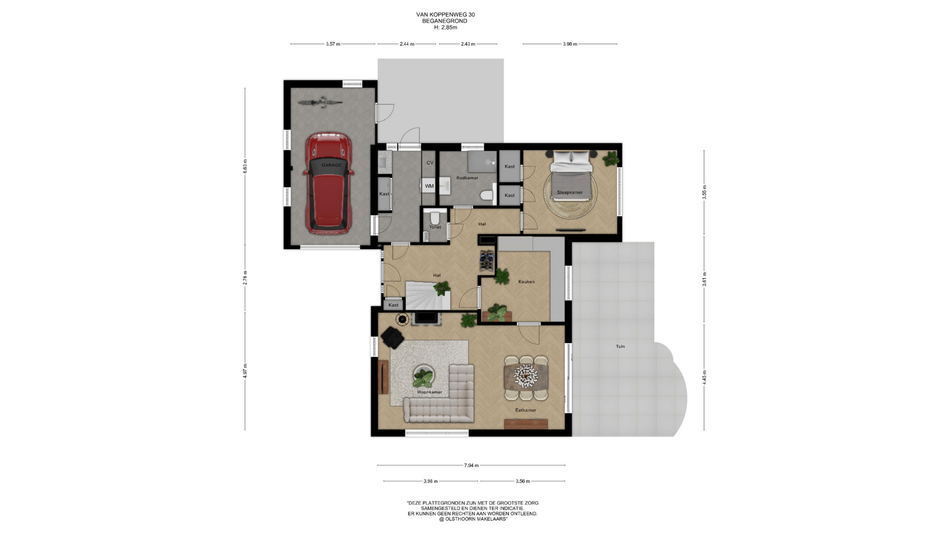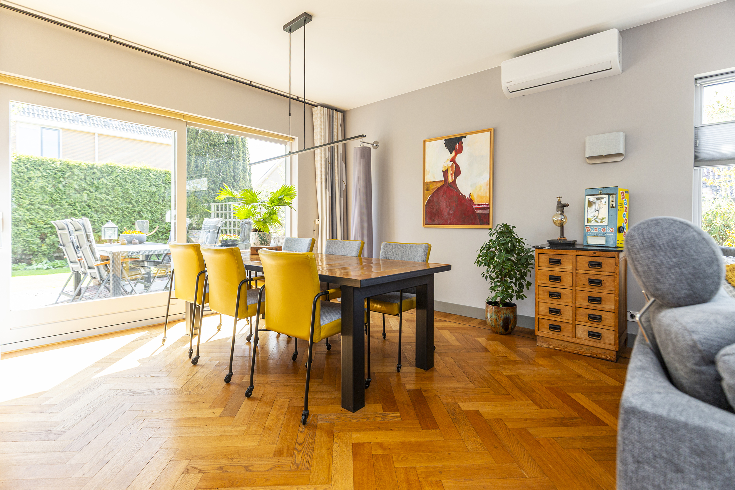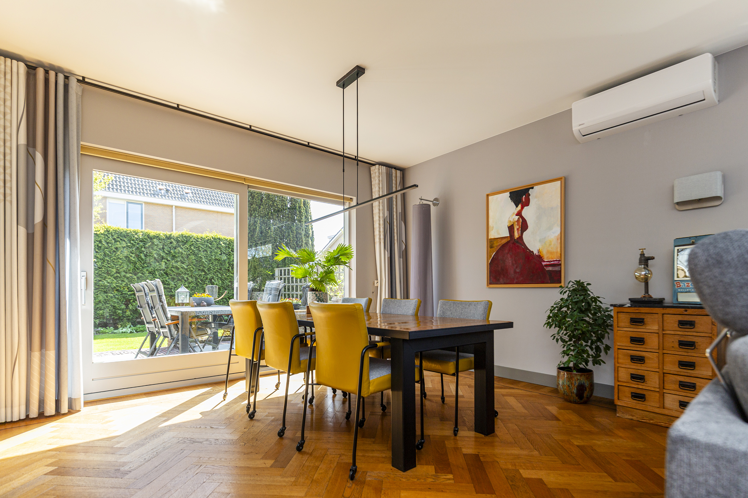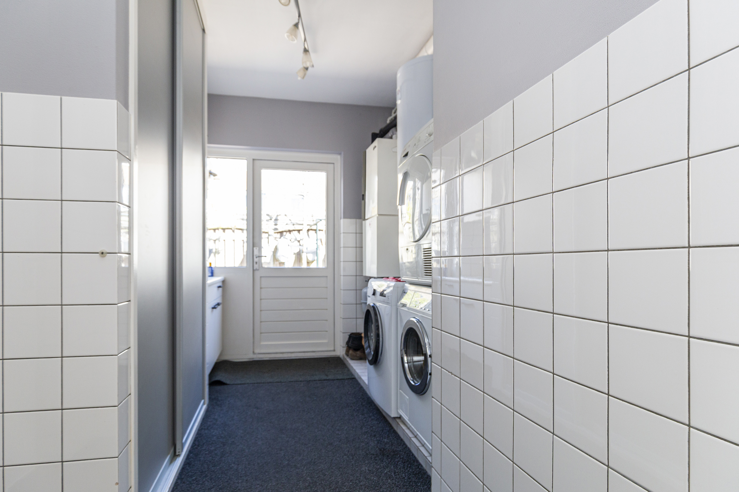 De woning is praktisch en goed doordacht. Zo geeft de ruime bijkeuken plaats aan de wasmachine en droger, en de garage zorgt voor volop ruimte voor fietsen, gereedschap en hobbyspullen.