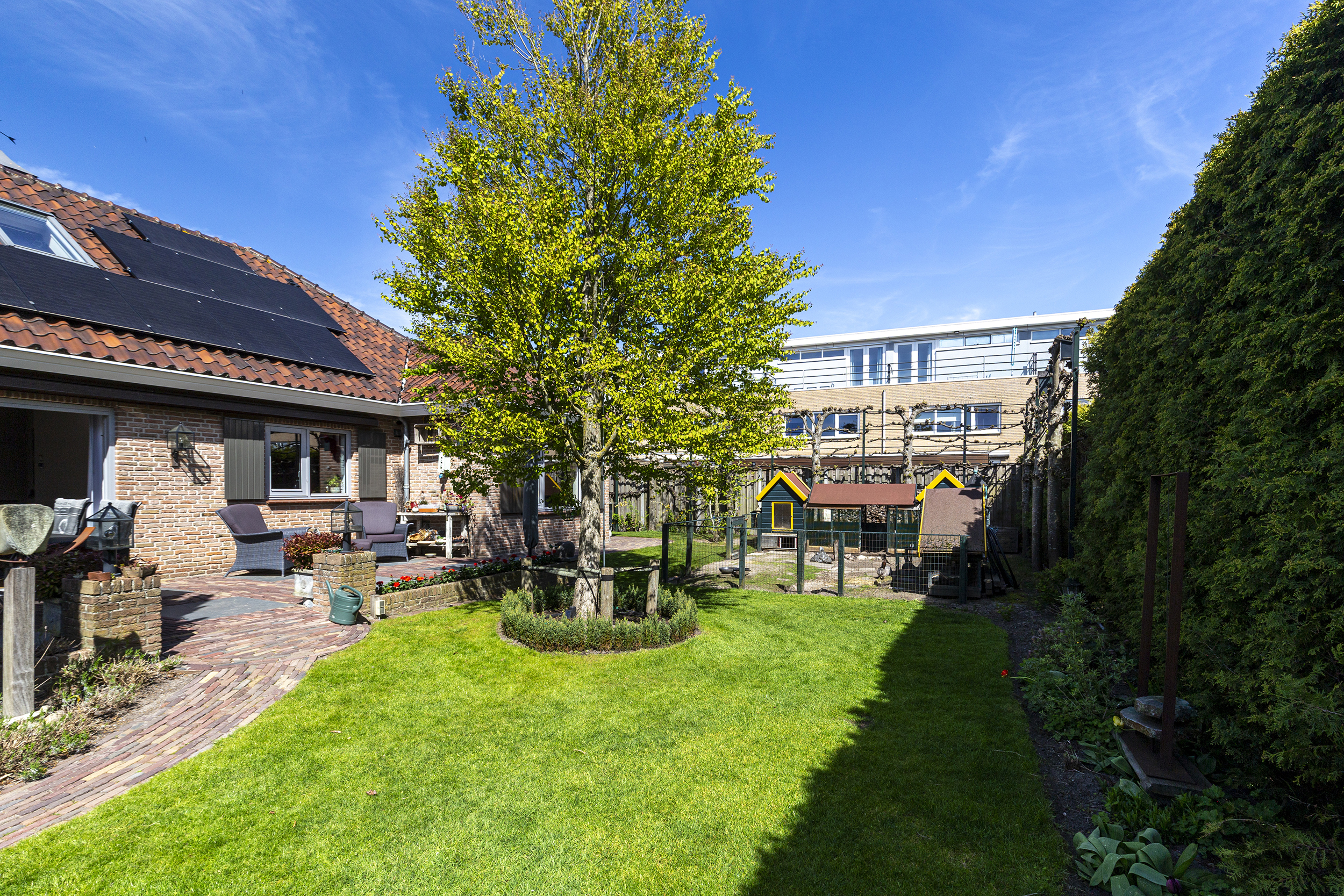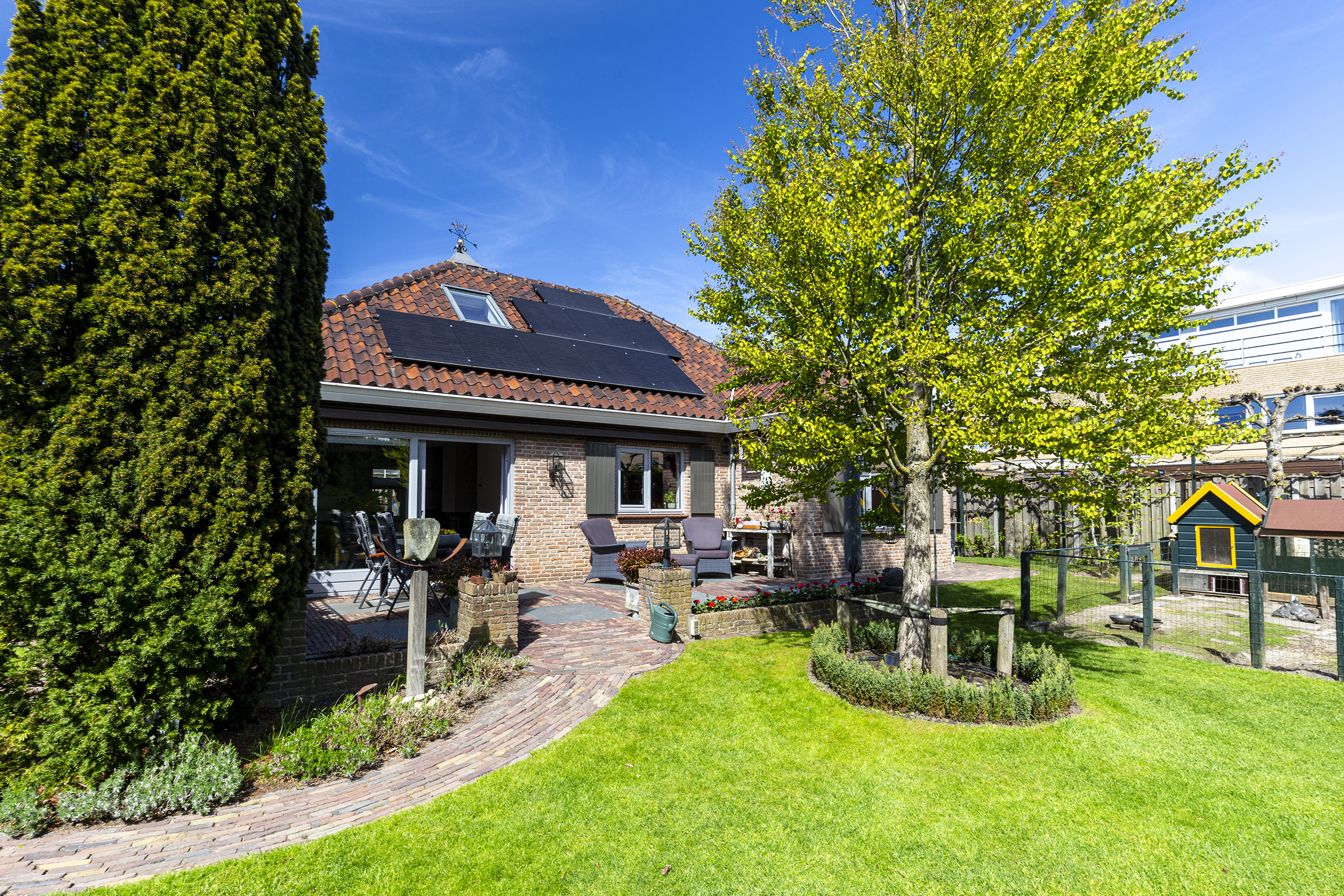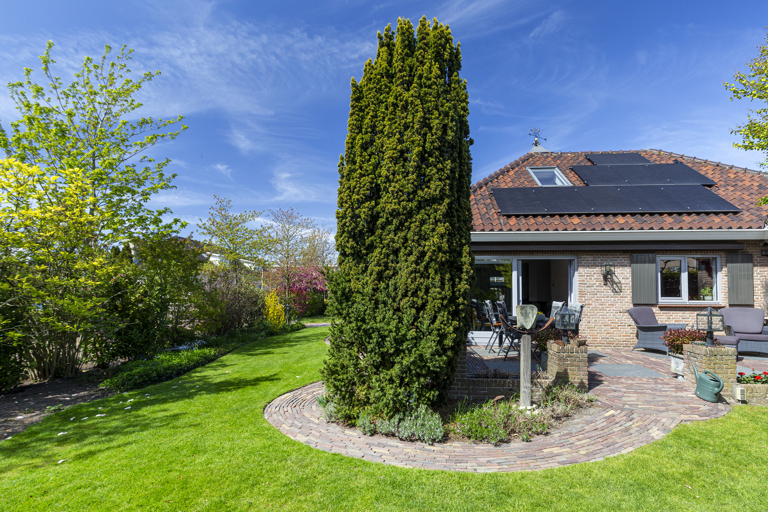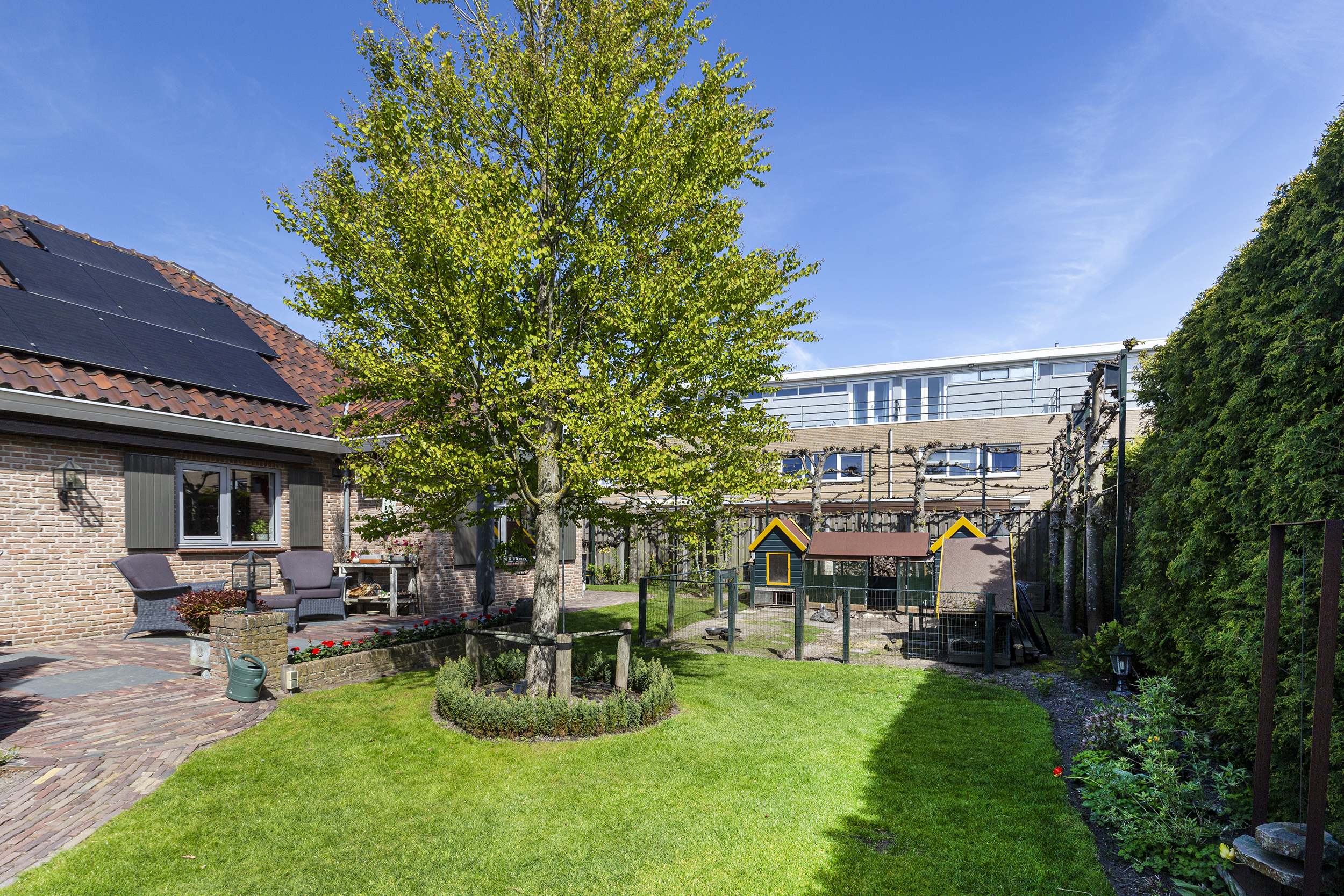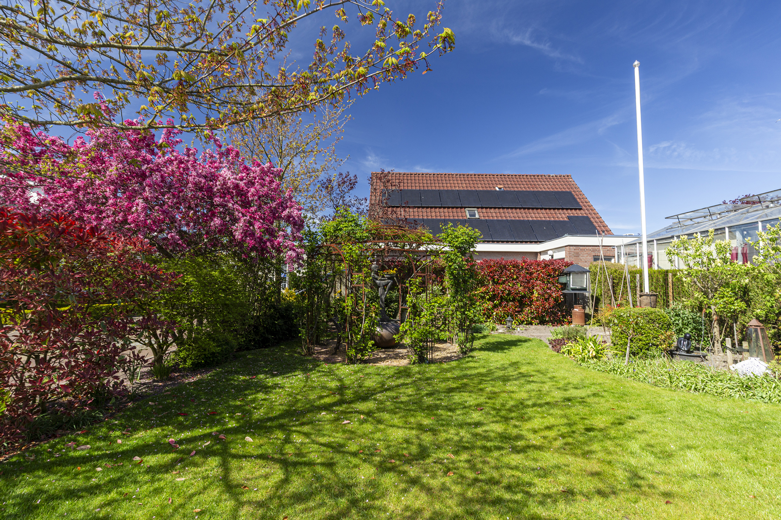 De tuin ligt rondom de woning en laat direct zien hoe bijzonder dit perceel is. Met meer dan 900 m² eigen grond is dit een buitenruimte waar van alles mogelijk is. Kinderen hebben hier alle ruimte om te spelen, terwijl u zelf op elk moment van de dag een fijne plek in de zon of schaduw vindt.