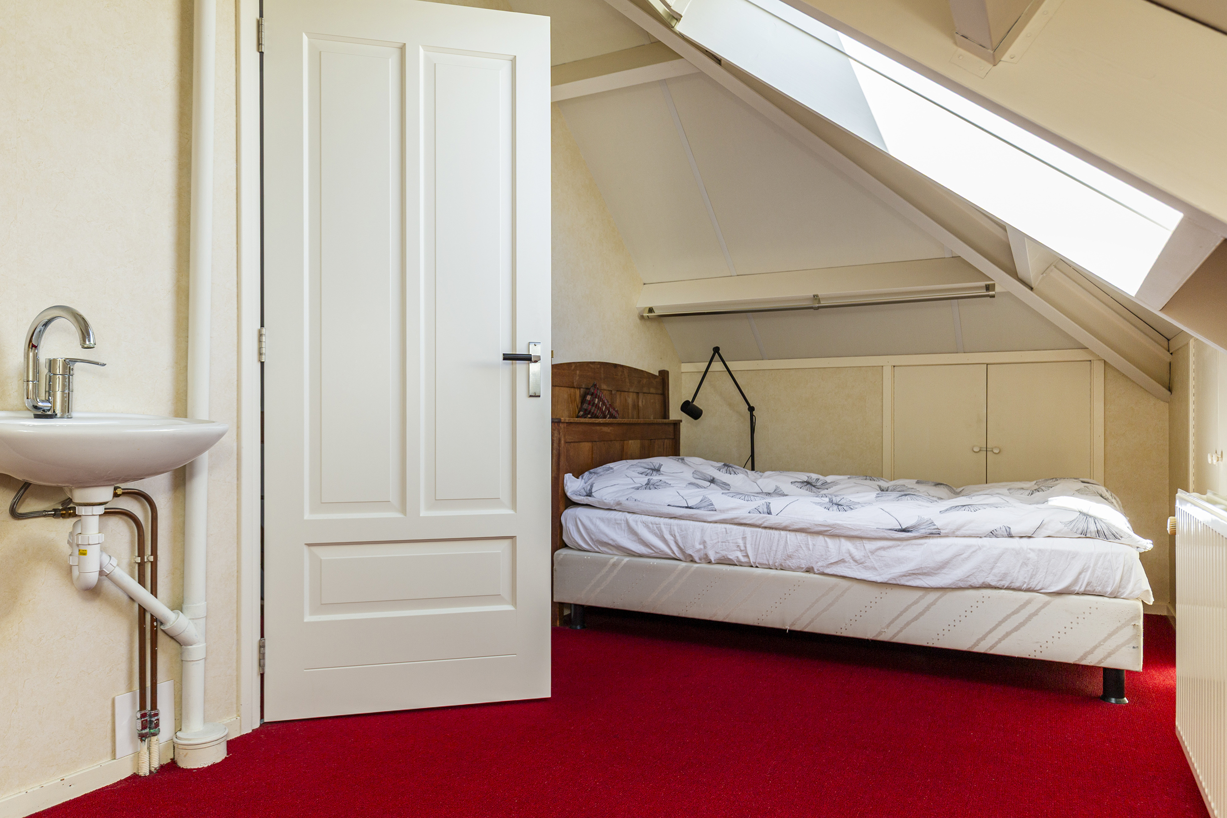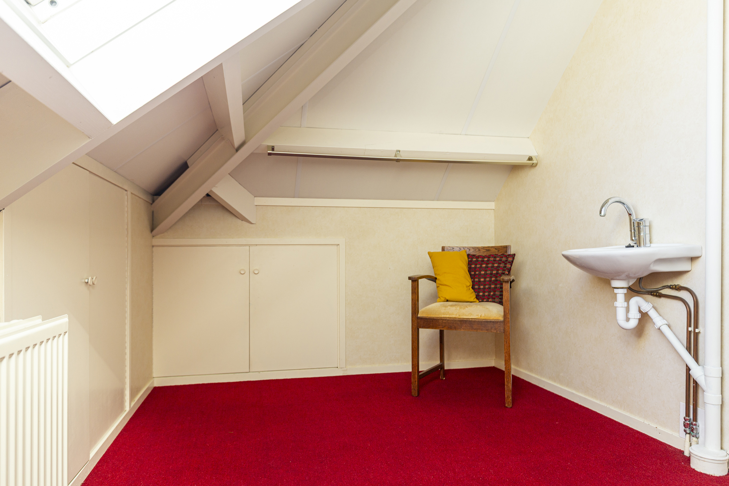 Via de trapopgang bereikt u de overloop van de eerste verdieping. Hier bevinden zich nog twee ruime slaapkamers. Beide kamers zijn licht en sfeervol, met houten balken die direct in het oog springen. Dat geeft deze verdieping een eigen karakter. De kamers zijn heel geschikt als kinderkamer, logeerkamer, werkkamer of hobbyruimte.