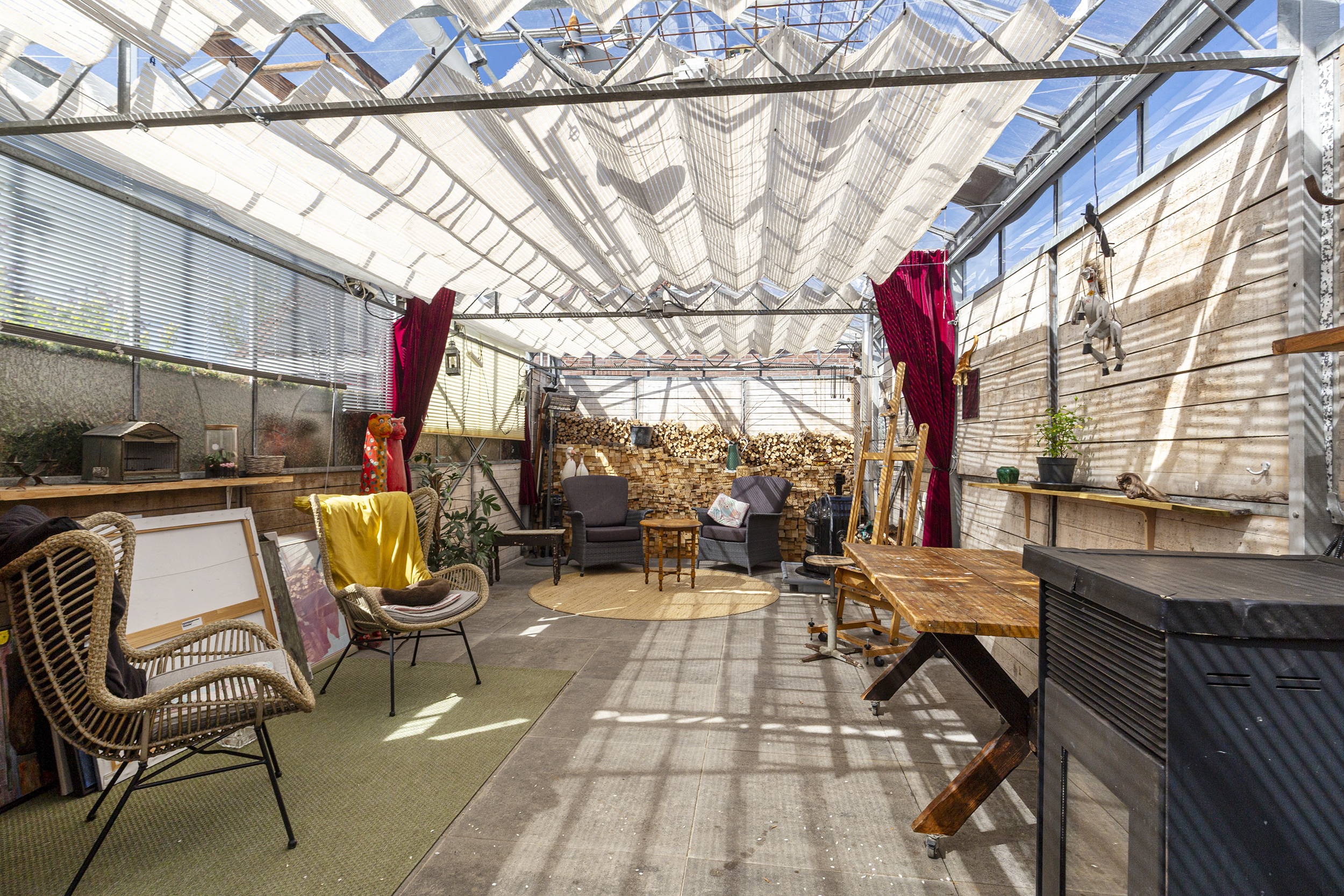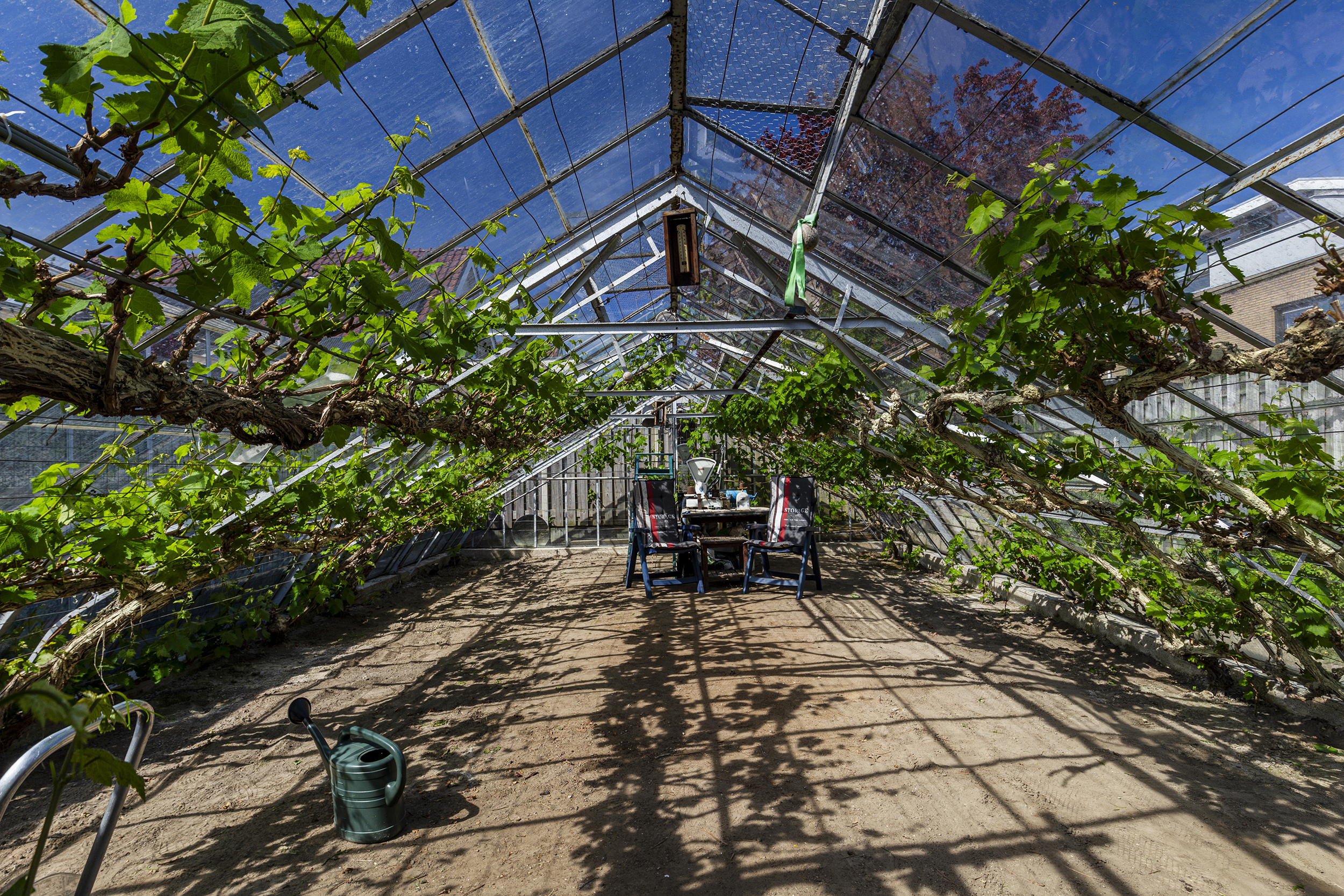 Op het perceel staan twee kassen, waaronder de karakteristieke druivenkas die is overgedragen door de familie Van Koppen. Daarmee sluit ook buiten alles mooi aan op de historie van deze plek. Daarnaast is er een ruime serre met houtkachel, een sfeervolle plek voor lange avonden, een creatieve hobby, het ontvangen van familie en vrienden of zelfs het geven van workshops.