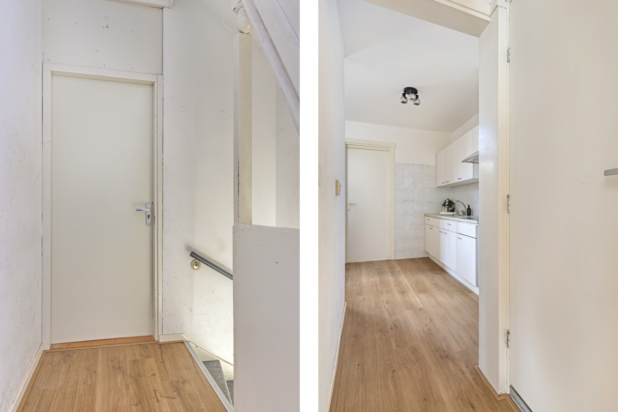Entree met voordeur op de begane grond en vervolgens een binnentrap naar de 1e verdieping.
