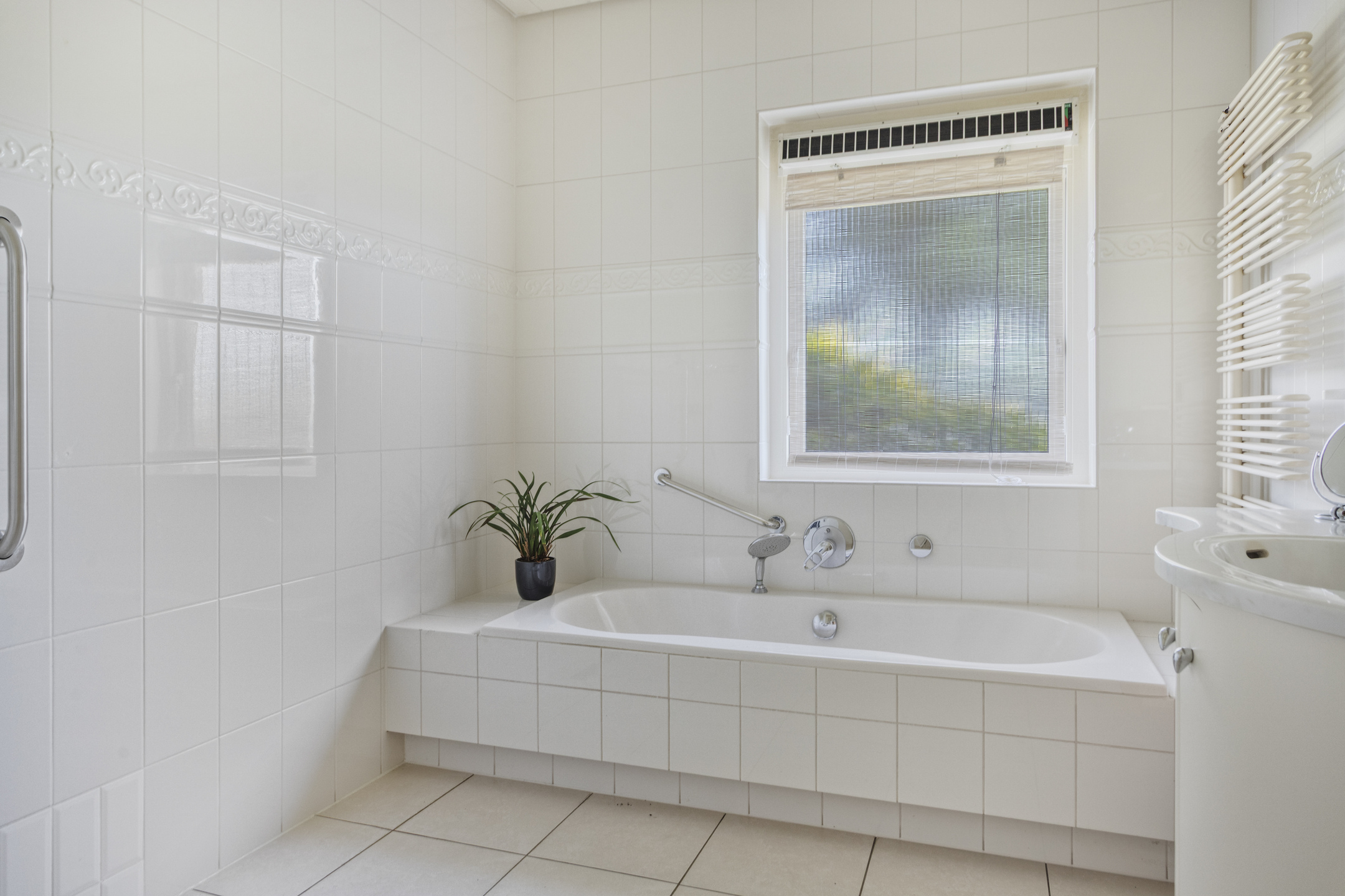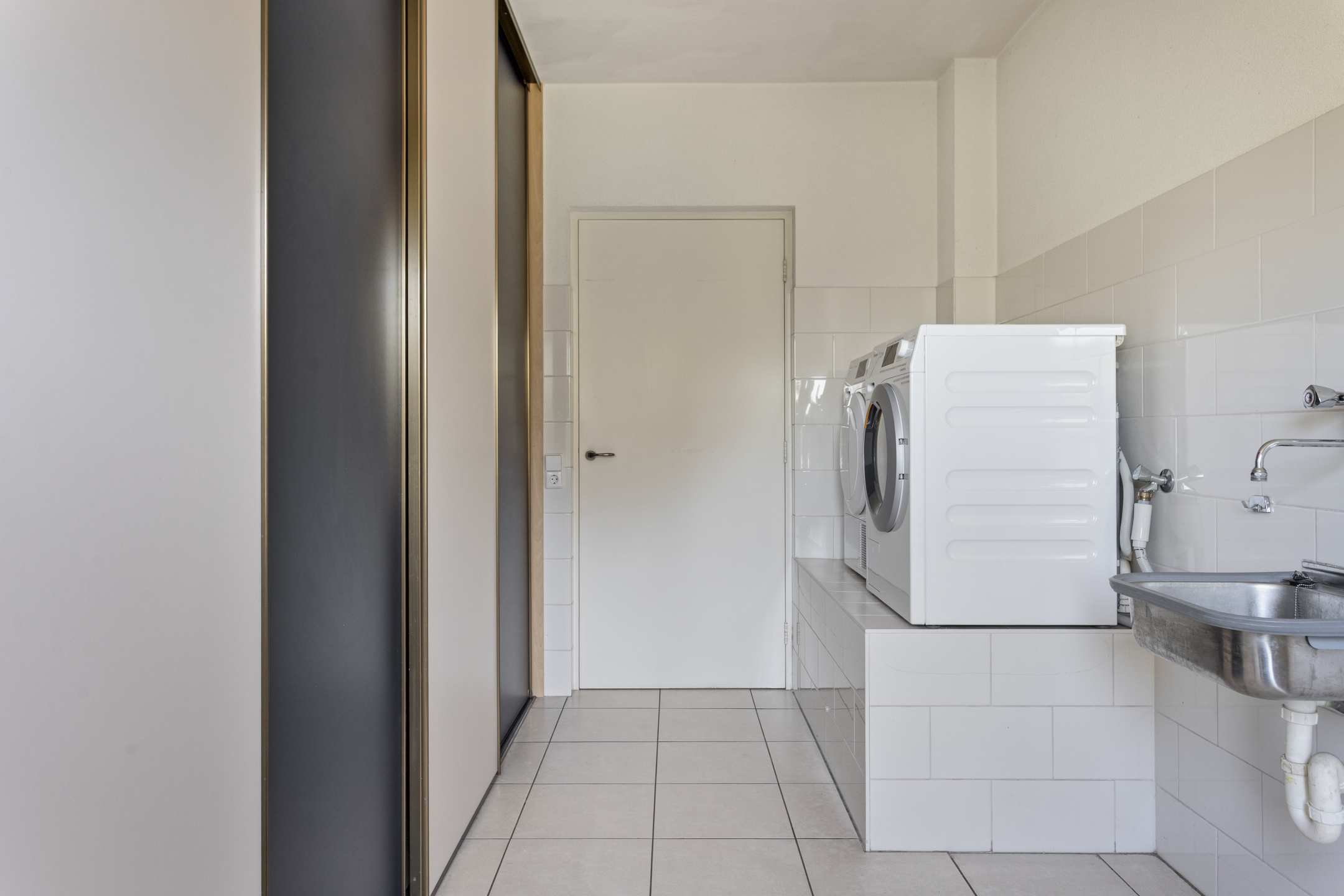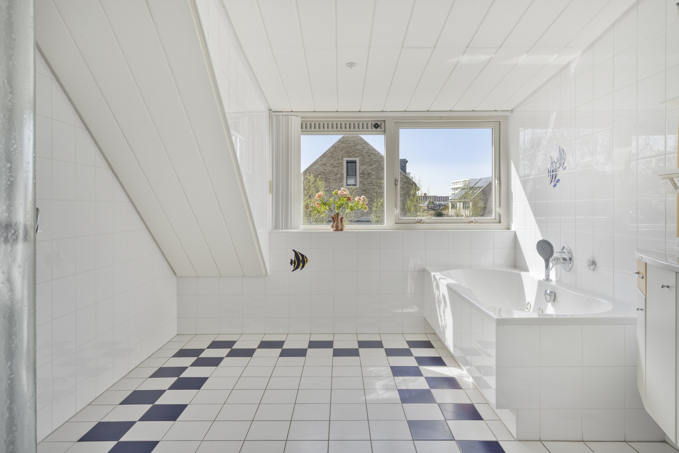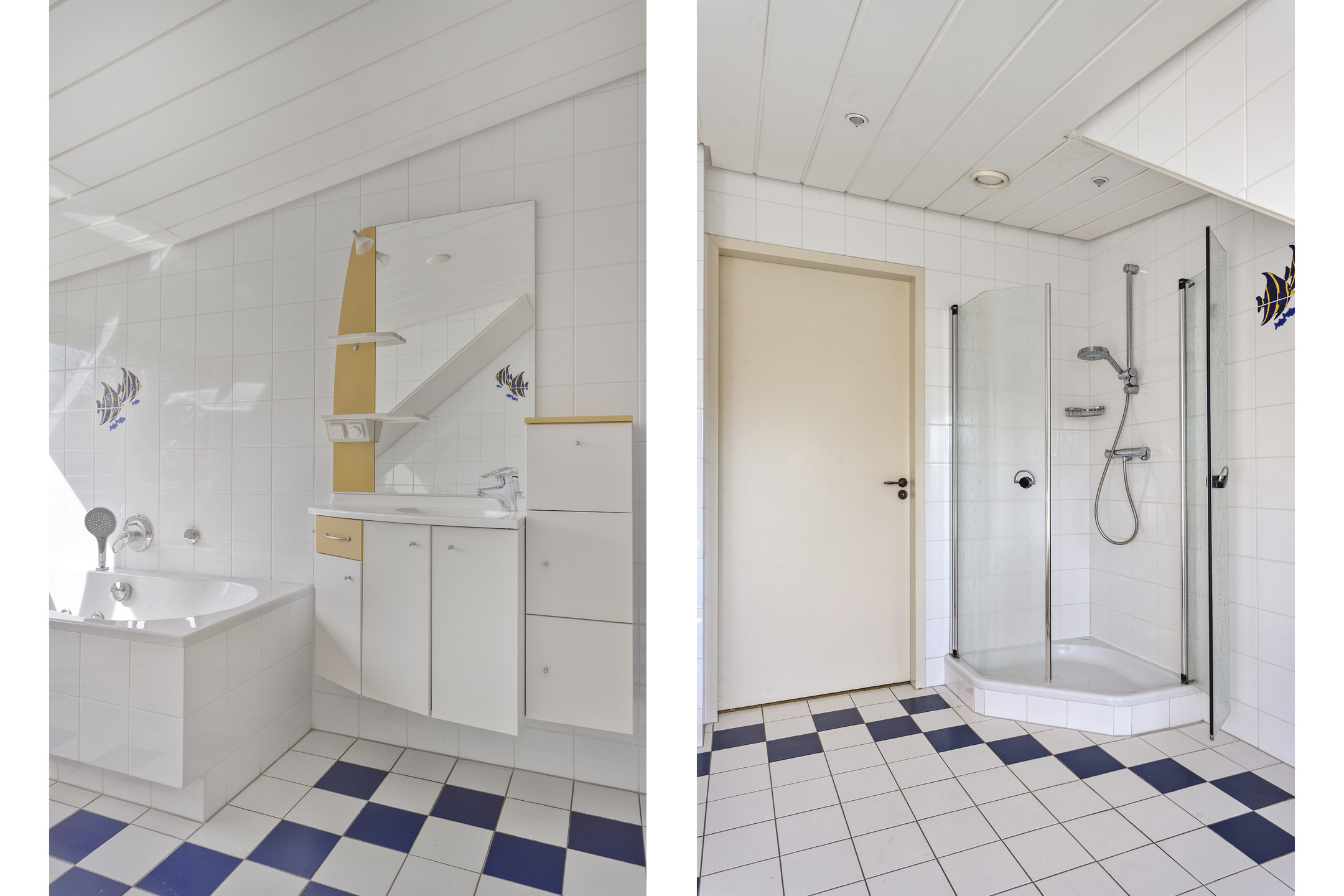 Centraal op deze verdieping bevindt zich de badkamer met ligbad, douche en wastafel. Daarnaast is er een separaat toilet, wat het comfort voor een gezin of logees vergroot. Meerdere bergingen, waaronder een technische ruimte met cv-installatie (2019) en wasvoorzieningen, zorgen ervoor dat de woonruimtes optimaal benut blijven.