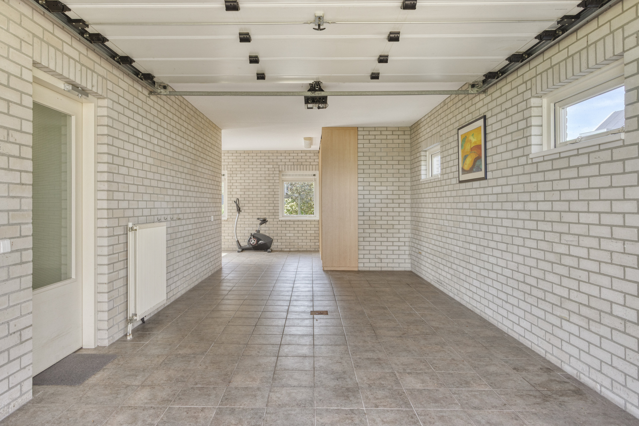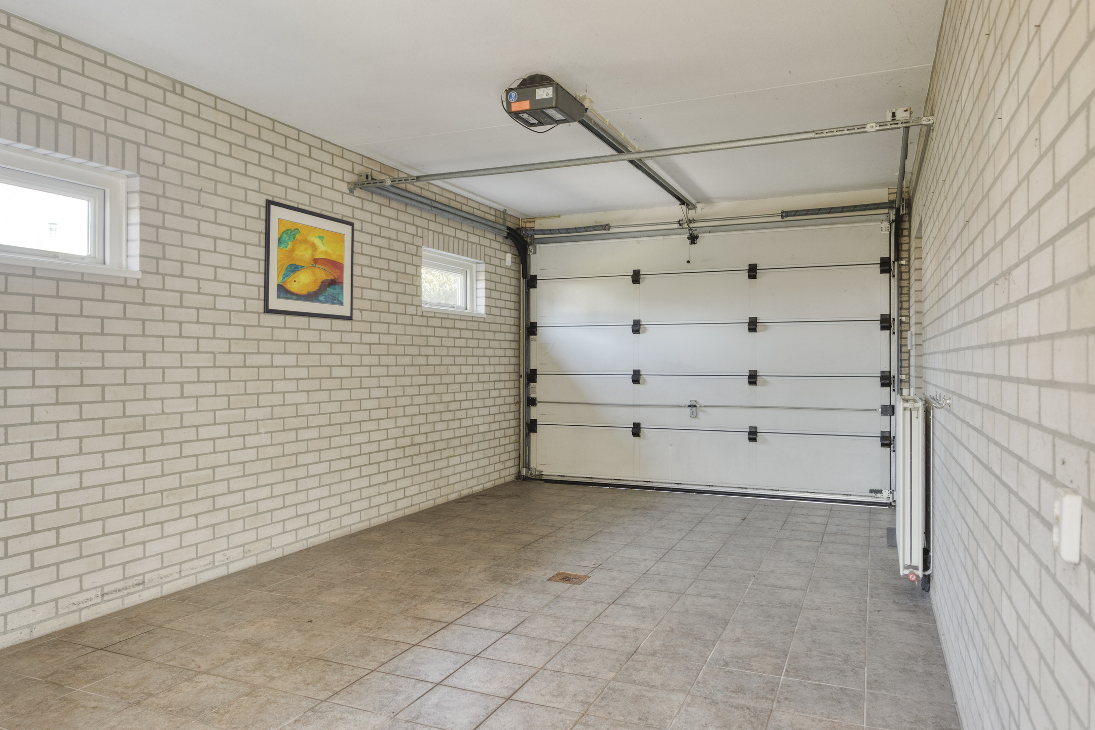 De ruim opgezette inpandige garage is bereikbaar vanuit de woning en is voorzien van een elektrische overheaddeur — comfortabel en praktisch in dagelijks gebruik.