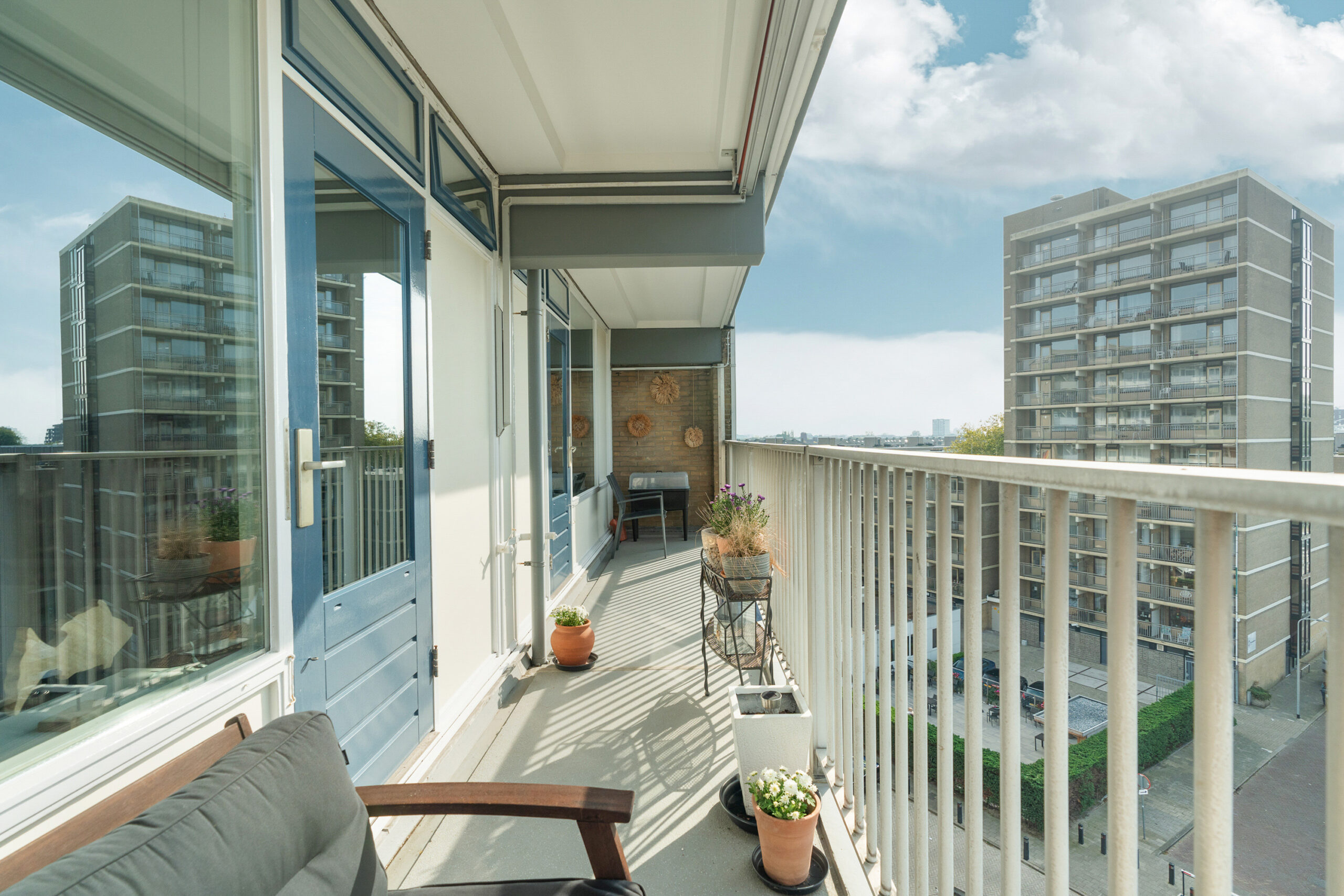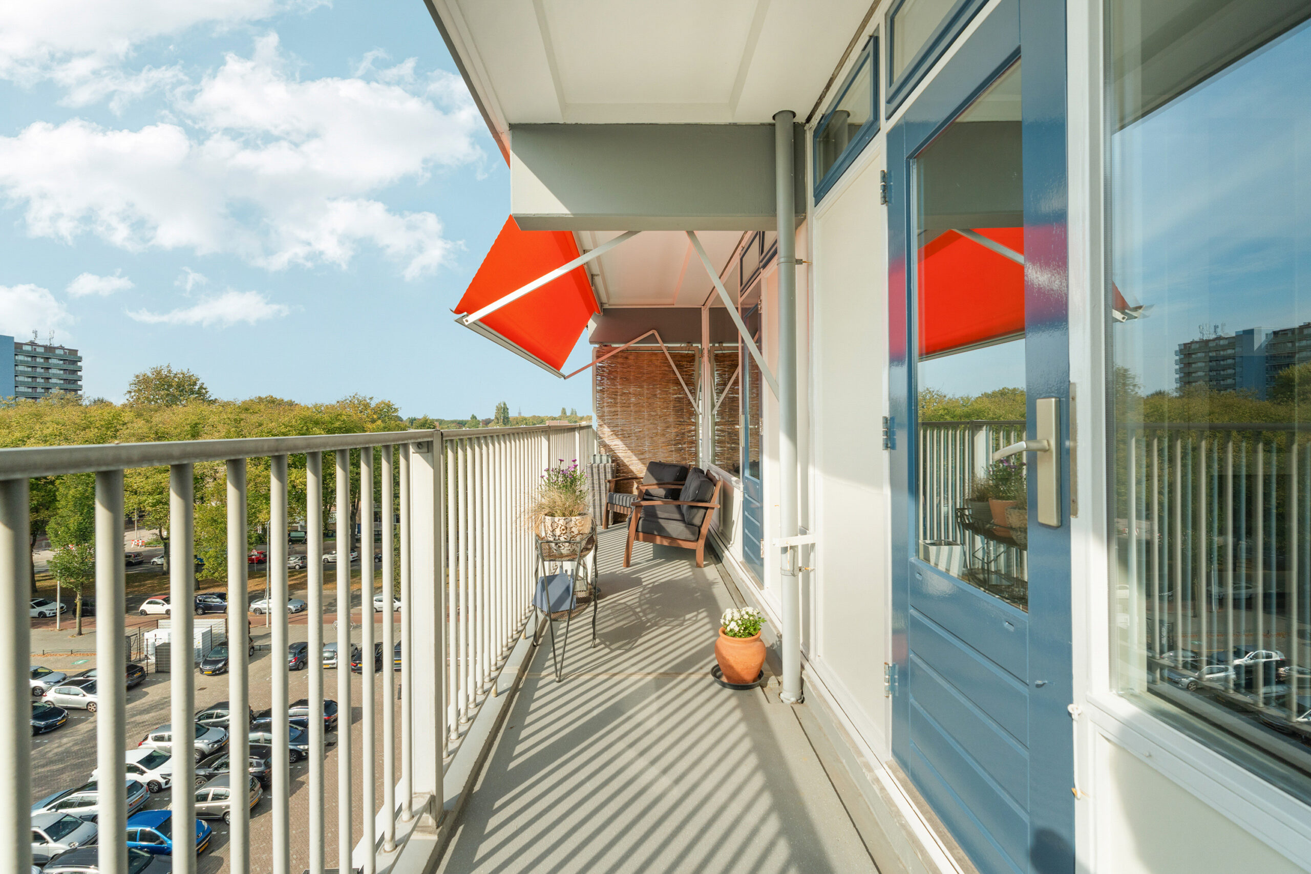 • Balkon op het westen met vrij uitzicht, voorzien van elektrische zonwering