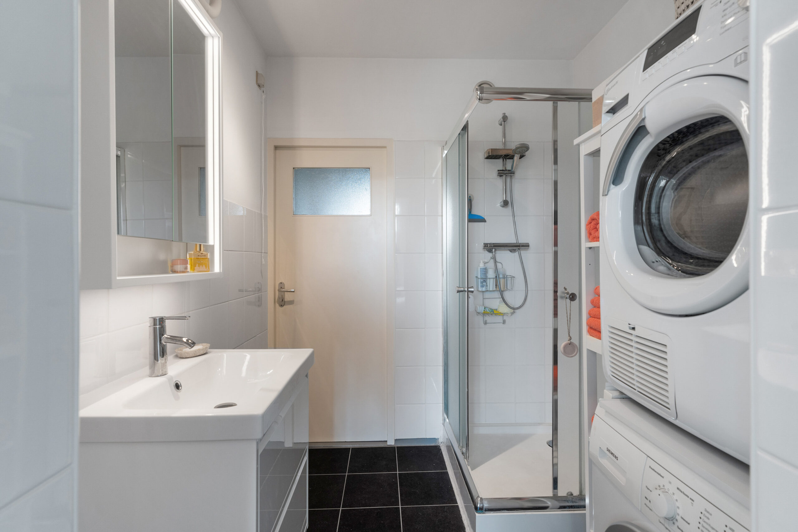 - Badkamervoorzieningen Douche, wastafel, wastafelmeubel, wasmachineaansluiting