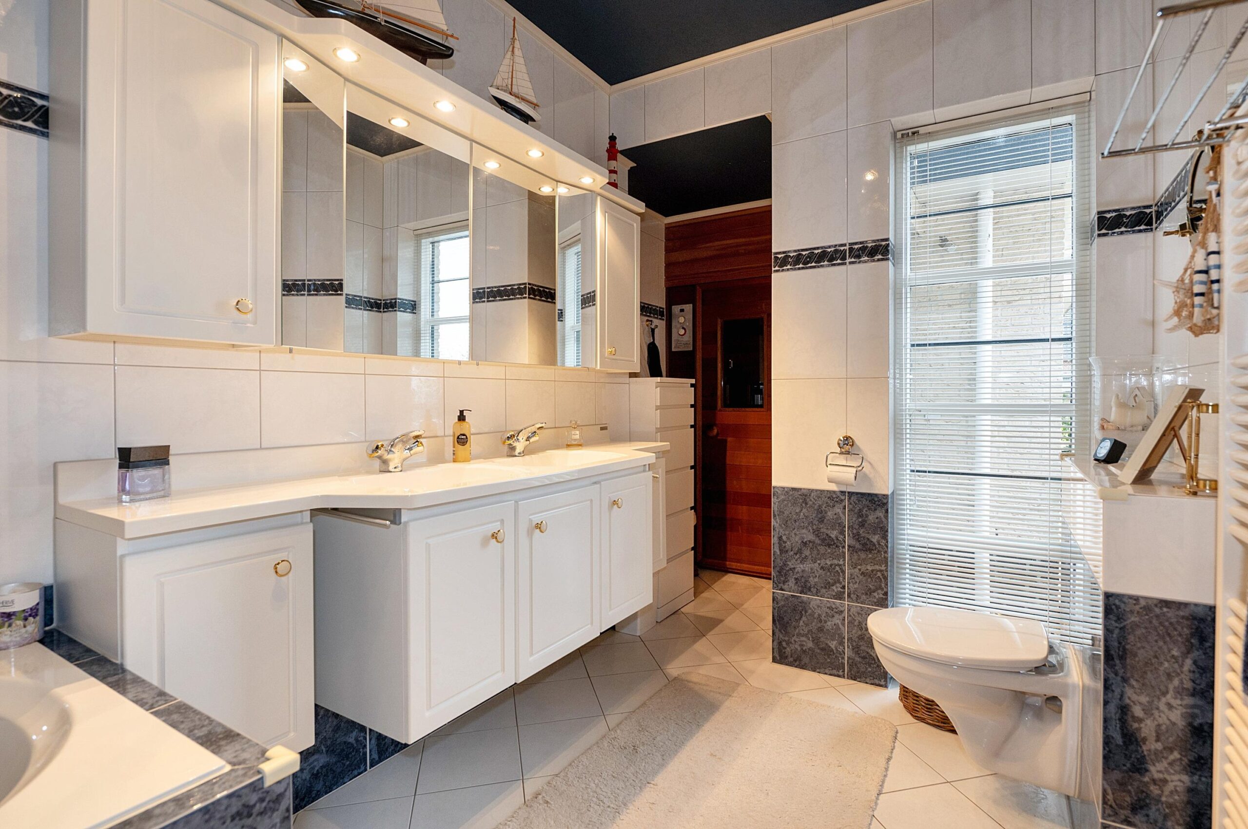 - Badkamervoorzieningen Ligbad, toilet, dubbele wastafel, wastafelmeubel, inloopdouche, sauna, douche, dubbele wastafel, wastafelmeubel