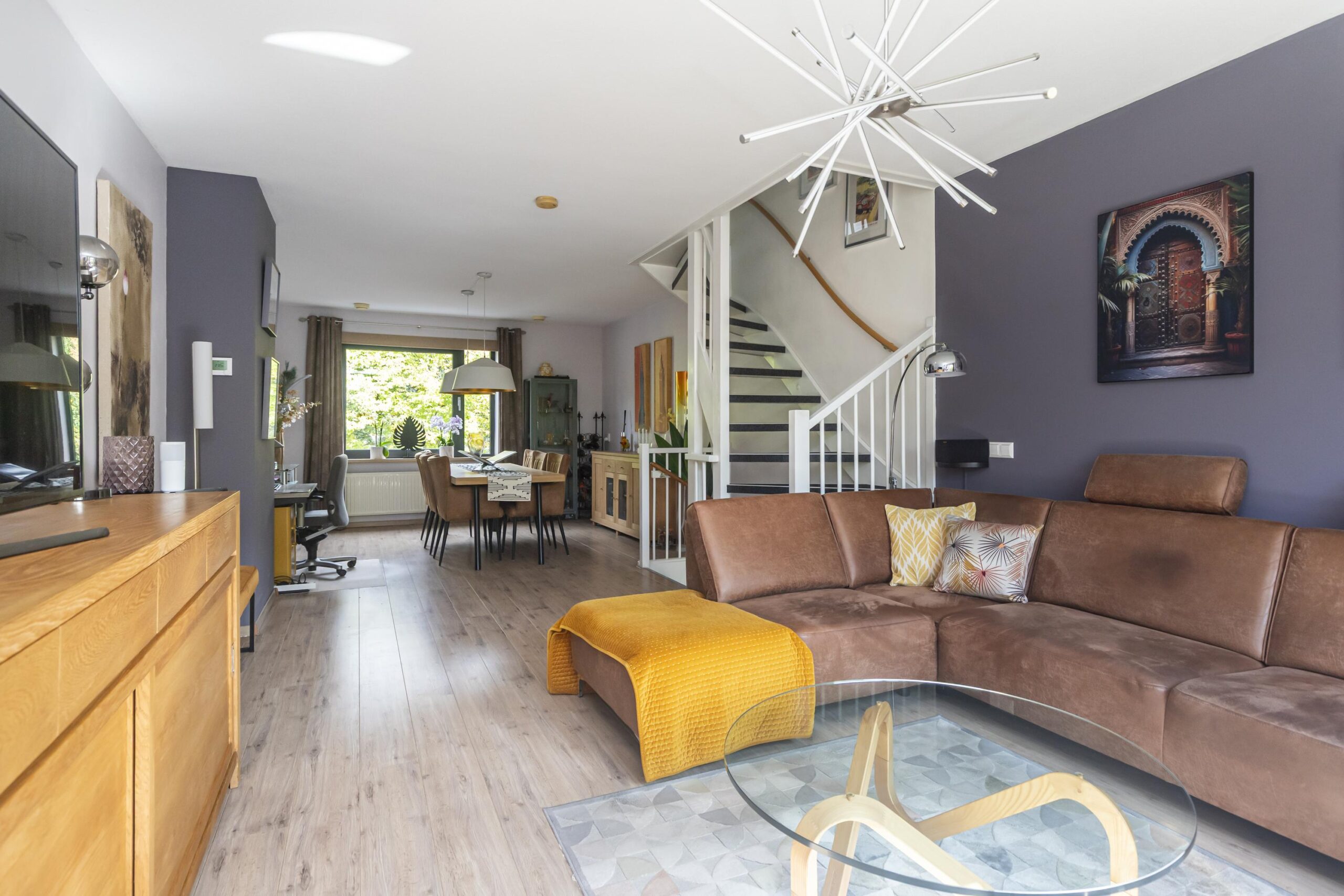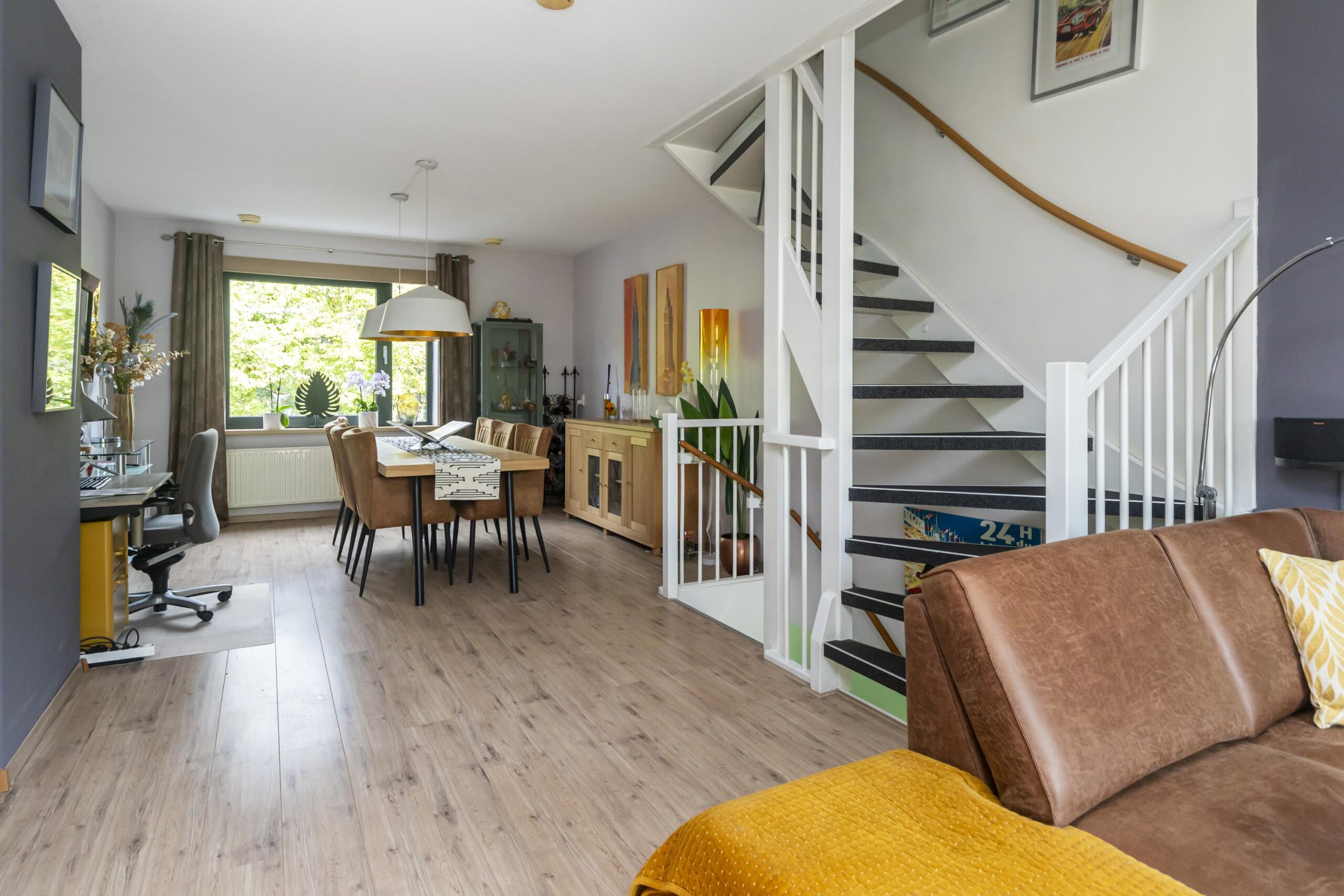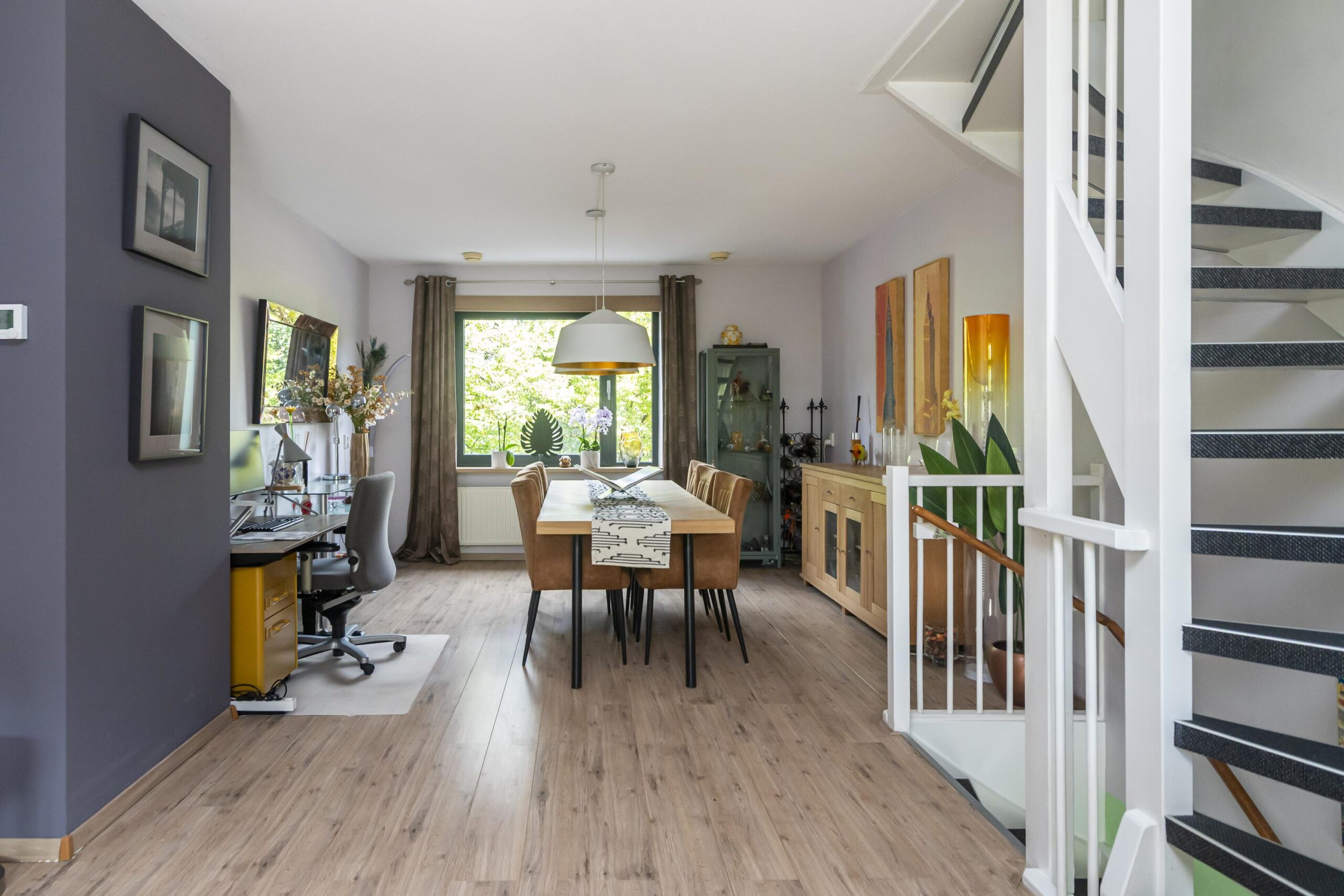 Wanneer je naar boven loopt kom je in de ruime woon- en eetkamer welke over de gehele lengte van de woning.