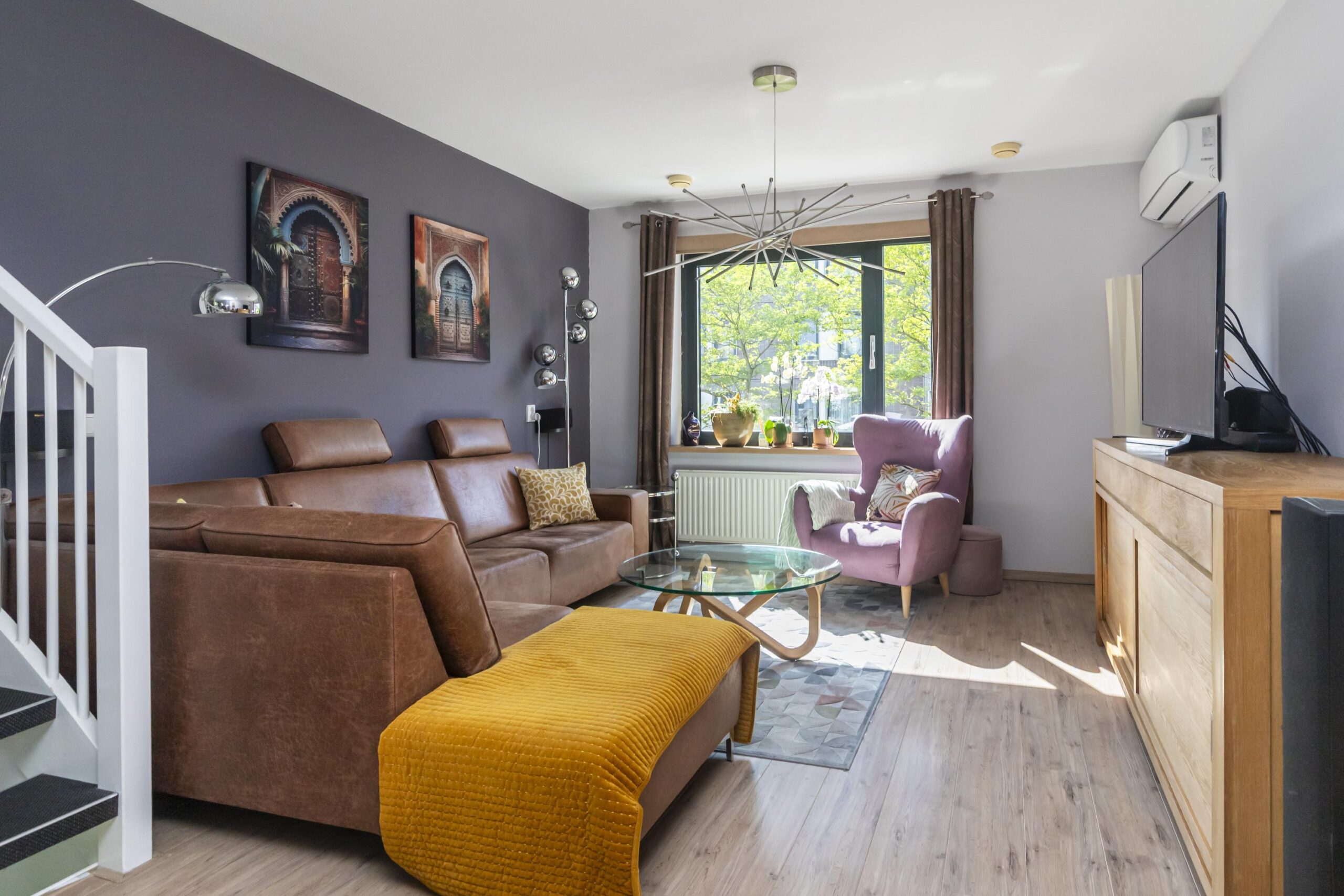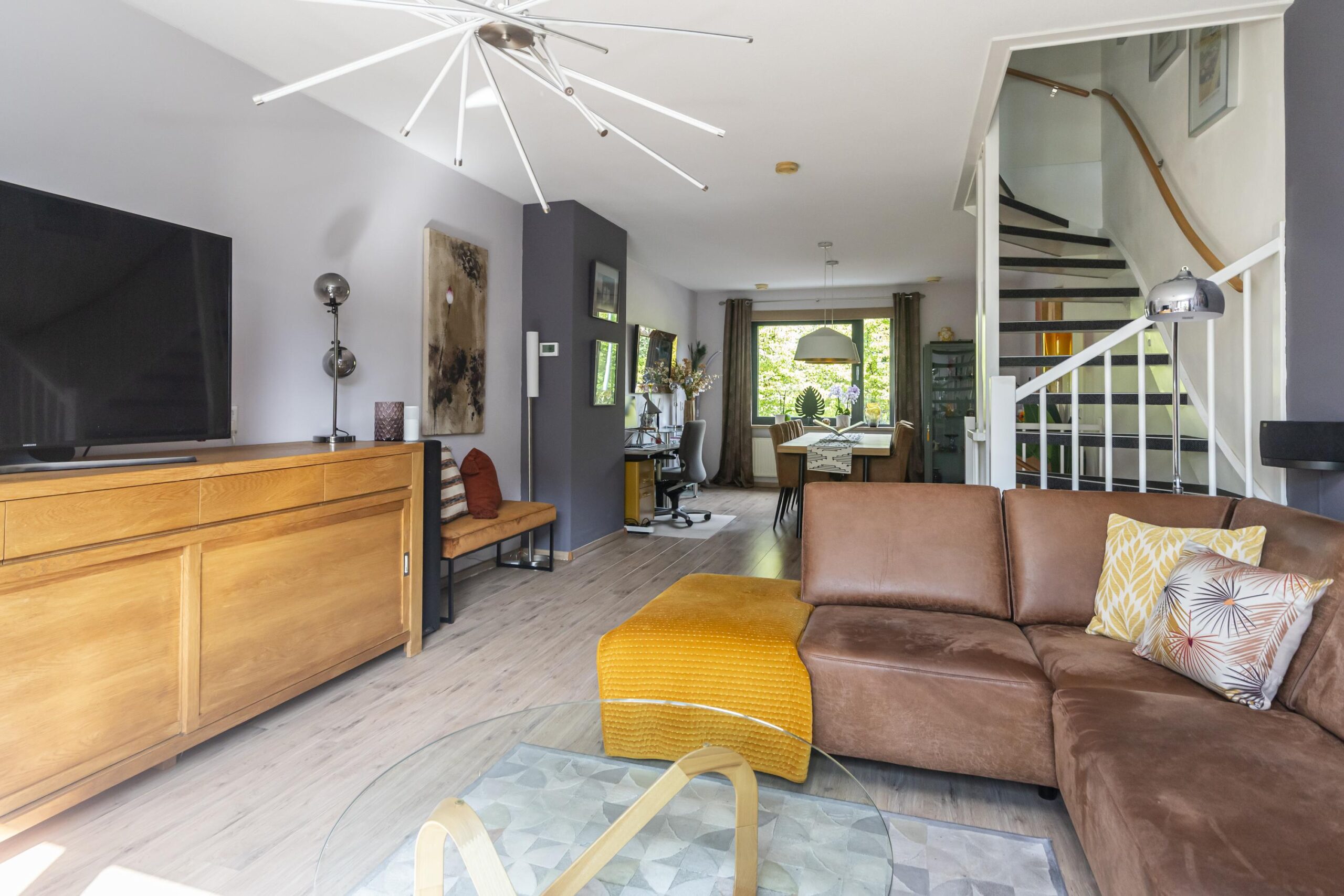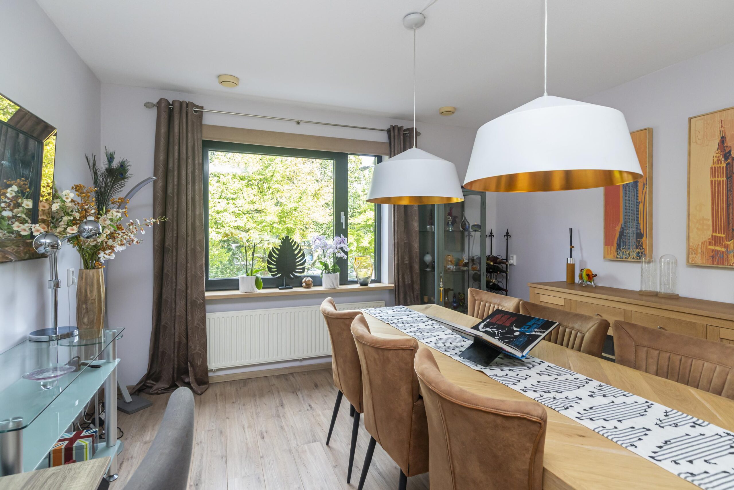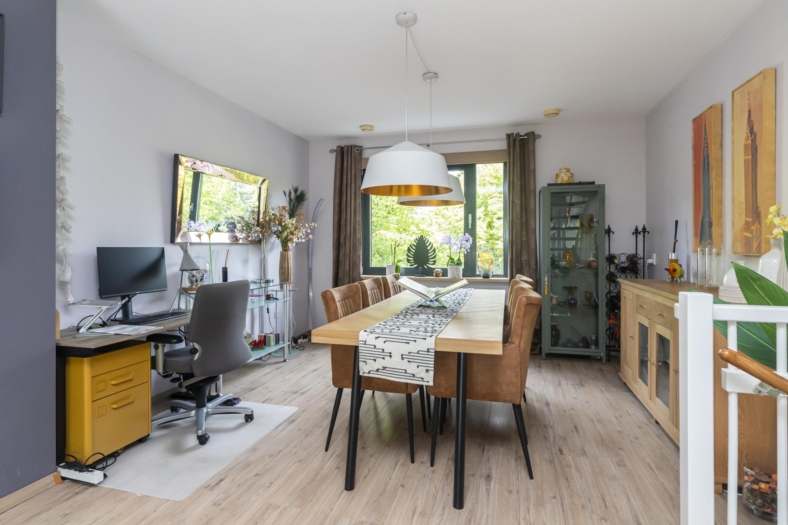 Wanneer je naar boven loopt kom je in de ruime woon- en eetkamer welke over de gehele lengte van de woning.