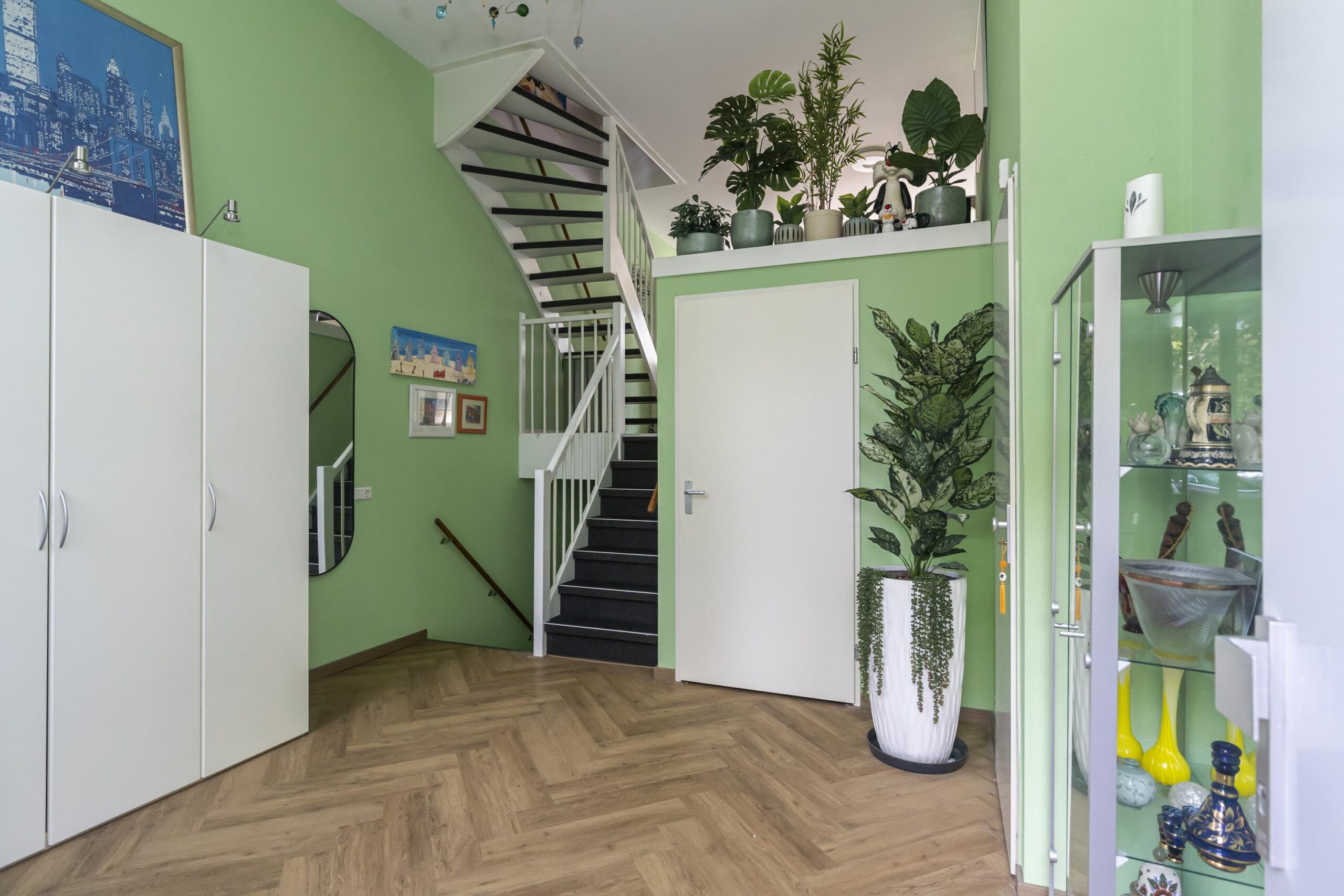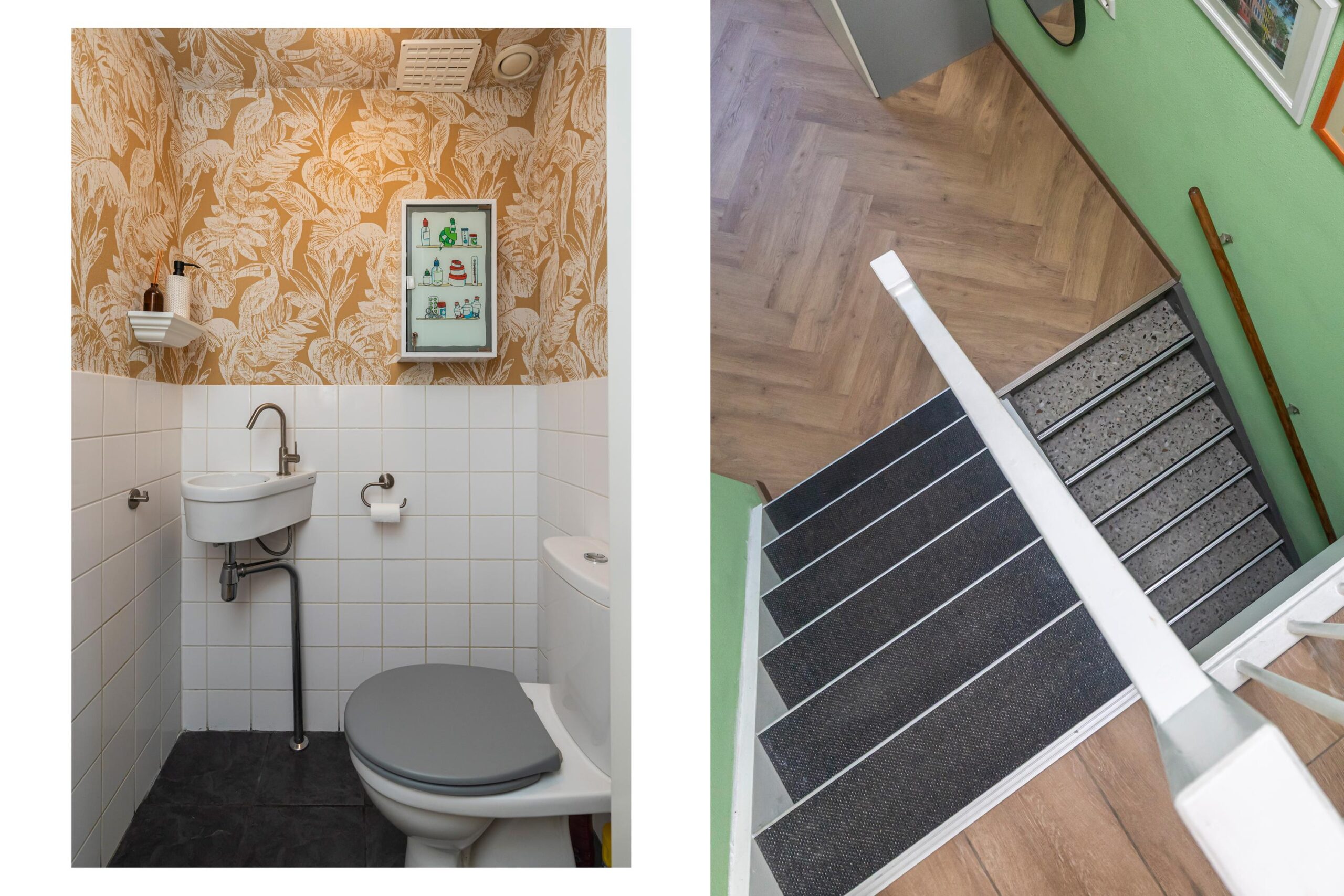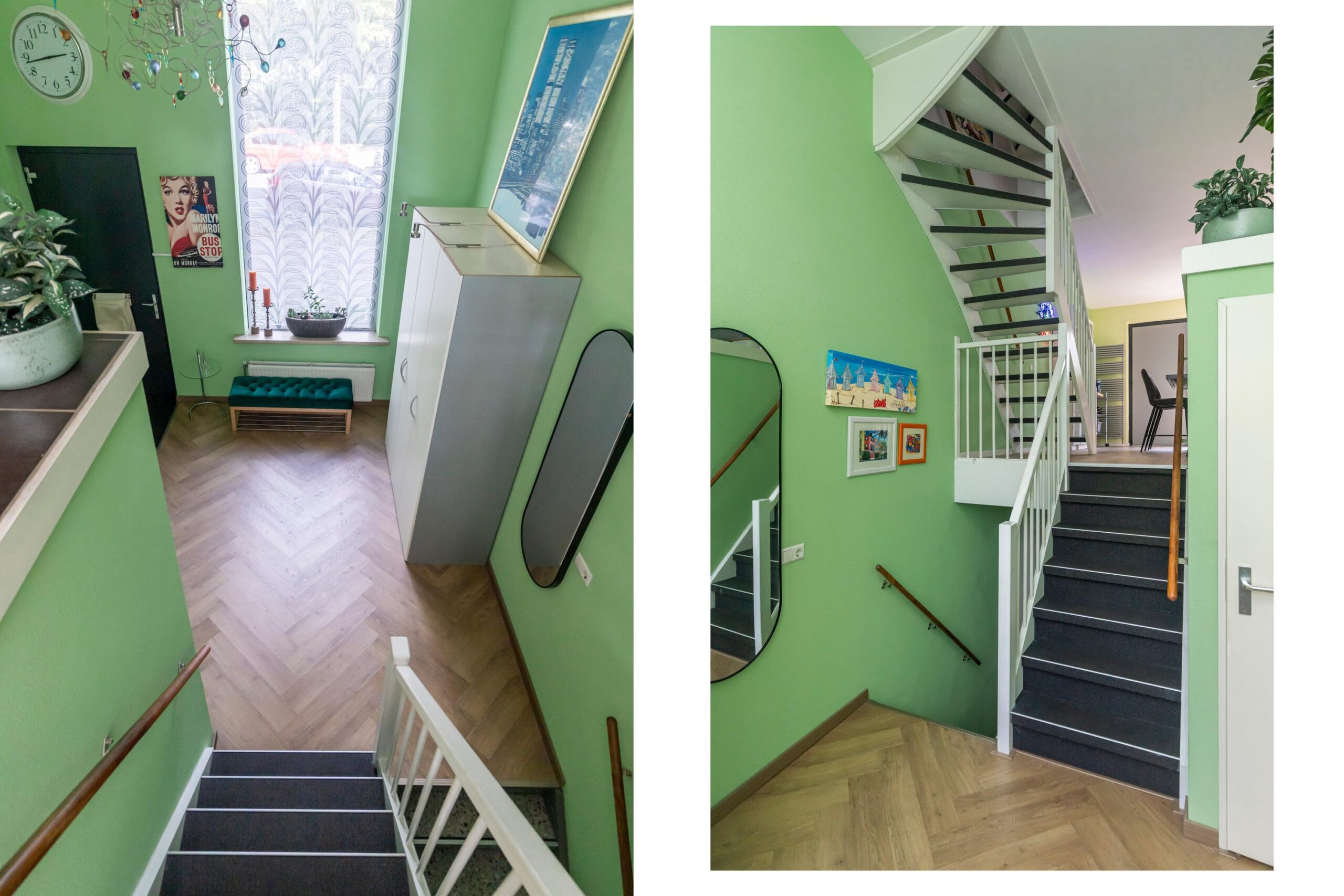 Wanneer je binnenkomt, stap je de voorkamer in, waar je toegang hebt tot het ruime toilet. Neem je de trap naar beneden, dan kom je in de inpandige garage met plek voor één auto. Vanuit hier loop je door naar de gezamenlijke parkeergarage, waar je nog een extra parkeerplaats tot je beschikking hebt – ideaal wanneer je twee auto’s hebt of graag wat extra gemak wilt.