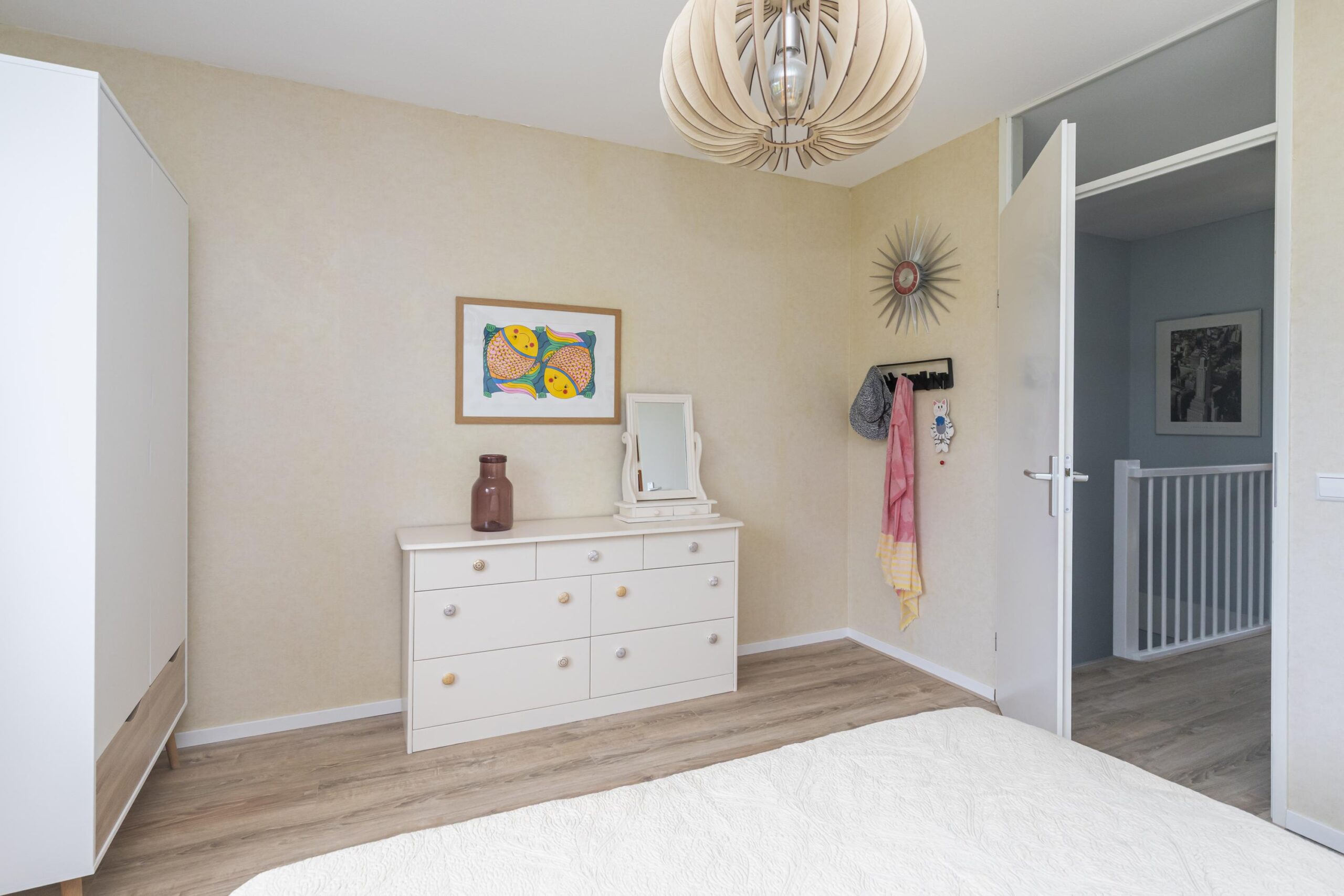 Als je de trap naar boven neemt, vind je aan zowel de voor- als achterzijde twee identieke, ruime slaapkamers. In het midden van de woning ligt de badkamer, uitgerust met een douche, toilet en wastafelmeubel. Op de bovenste verdieping tref je opnieuw twee slaapkamers van hetzelfde formaat aan de voor- en achterzijde. Alle vier de slaapkamers hebben een goed formaat en daardoor veelzijdig in te delen – ideaal als slaapkamer, werkkamer of hobbyruimte. Op deze verdieping bevindt zich bovendien een praktische berging met ruimte voor de wasmachine.