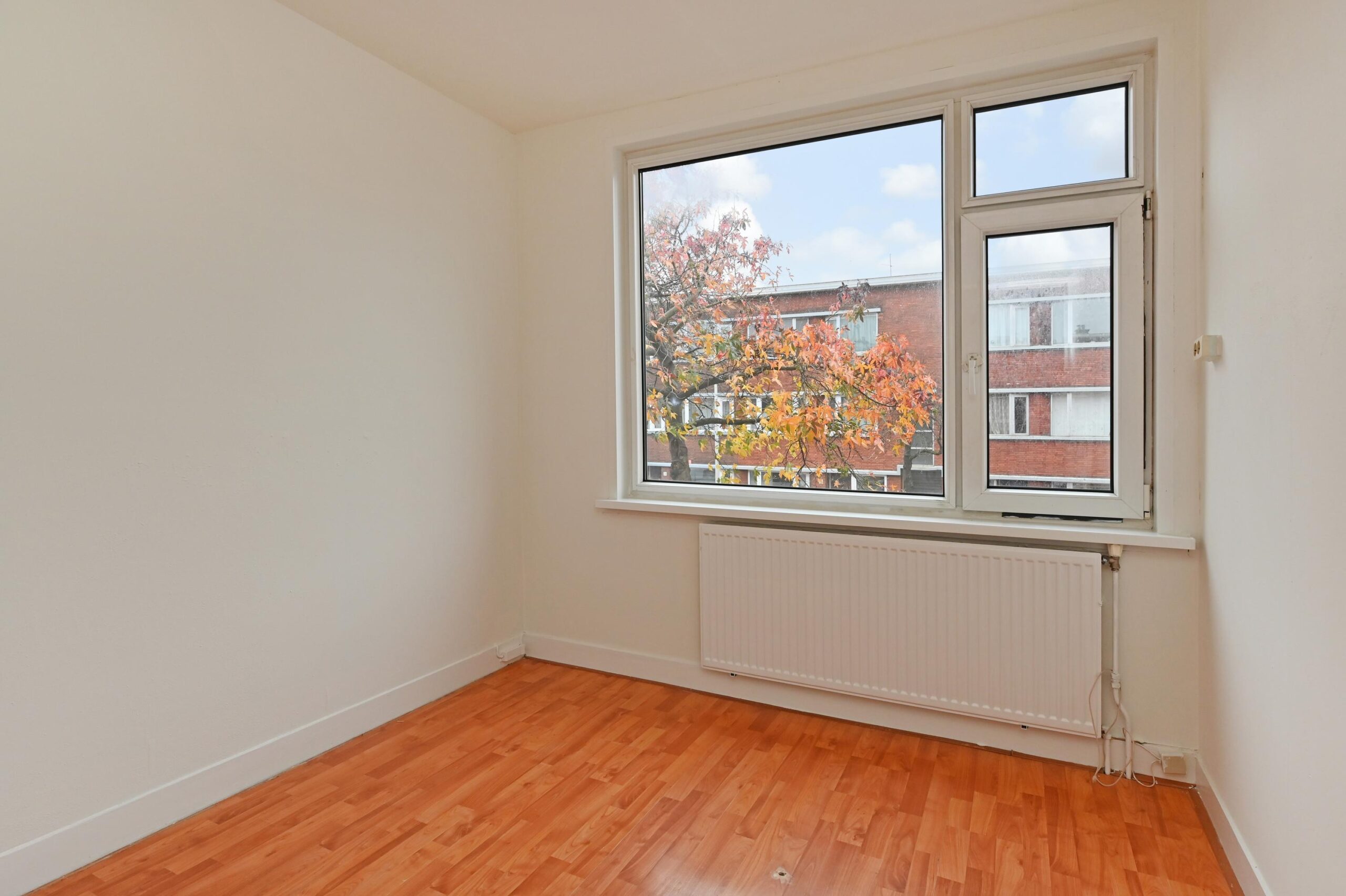 De woning is gelegen op de eerste verdieping en biedt een comfortabele en praktische indeling. Bij binnenkomst is direct de eerste slaapkamer aan de linkerzijde te vinden, welke uitzicht heeft op de rustige straat. Vervolgens leidt de hal je naar de ruime woon- en eetkamer, die dankzij de grote raampartijen prettig licht is en een prettige leefruimte biedt. Vanuit de woonkamer is tevens de tweede slaapkamer bereikbaar, gelegen aan de voorzijde van de woning. Deze kamer is ruim van formaat en biedt voldoende ruimte voor een tweepersoonsbed en extra meubelstukken, ideaal voor gebruik als hoofdslaapkamer, werkkamer of logeerkamer.