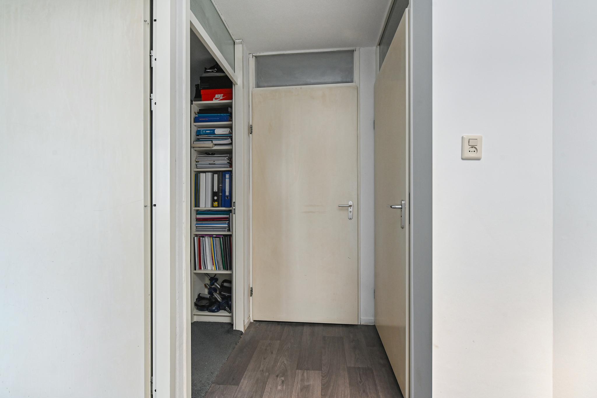 U komt binnen in de hal, die toegang biedt tot een separaat toilet, badkamer voorzien van douche, wastafelmeubel en handdoekradiator, meterkast en trap naar de 1e verdieping. Verder bevindt zich op deze verdieping een slaapkamer, voorzien van een handige berging die perfect kan dienen als inloopkast of voor het opbergen van andere spullen. De tweede kamer is een ruime slaapkamer, waar tevens een pantry aanwezig is. Dit maakt het tot een volledig zelfstandige leefruimte, ideaal voor gasten of oudere kinderen. Vanuit deze kamer heeft u toegang tot de achtertuin, waar u kunt genieten van de rust en privacy. De tuin is voorzien van een houten berging en een overkapping, perfect voor het opbergen van spullen of het creëren van een gezellige buitenruimte.