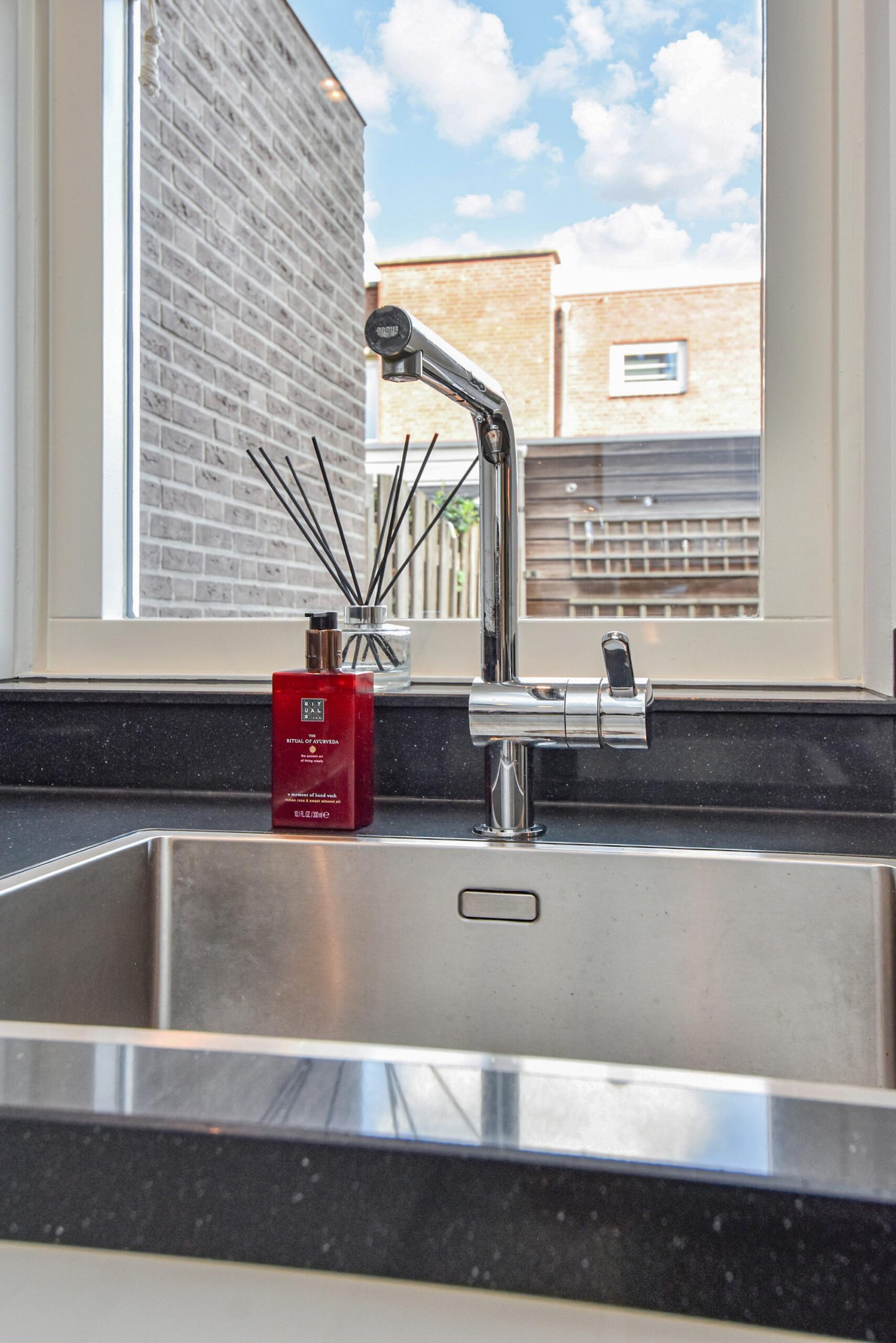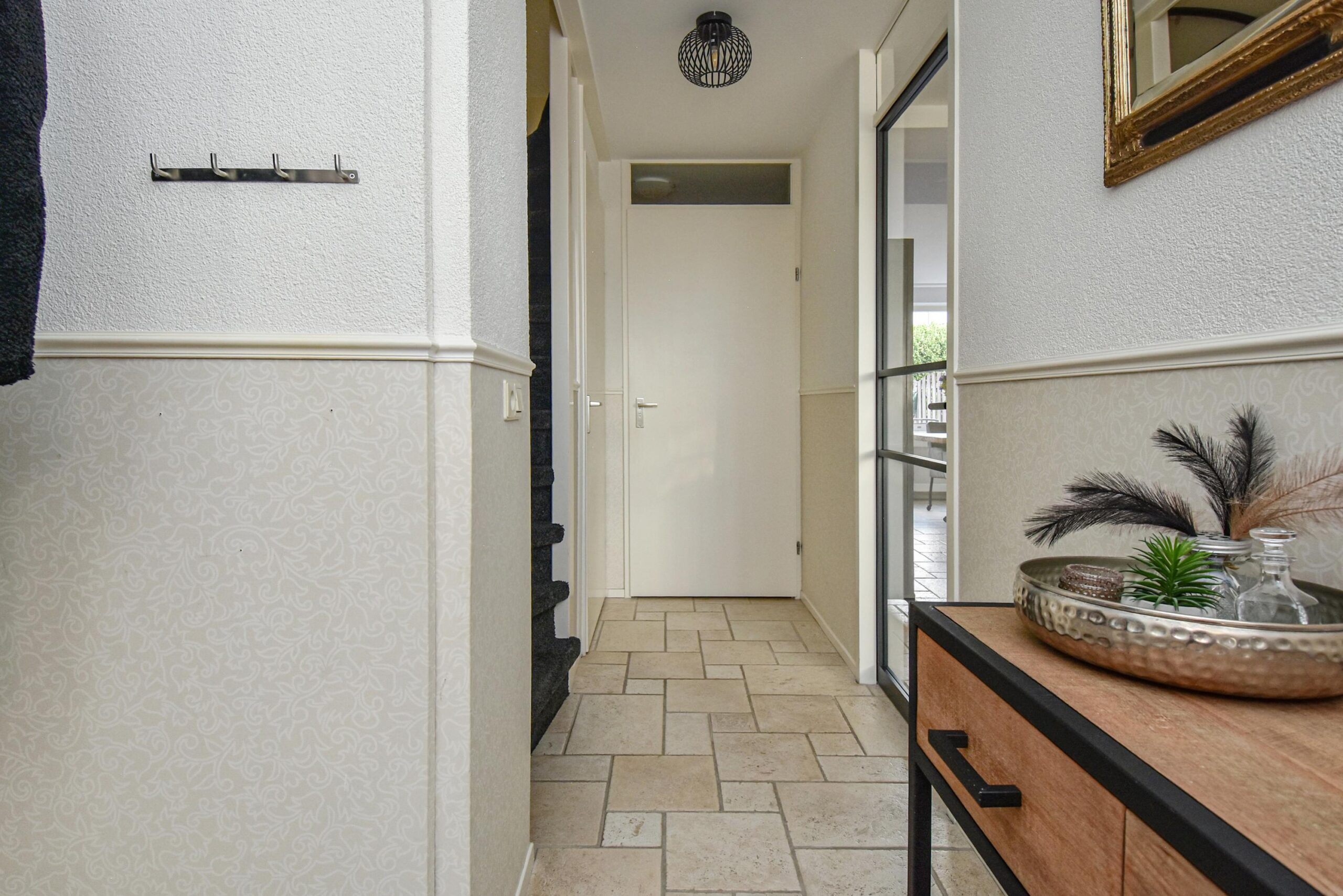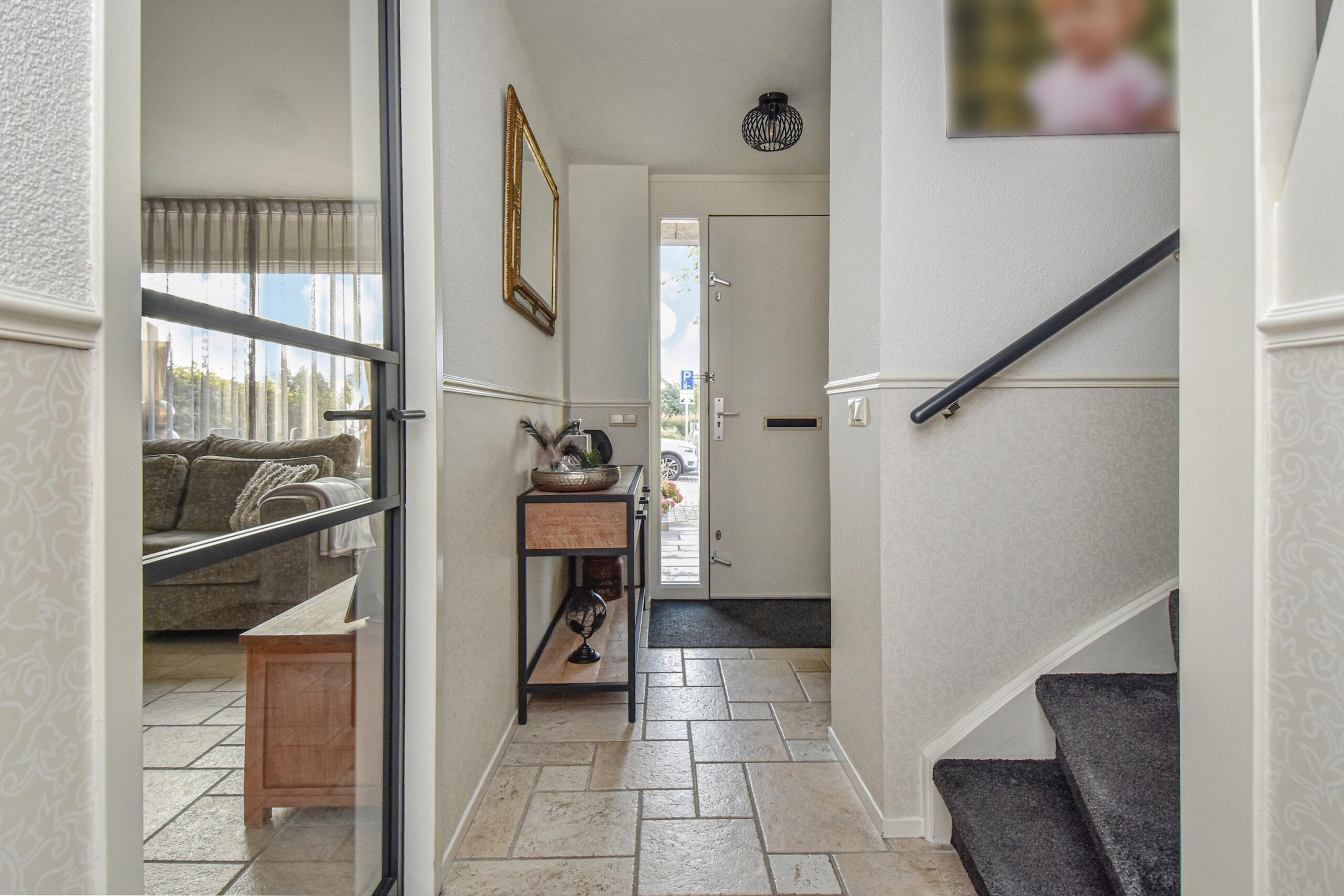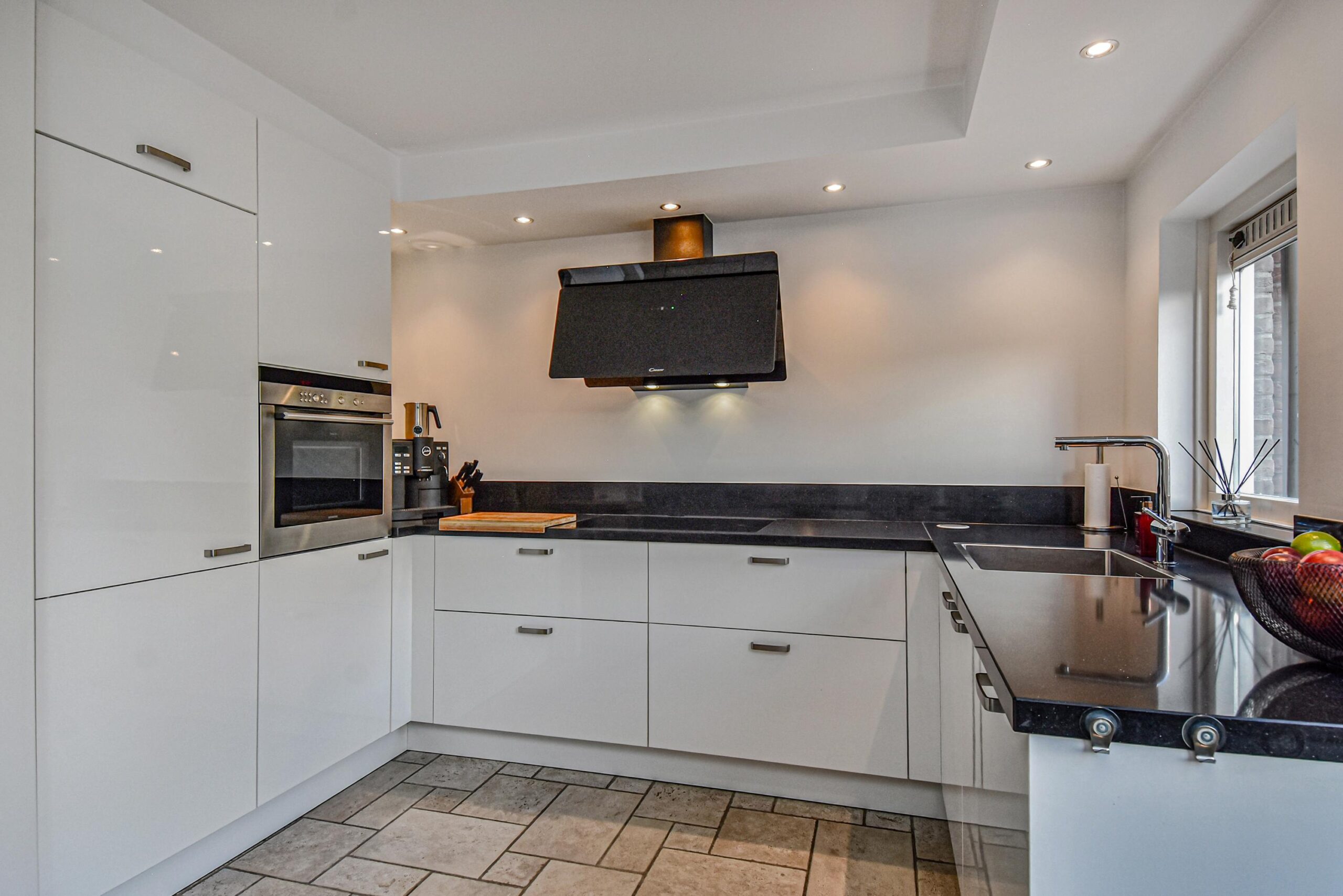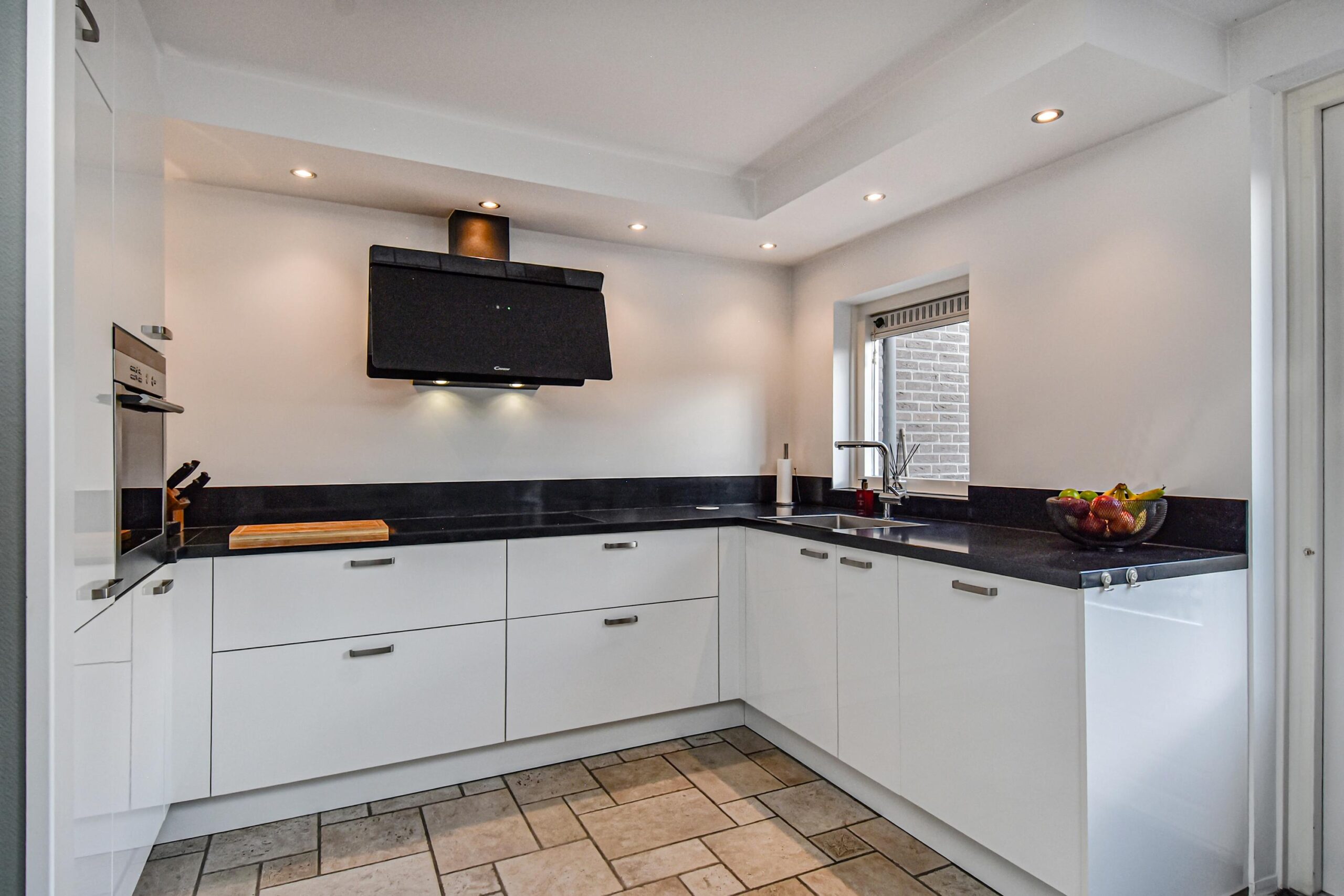 Via de verzorgde voortuin kom je binnen in de hal met meterkast, trapkast en een modern toilet met fonteintje. De lichte woonkamer is ruim opgezet en voorzien van een openslaande deur naar de achtertuin, wat zorgt voor een prettige verbinding tussen binnen en buiten. De open keuken aan de achterzijde is uitgerust met diverse inbouwapparatuur, waaronder een inductiekookplaat, koelkast, combi-oven/magnetron, close-in boiler en een vaatwasser.