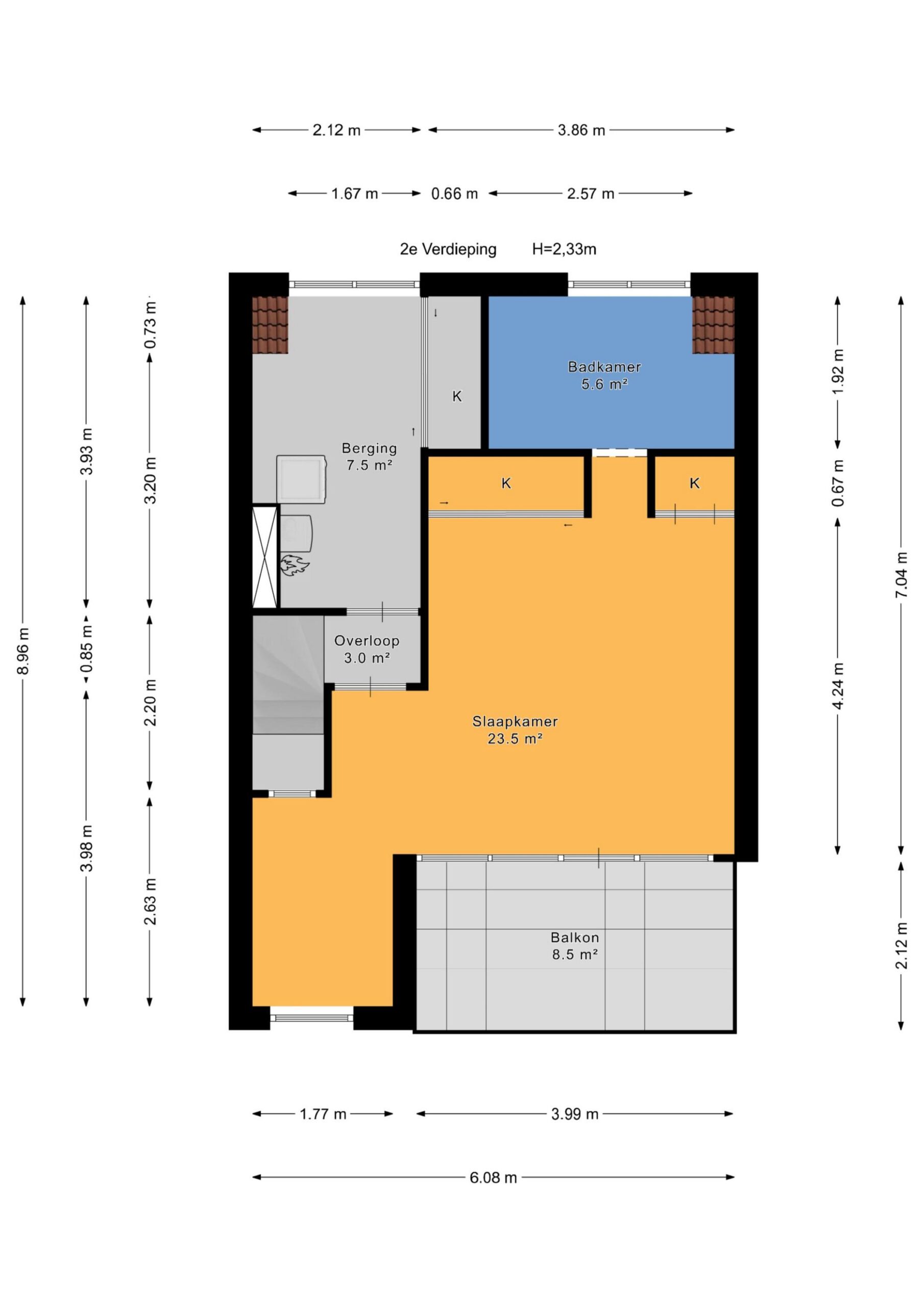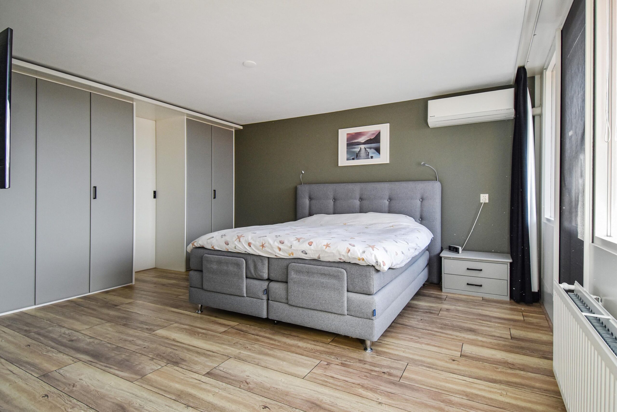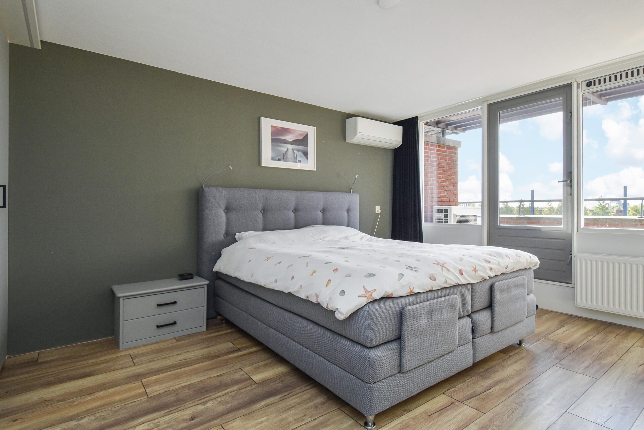 Hier vind je een ruime technische ruimte met onder meer de zonneboiler, cv-ketel, mechanische ventilatie en aansluitingen voor wasmachine en droger. De slaapkamer op deze verdieping is extra licht en heeft openslaande deuren naar een zonnig zuid-gericht balkon. Ook deze slaapkamer is voorzien van airconditioning. Verder is er een tweede badkamer - ensuit (in aanbouw, al het installatiewerk is gereed) aanwezig, wat deze verdieping uitermate geschikt maakt als ouderslaapkamer of zelfstandige slaap- of logeerruimte.