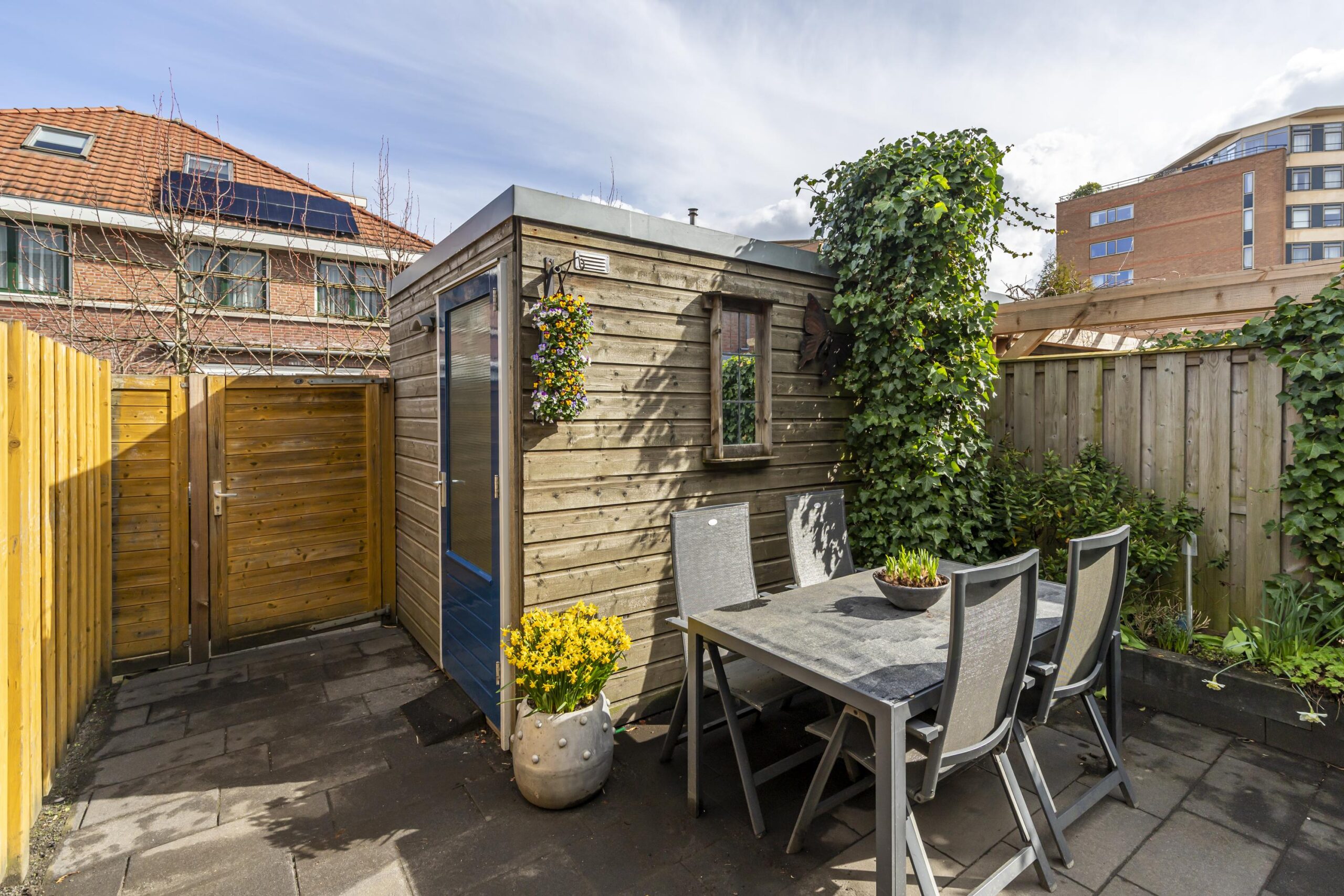 De woning heeft een eigen parkeerplaats aan de voorzijde van de woning op eigen grond, een mooi aangelegde achtertuin met een grote houten schuur en een achterom. Verder is er in de straat ook voldoende (gratis) parkeergelegenheid en een speeltuin met dierenweide!