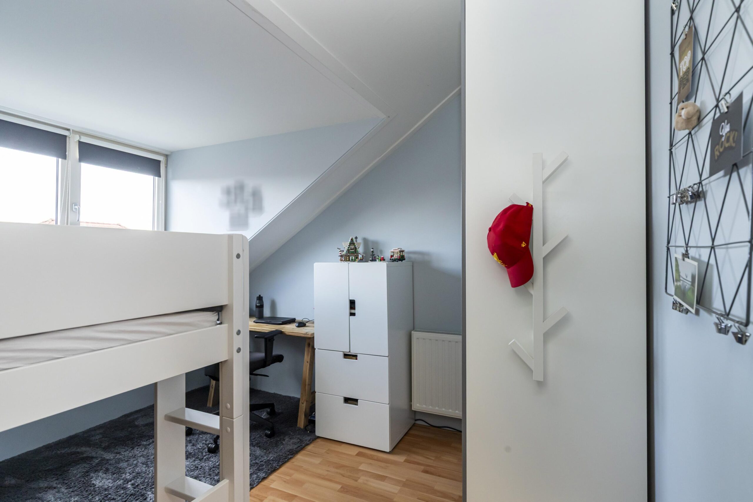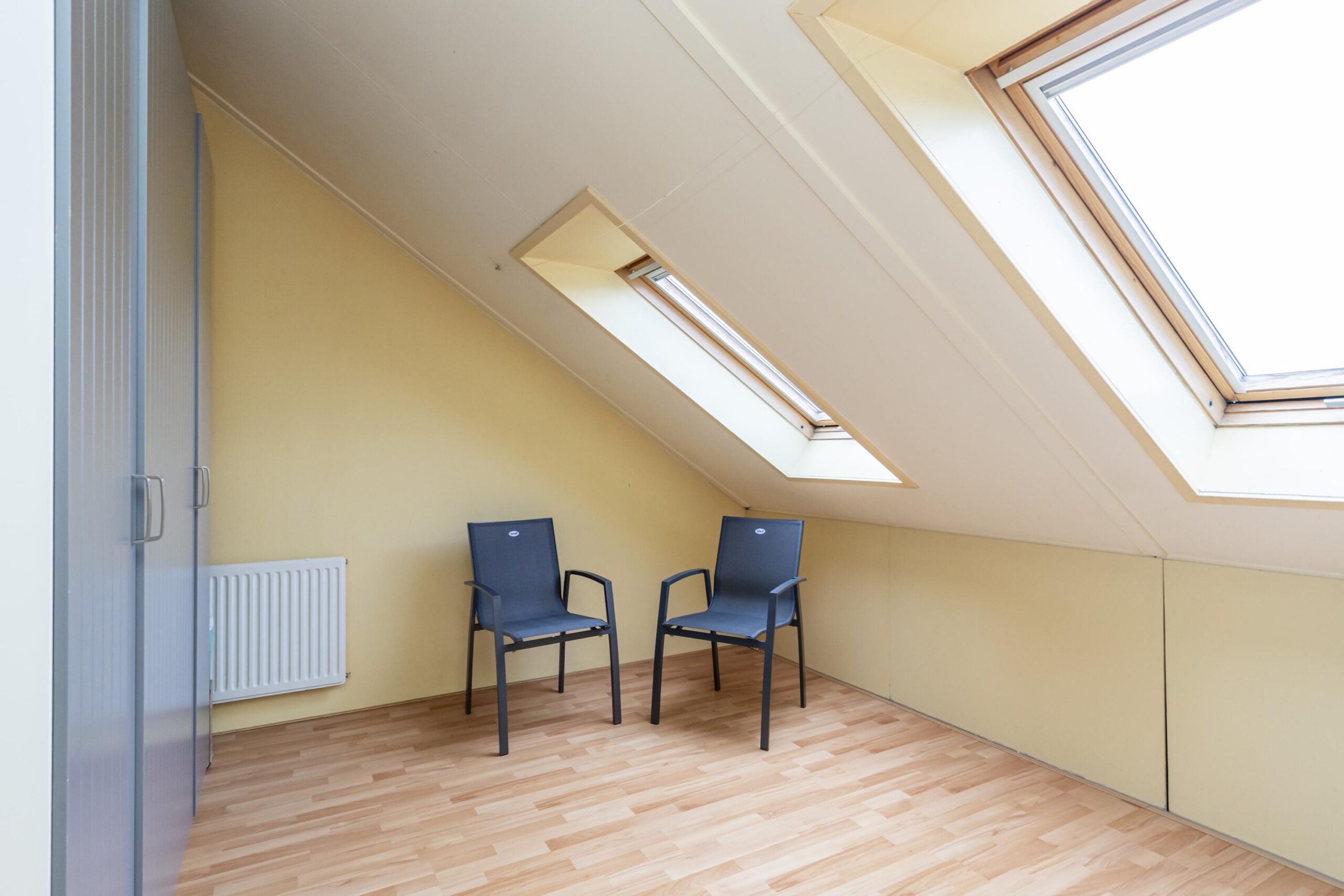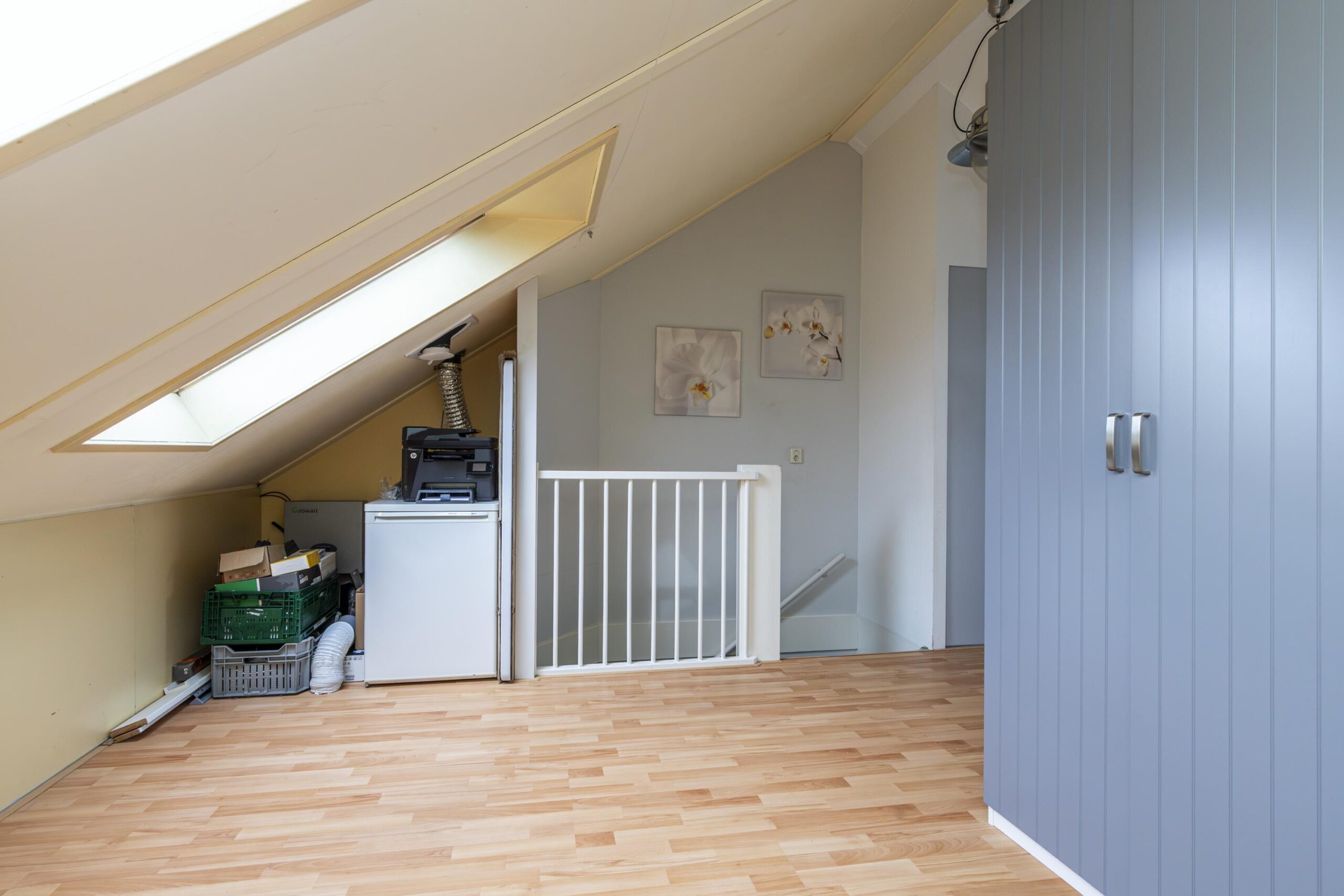 Ruime zolderetage met zeer ruime overloop met daglicht door de velux dakramen alwaar de CV ketel , de opstelplaats voor de wasmachine en droger en veel bergruimteaanwezig is. Door de dakkapel aan de achterzijde is een zeer ruime vierde slaapkamer aanwezig.