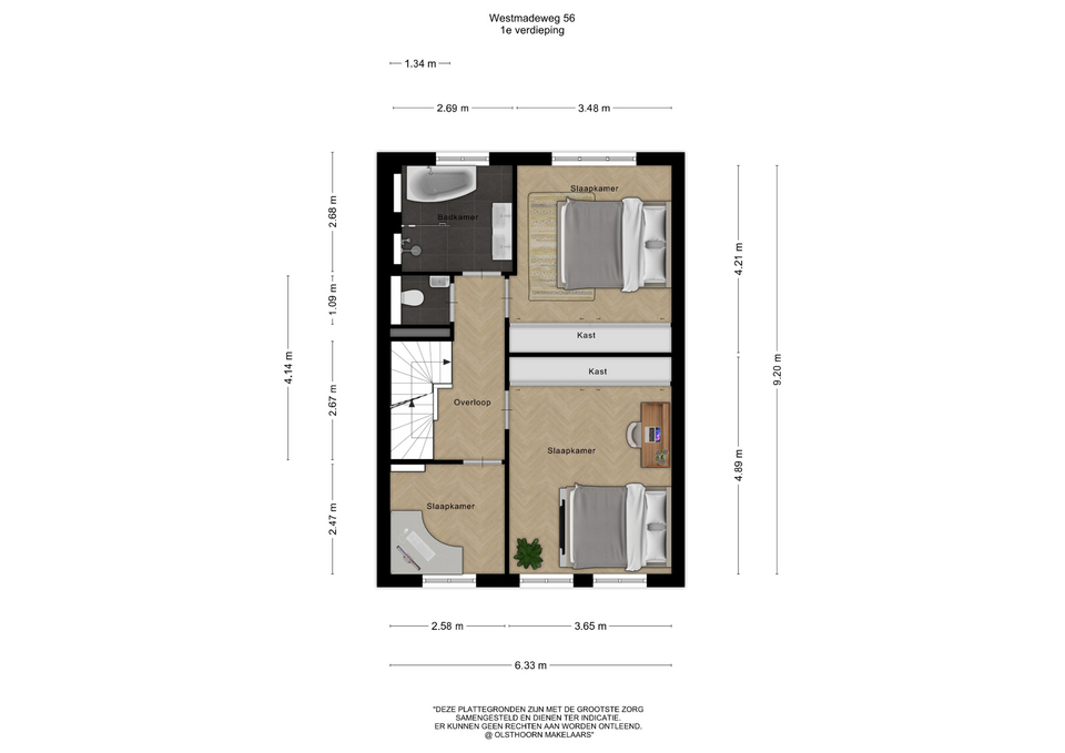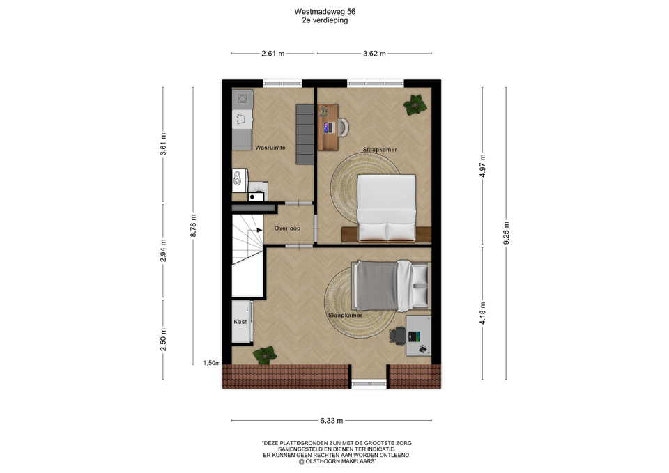 De tweede verdieping biedt nog eens twee slaapkamers en een aparte wasruimte. Deze verdieping is flexibel in te richten en ideaal voor een groter gezin, logeerkamers of het combineren van wonen en werken aan huis.
