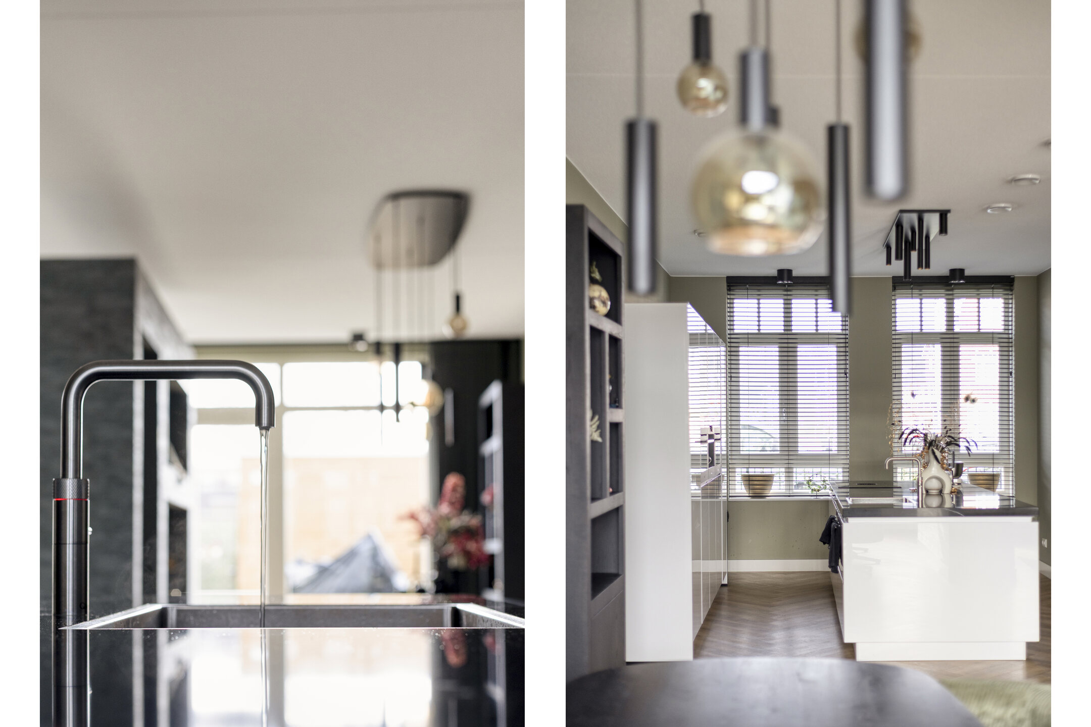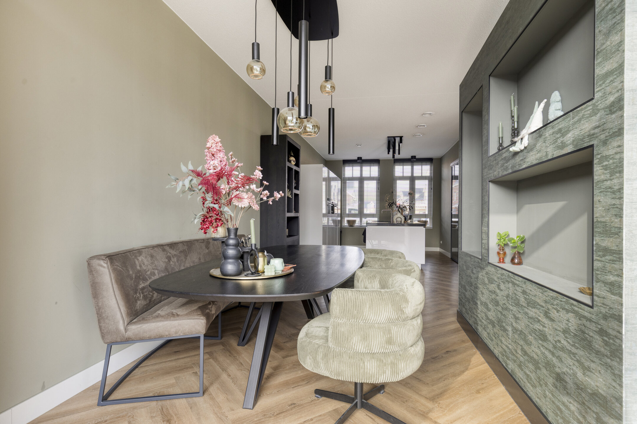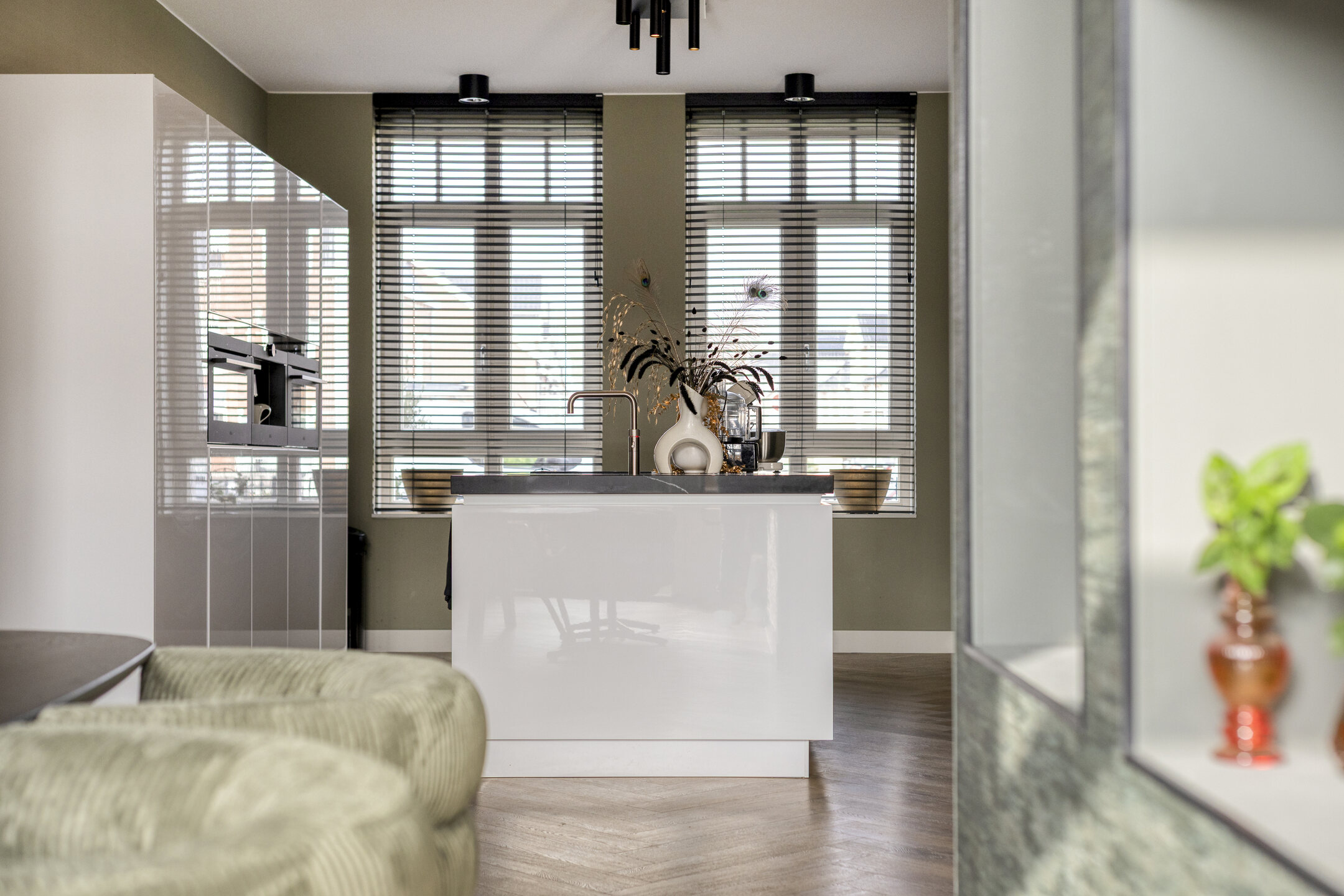 Via de voortuin bereikt u de entree van de woning. In de hal bevinden zich de meterkast, een modern toilet, een praktische kast met de warmtepomp en de trap naar de eerste verdieping. Vanuit hier loopt u door naar de keuken aan de voorzijde, die is ingericht met een kookeiland en diverse inbouwapparatuur. De Quooker maakt het geheel extra comfortabel en praktisch in gebruik.