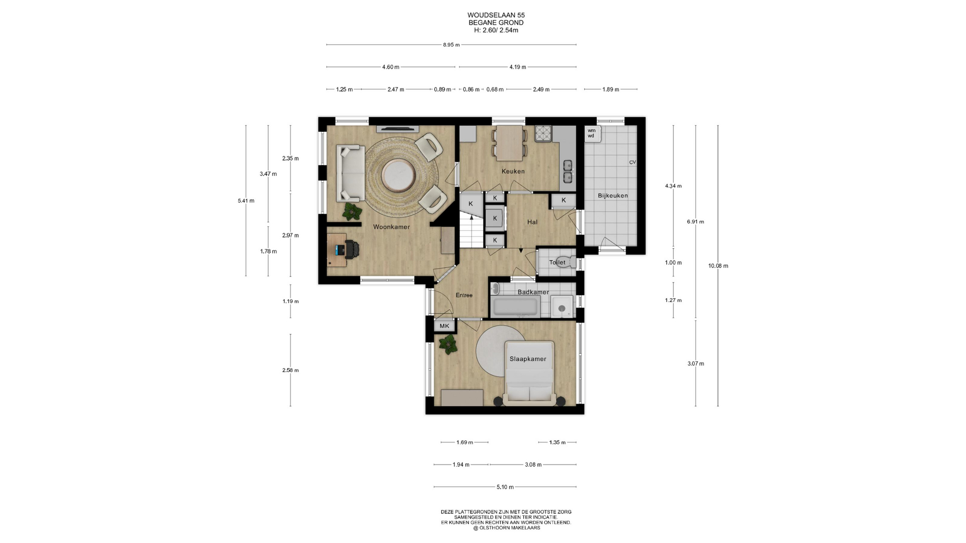 het toilet, de bijkeuken en uiteraard de trap naar boven. Op de eerste verdieping