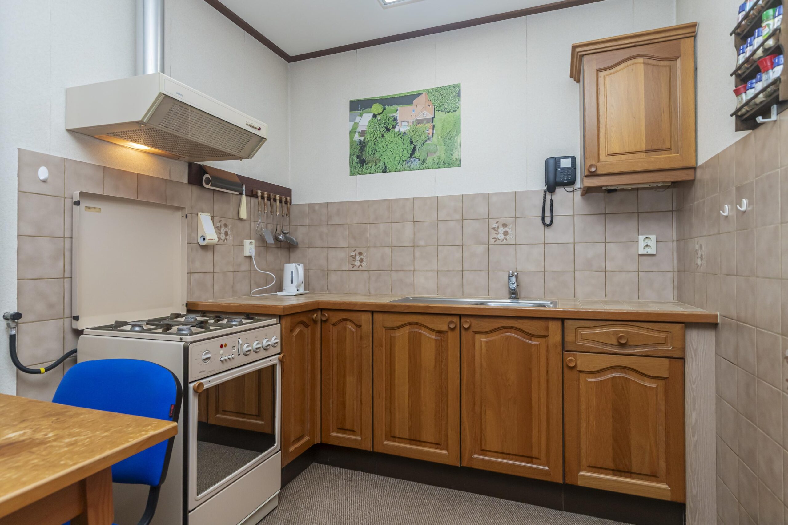 keuken. Vanuit de hal bereik je ook de slaapkamer op de begane grond, de badkamer,
