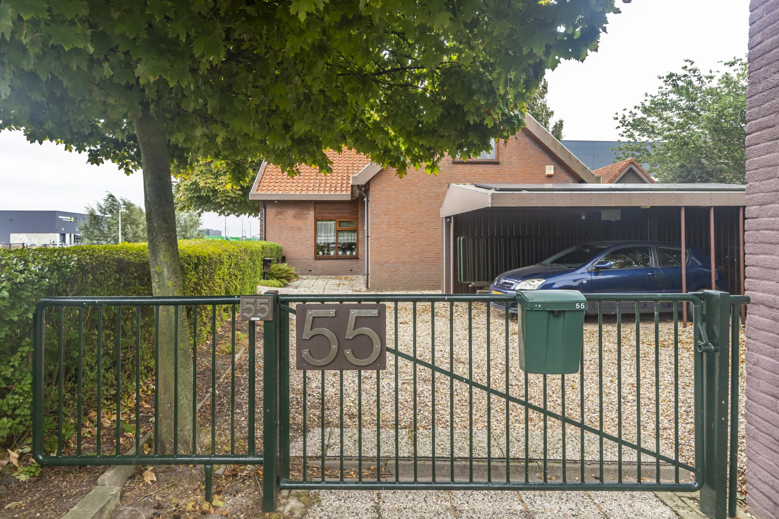 • Parkeren op eigen terrein onder de carport (grond gehuurd van