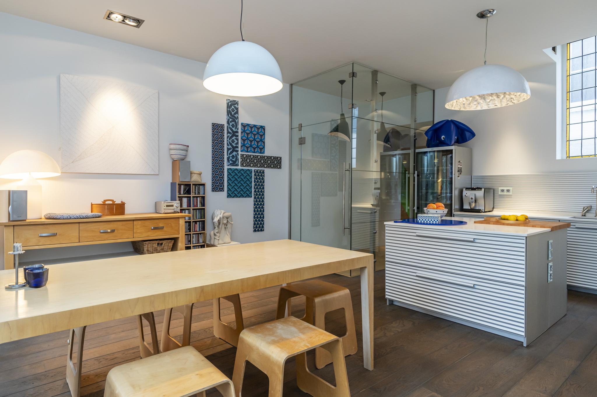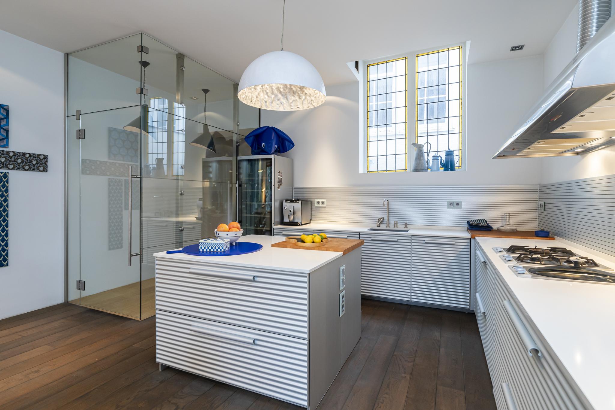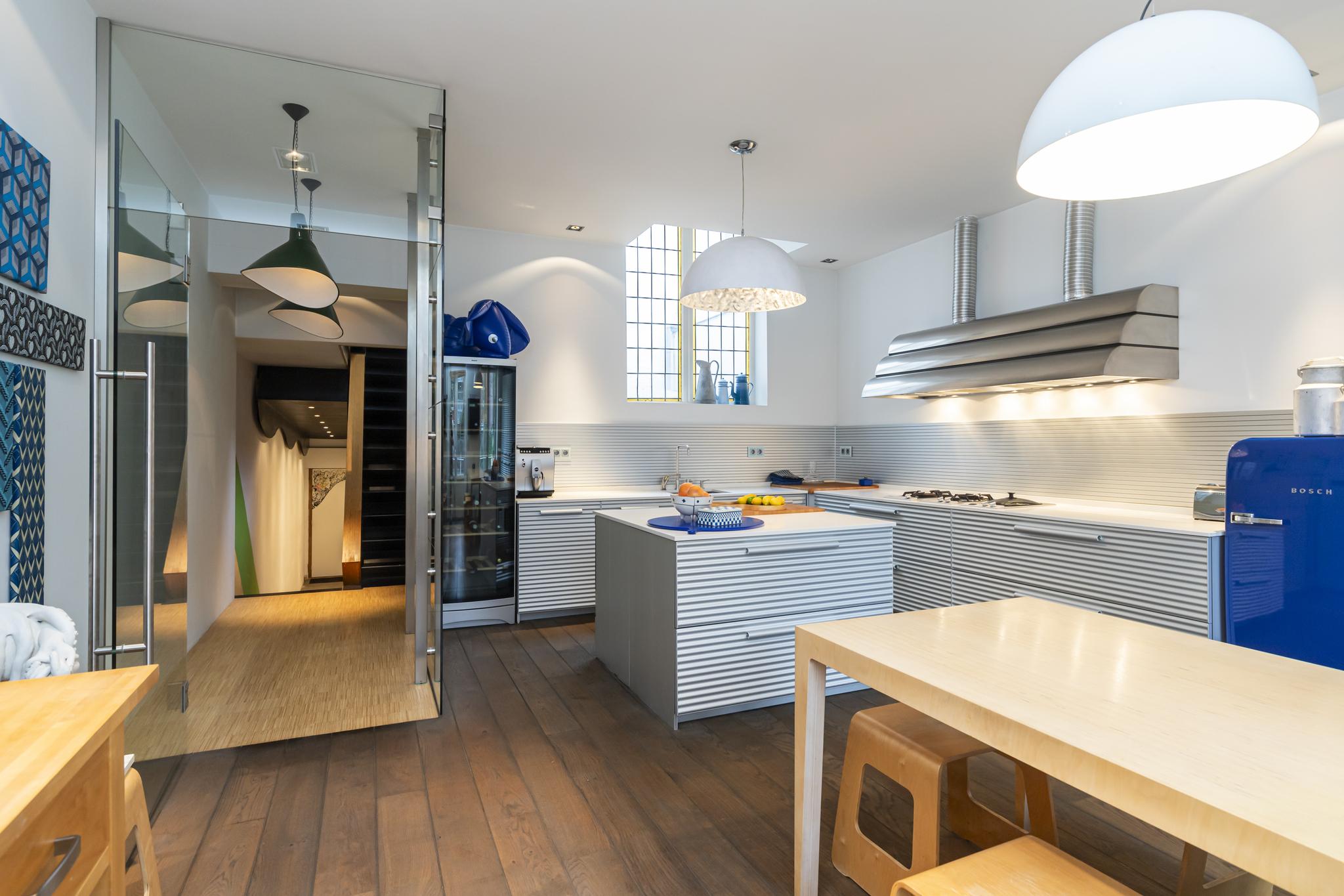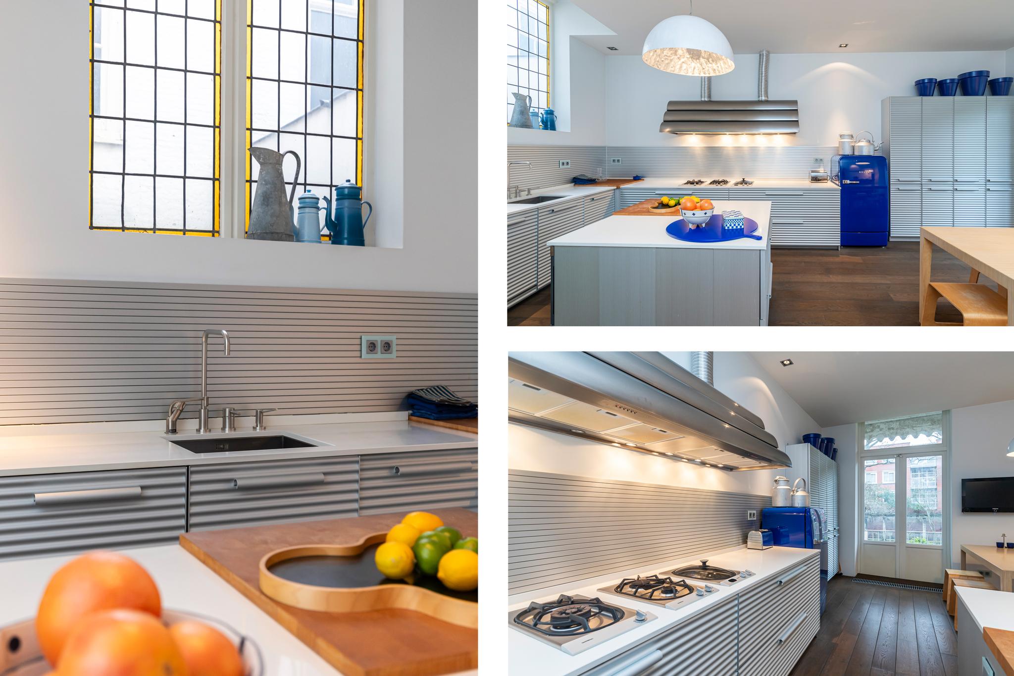 De riante woonkeuken is uitgerust met luxe inbouwapparatuur, waaronder een vaatwasser, 3 pits gasfornuis en een stoomkoker (Gaggenau Domino Element).