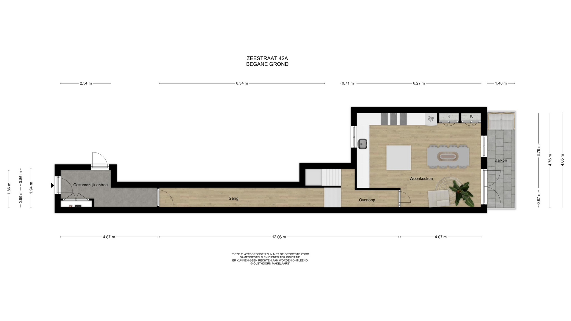 Vanaf het straatniveau is er toegang tot de voordeur waarbij u de entreehal betreedt. Deze entree hal geeft toegang naar 2 panden, waaronder de voordeur van nummer 42A.