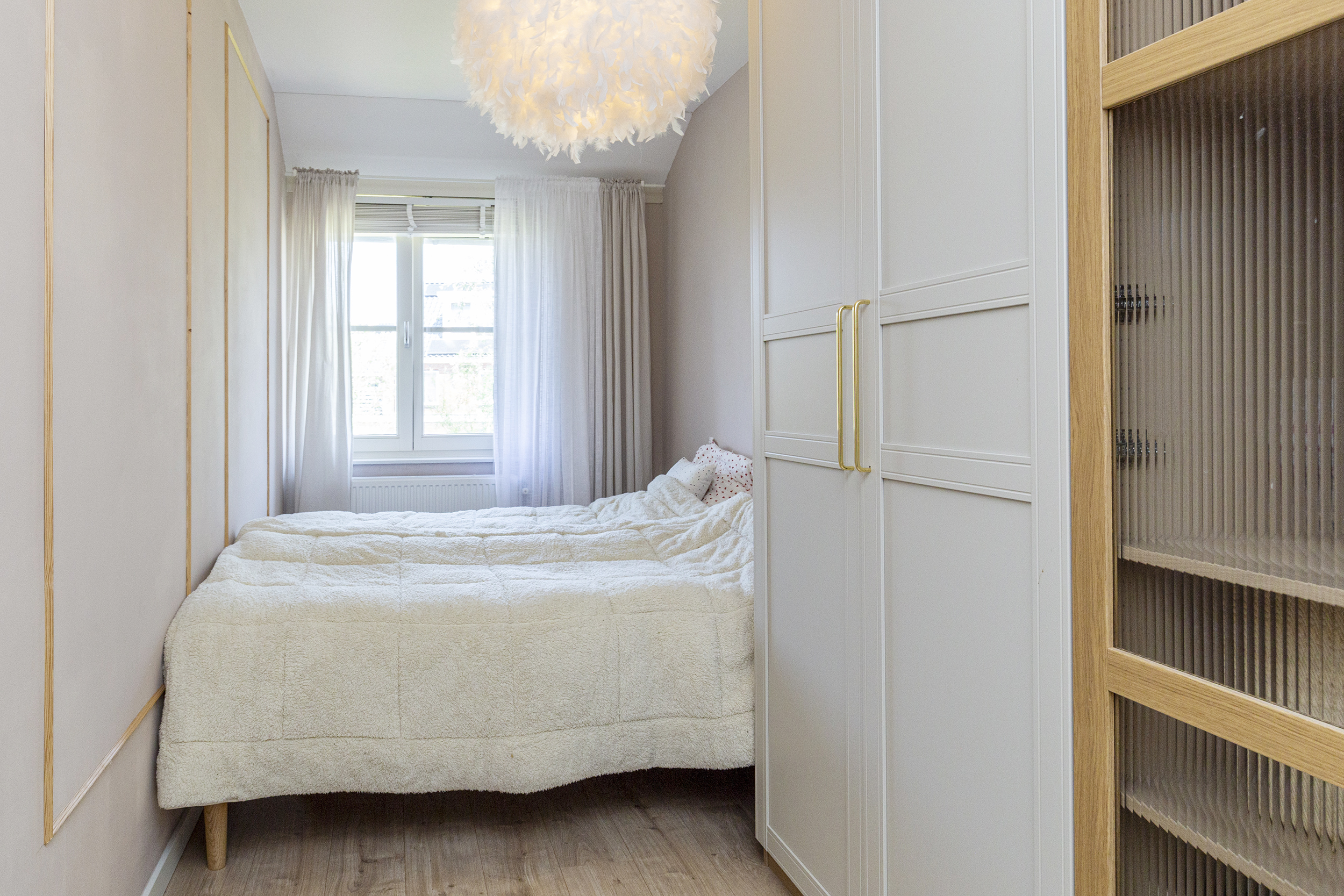 Via de overloop vindt u drie goed formaat slaapkamers en de badkamer. De badkamer is stijlvol afgewerkt en voorzien van een wastafelmeubel, een inloopdouche en een toilet. De slaapkamers bieden voldoende ruimte voor zowel een kinderkamer als een werkkamer of hobbyruimte.