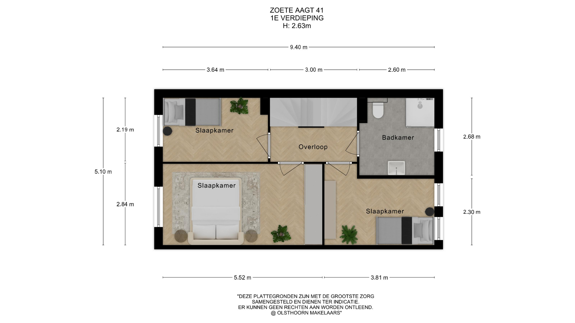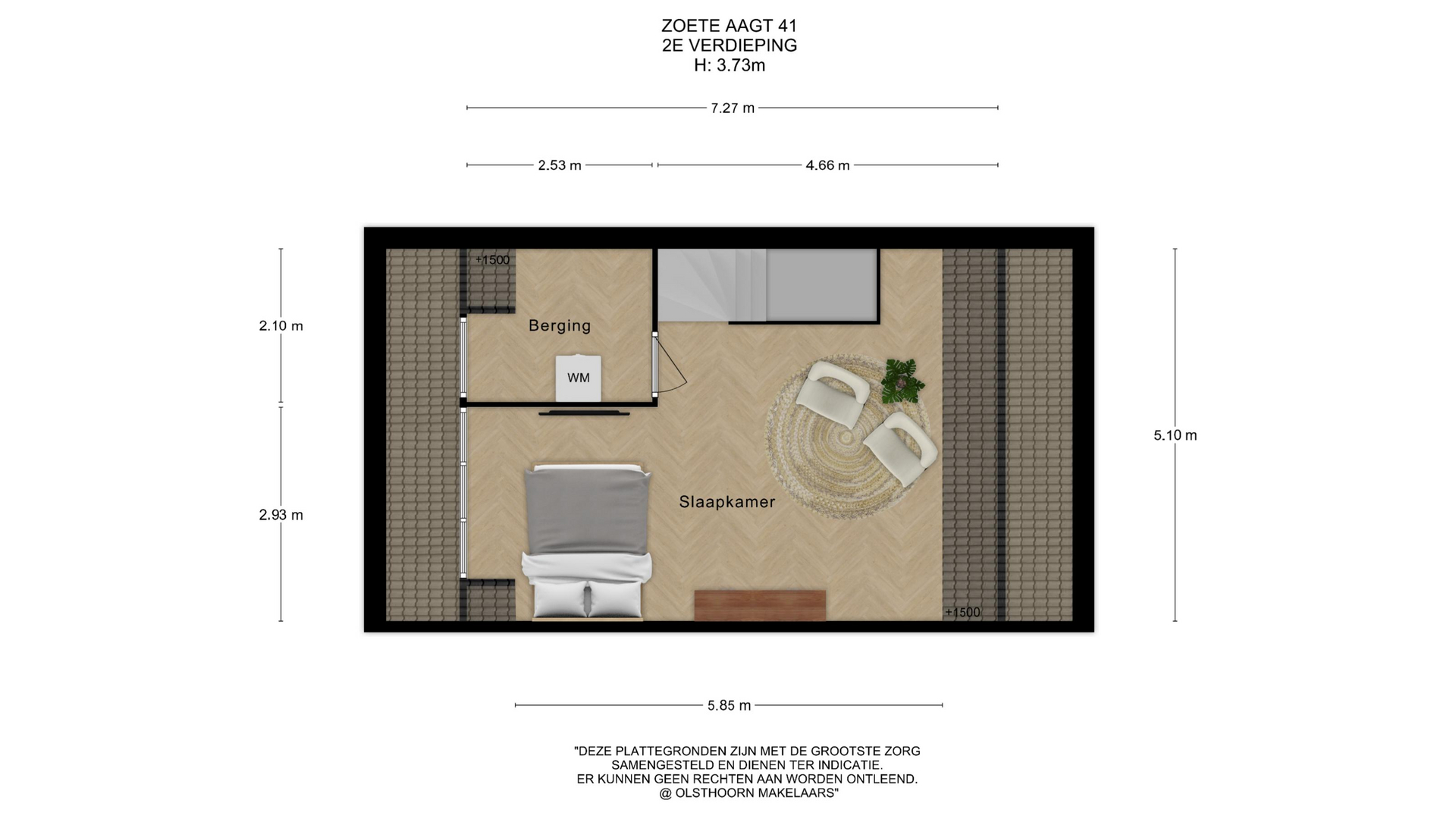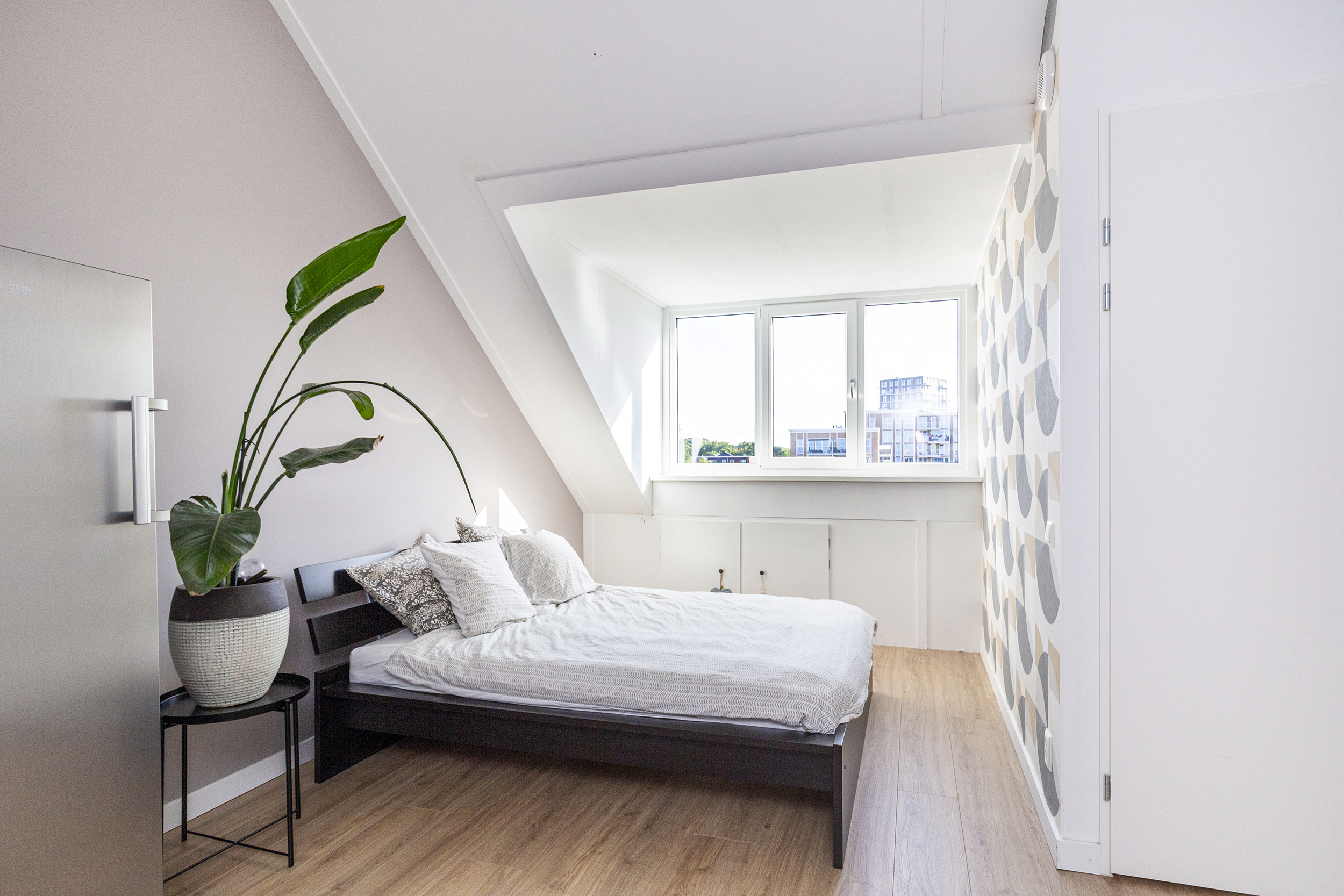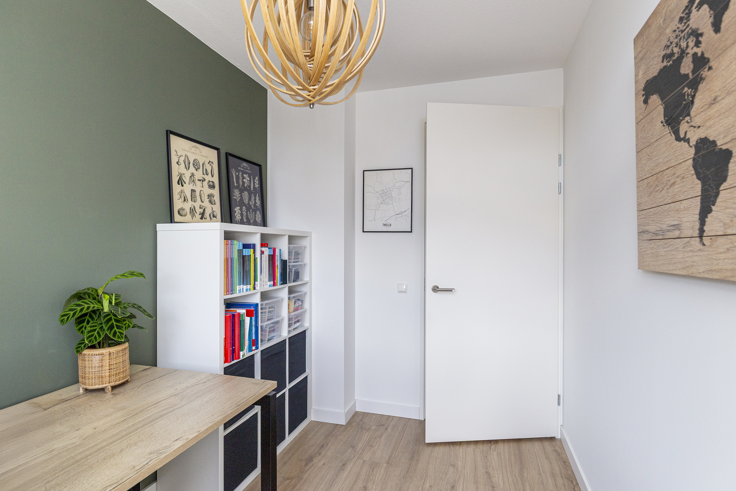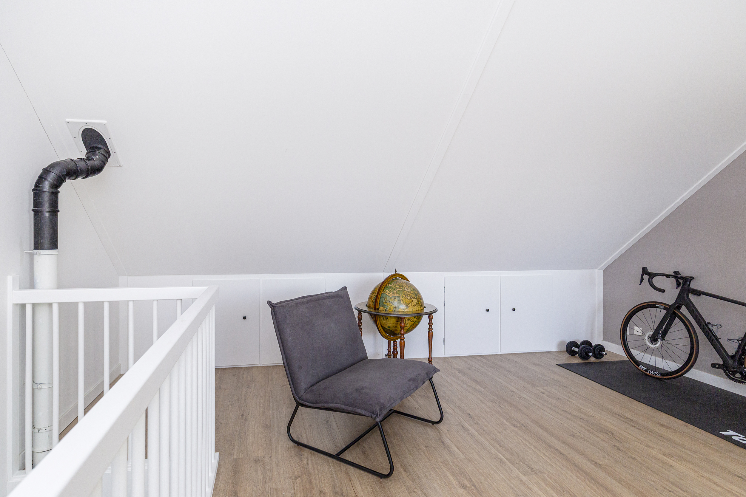 De ruime lichte zolder met dakkapel aan de achterzijde biedt volop mogelijkheden, bijvoorbeeld als werkkamer, hobbyruimte of extra slaapkamer. Tevens is het mogelijk om deze ruimte op te splitsen in twee slaapkamers. Op deze verdieping vind je ook de afgesloten technische ruimte, met de opstelplaats voor de wasmachine, droger, vloerverwarmingsverdeler en de WTW-balansventilatie die zorgt voor een gezond binnenklimaat. Bovendien is er veel bergruimte achter de knieschotten aan beide zijde van de zolder, ideaal voor het opbergen van seizoensgebonden spullen en andere voorwerpen.