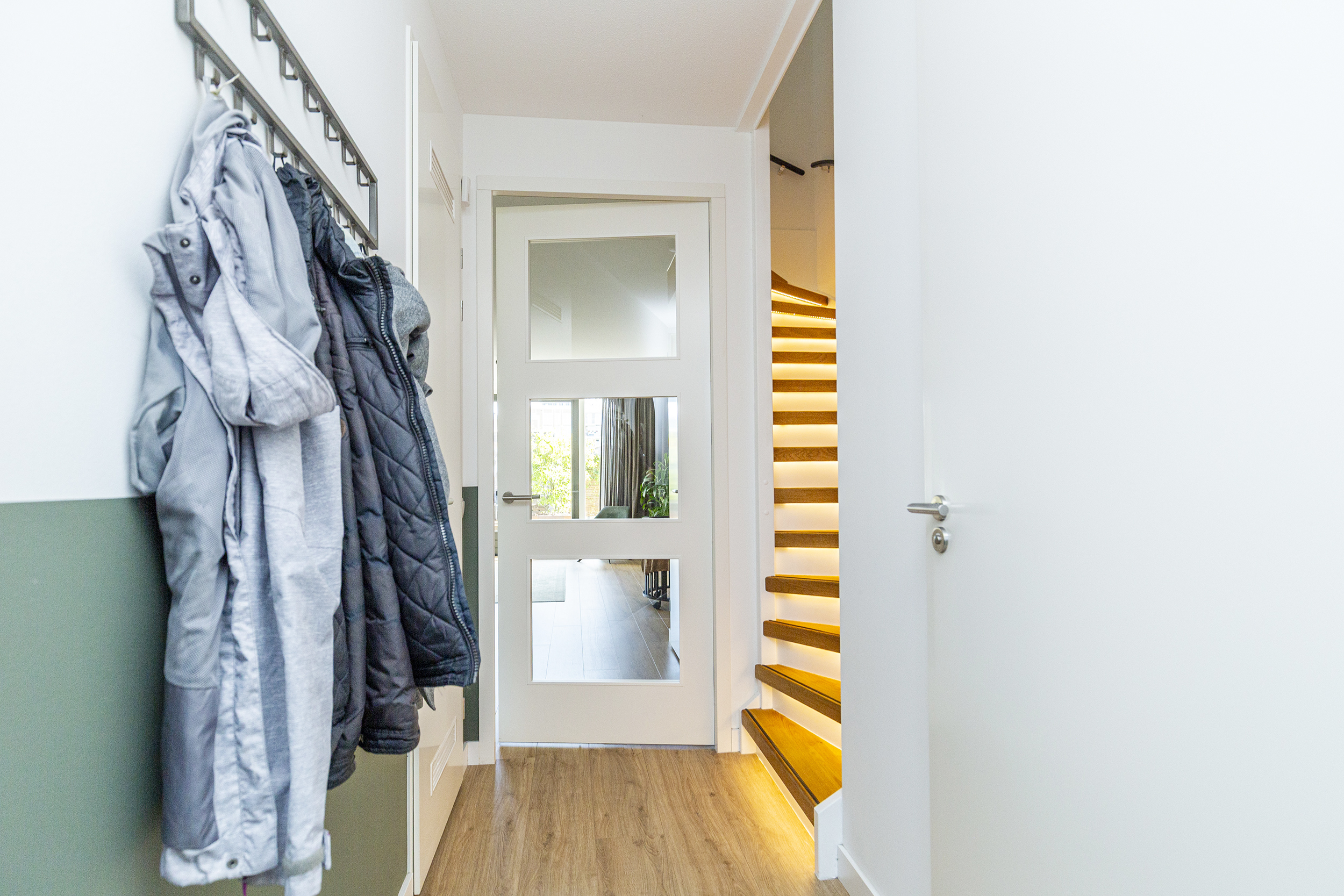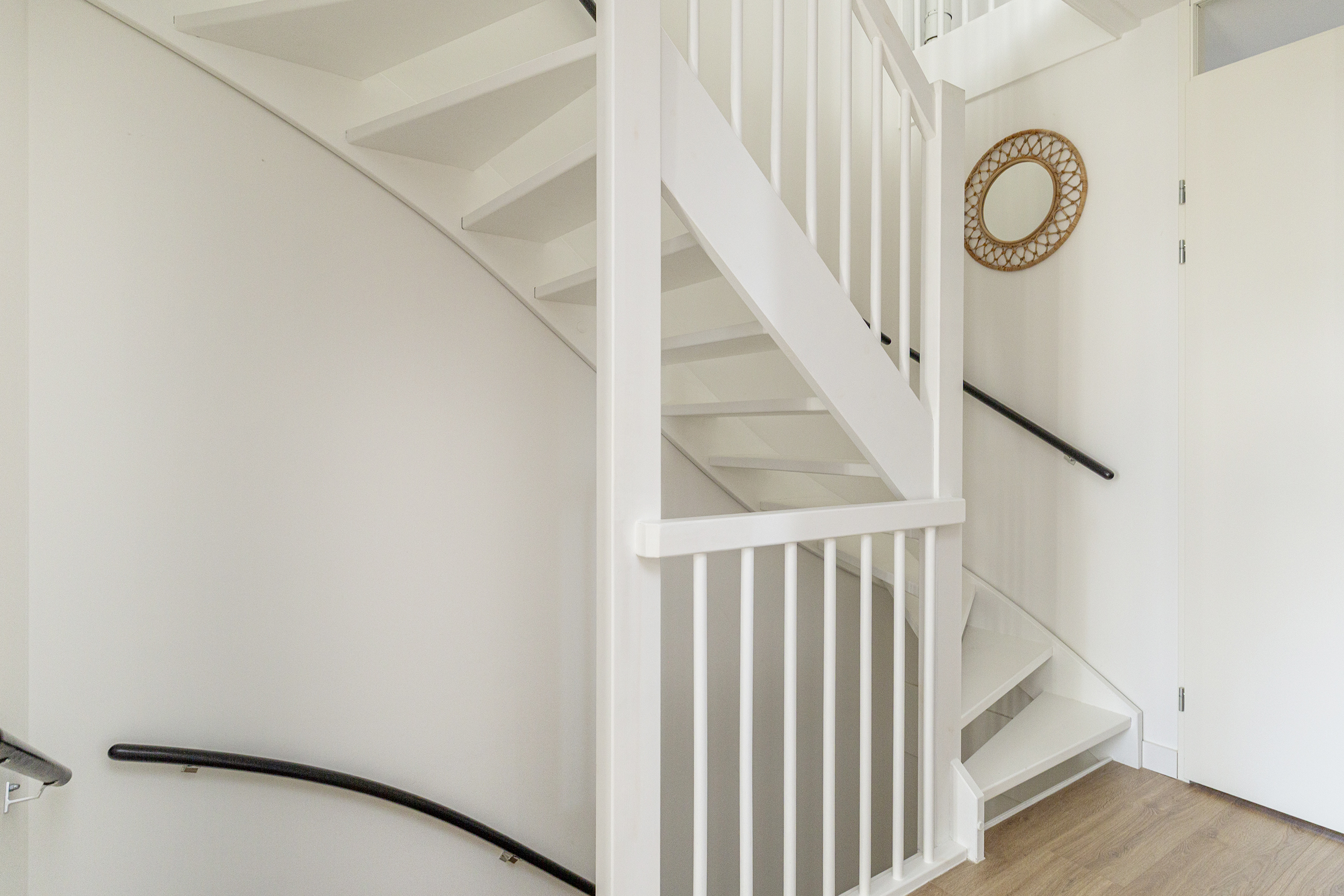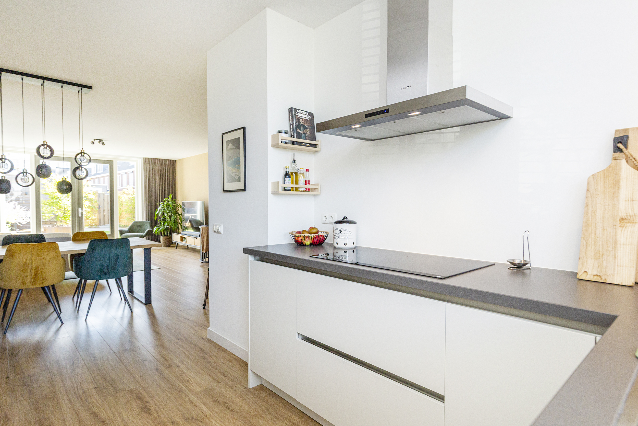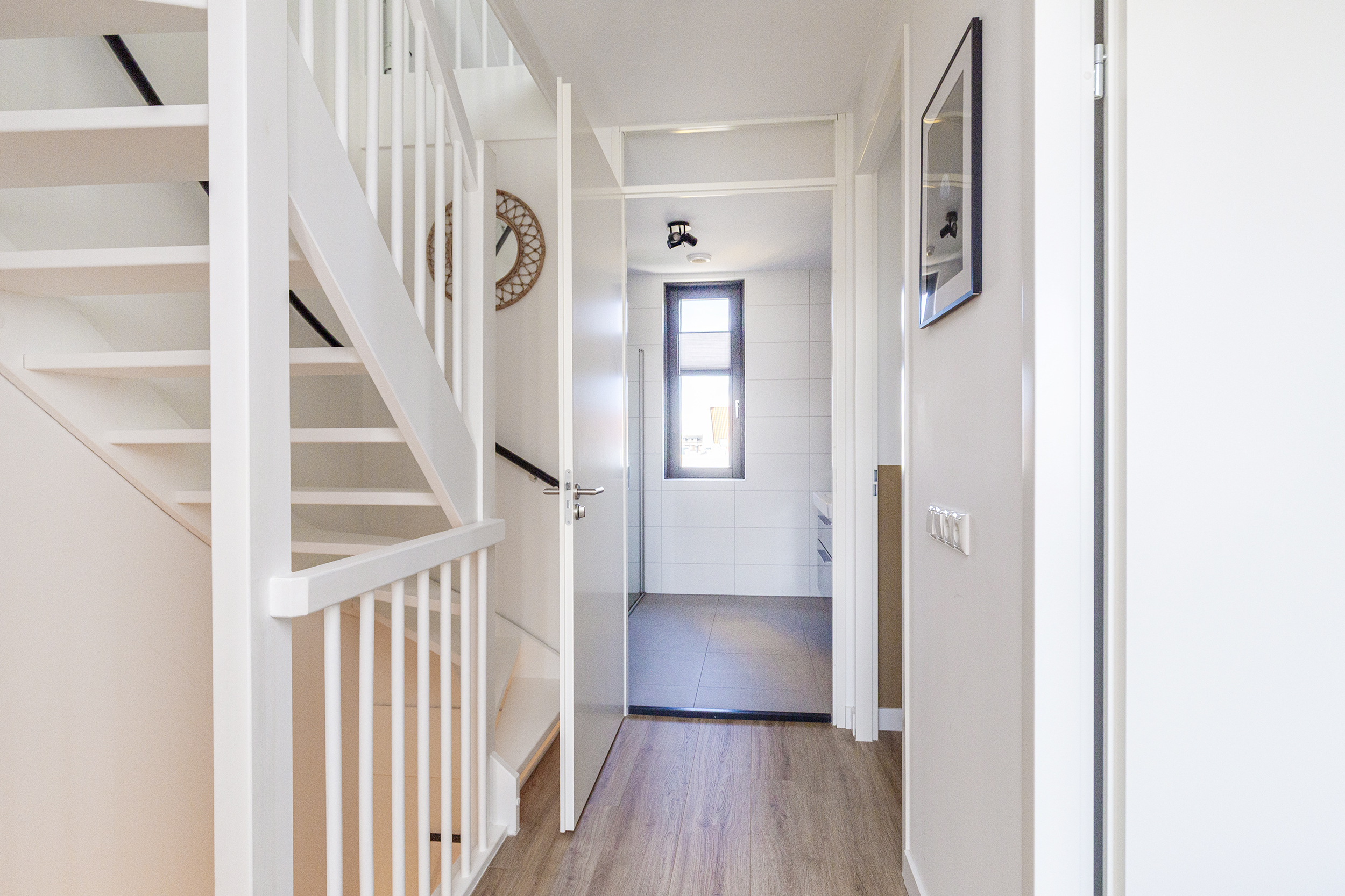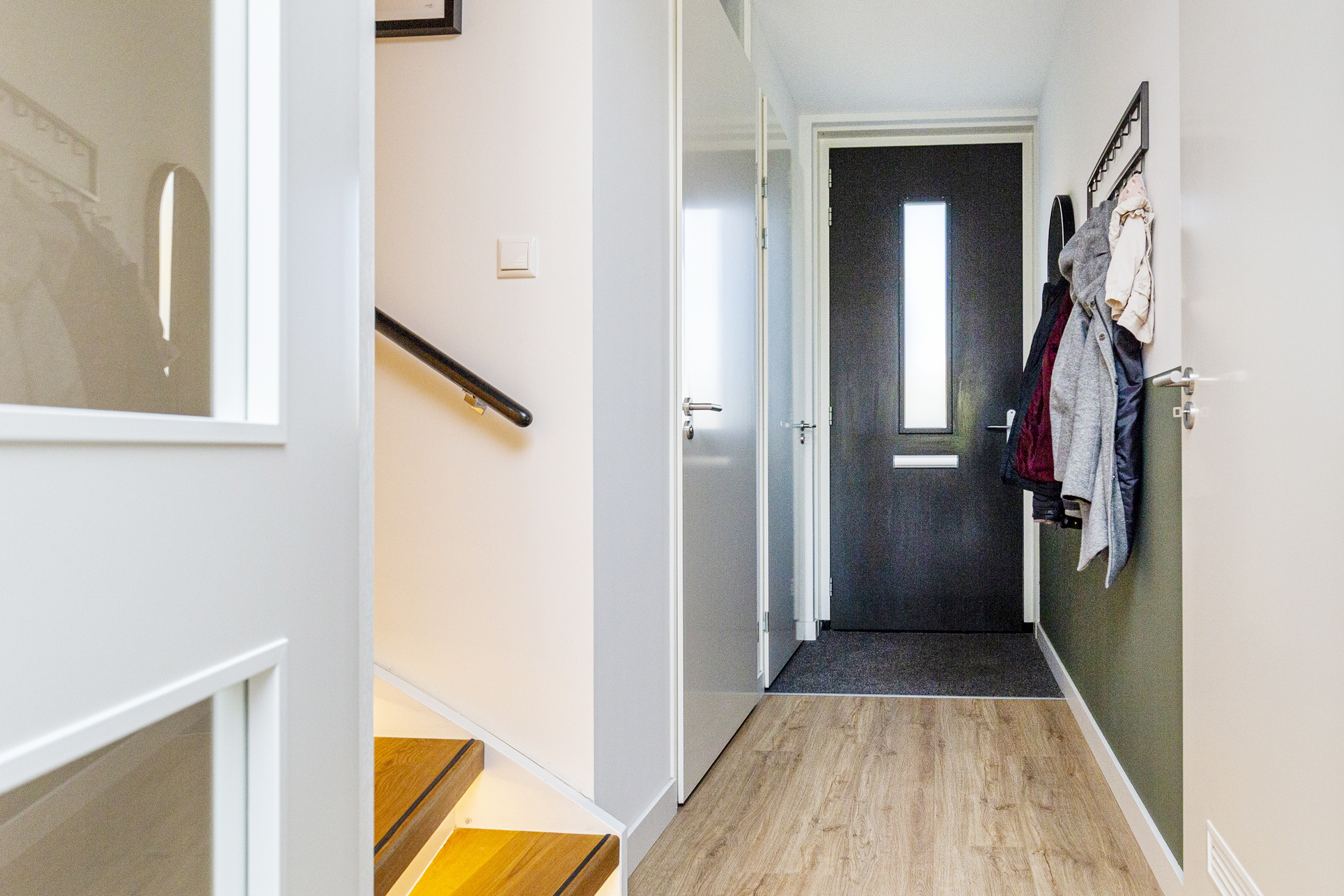 Via de voortuin bereik je de entree van de woning. In de hal bevinden zich een modern toilet met fonteintje, meterkast en een vaste kast voor extra opbergruimte. De ruime woonkamer heeft een praktische trapkast en openslaande deuren naar de achtertuin. De tuin beschikt over een vrijstaande houten schuur met groendak. De schuur is voorzien van elektra en er is een handige achterom welke direct bij de parkeerplaats uit komt. De open keuken aan de voorzijde is van alle gemakken voorzien, waaronder een Quooker, vaatwasser, inductie kookplaat, afzuigkap, stoomoven, combi-magnetron/oven, koelkast en vriezer. Bovendien heeft deze woning twee eigen gunstig gelegen parkeerplaatsen (met de mogelijkheid om een eigen elektrische laadpaal aan te sluiten).