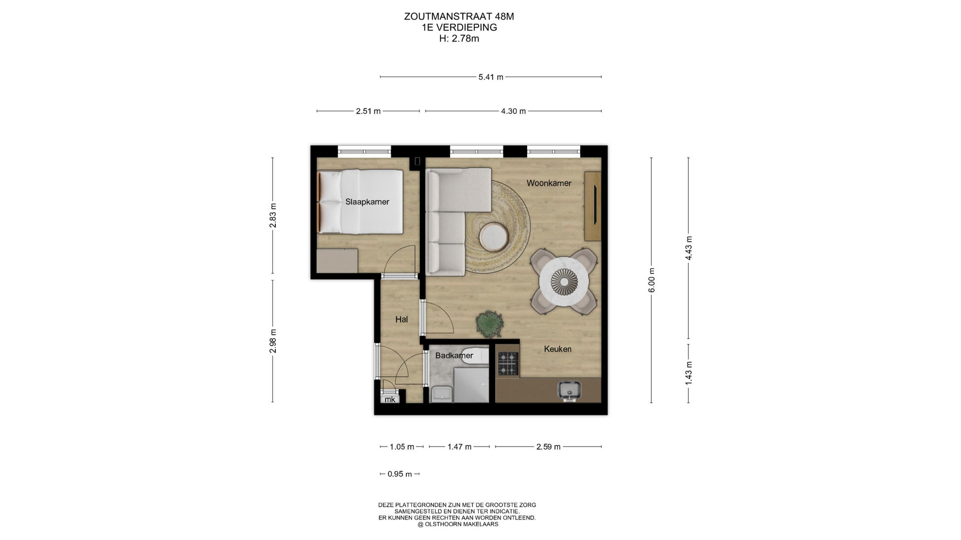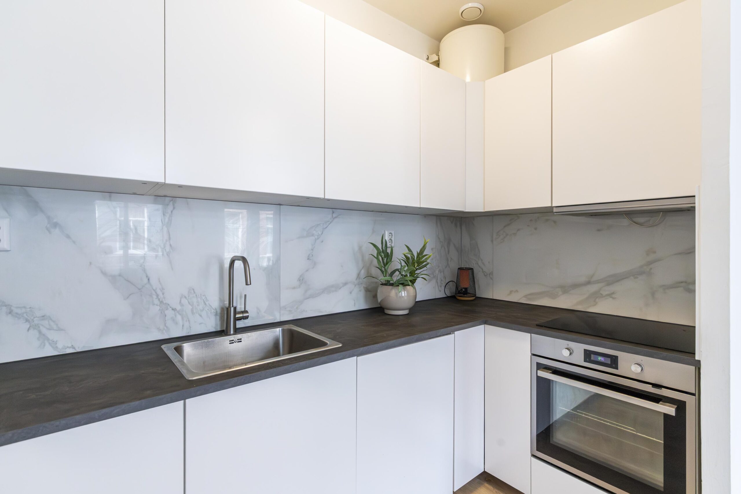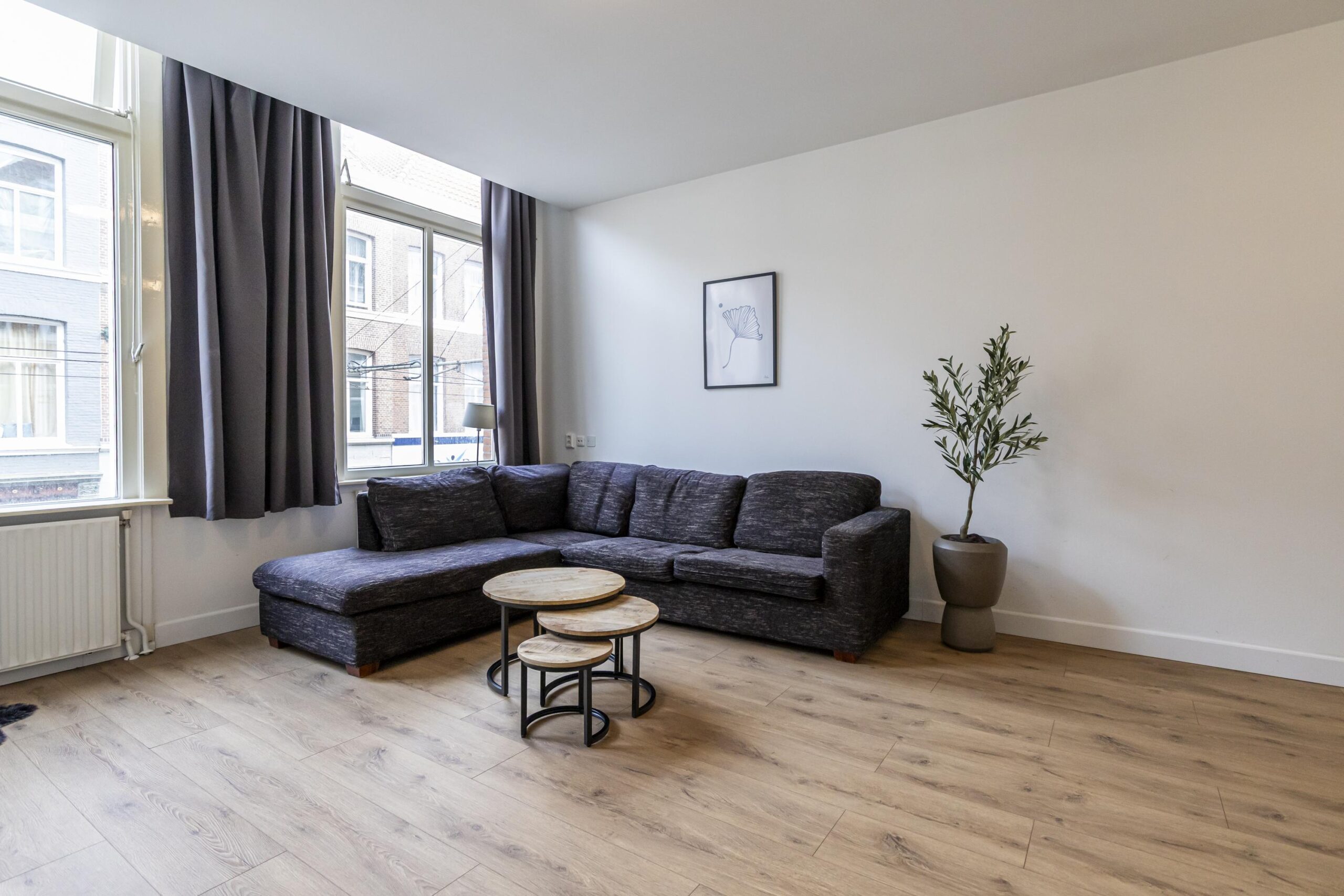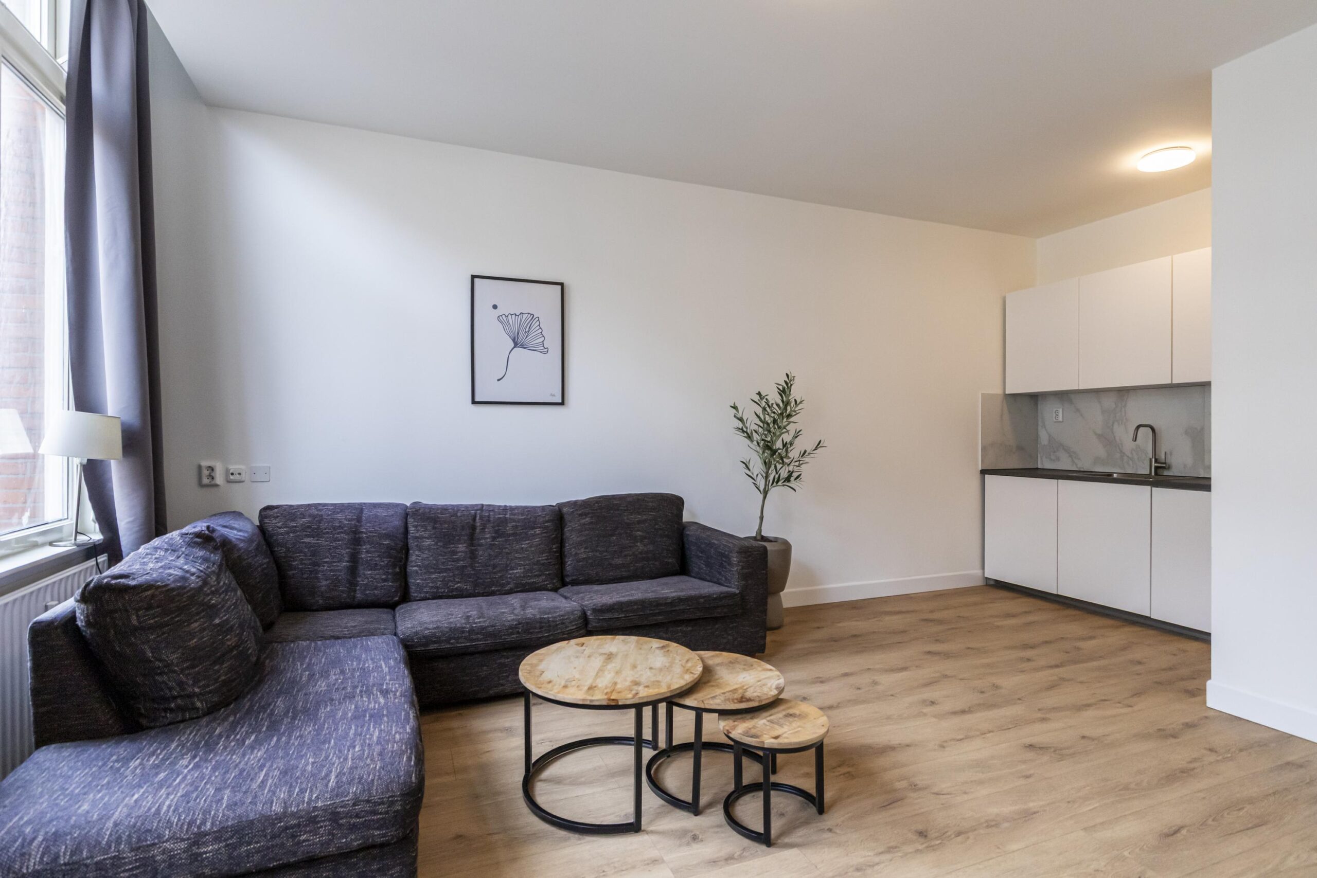 De woonkamer is verrassend ruim en voelt direct prettig aan. Dankzij de ligging aan de voorzijde en de ramen aan deze kant is er veel lichtinval. De ruimte heeft een sfeervol karakter en biedt genoeg plek voor een comfortabele zithoek én een eettafel. De open keuken sluit mooi aan op de woonkamer en is praktisch ingericht. De keuken is voorzien van een inductiekookplaat, afzuigkap, oven, koelkast en een boiler. De badkamer is netjes en bereikbaar vanuit de hal. Deze is voorzien van een inloopdouche, wastafelmeubel en toilet. Alles compact, fris en logisch ingedeeld. De slaapkamer ligt aan de voorzijde van het appartement. Een fijne ruimte voor een tweepersoonsbed en een kast, en door de indeling is het een rustige plek om je terug te trekken na een drukke dag.