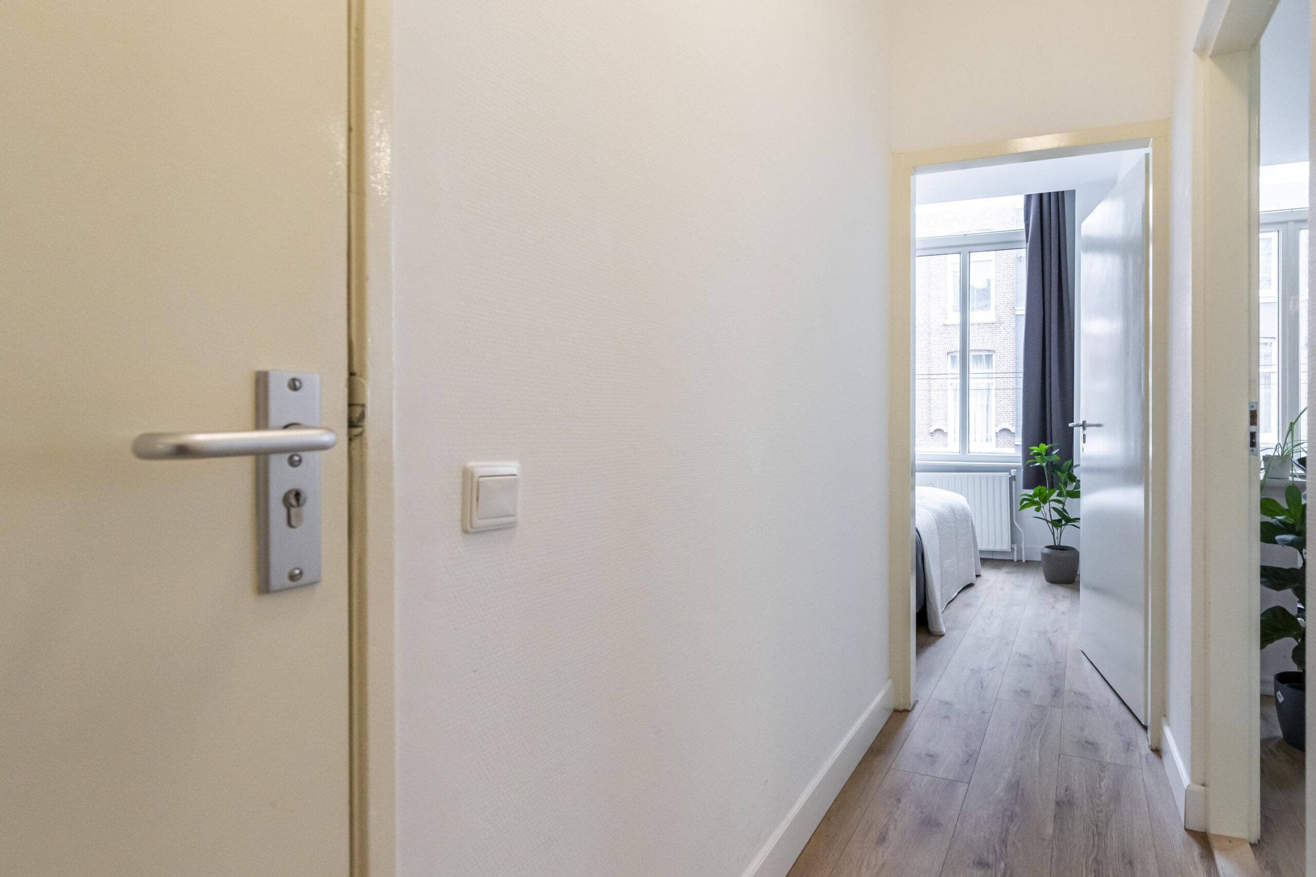 Via de trap of lift bereik je de entree van de woning. Je stapt binnen in de hal, waar ook de meterkast zich bevindt. Vanuit de hal heb je toegang tot verschillende vertrekken van de woning.